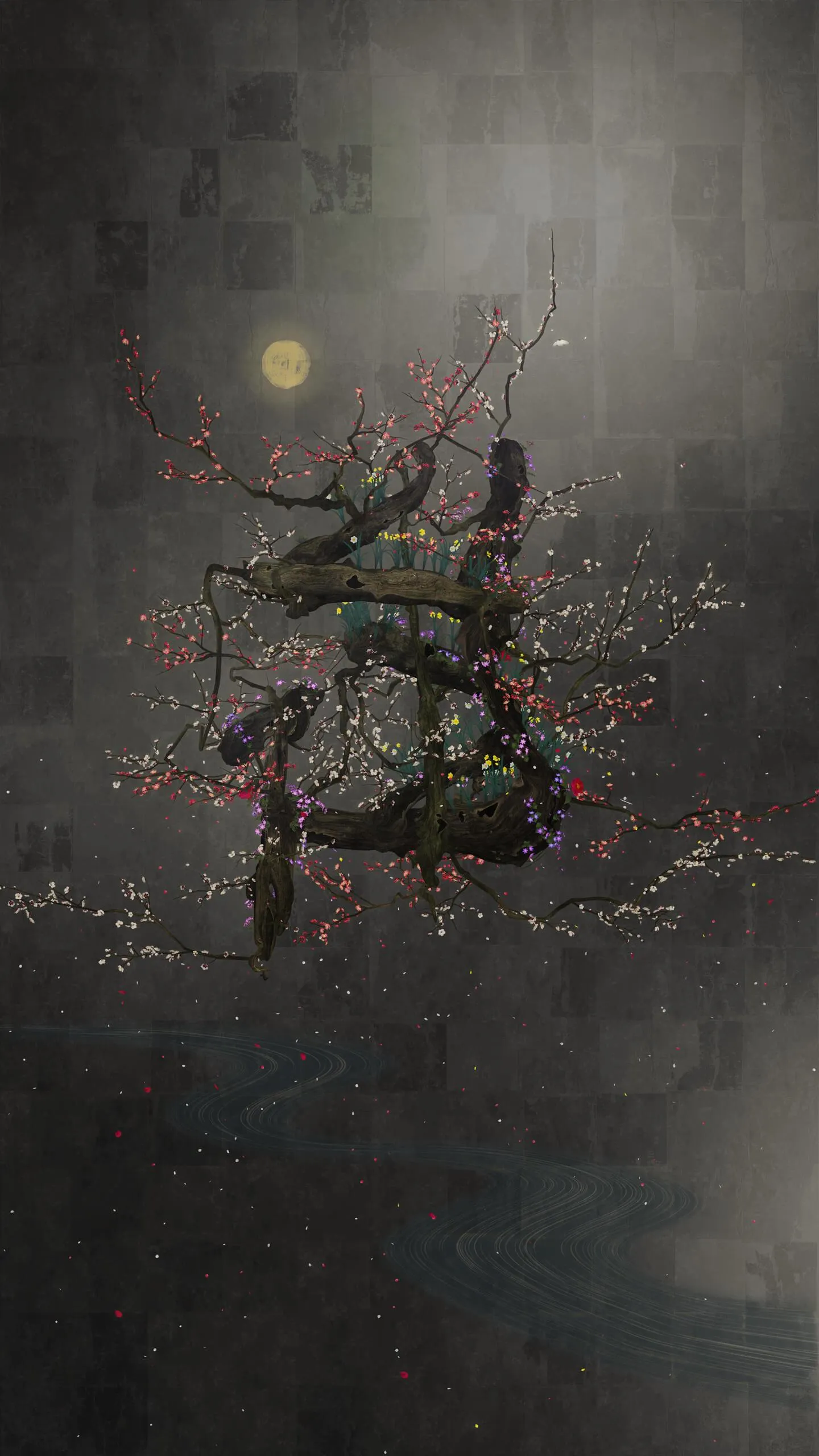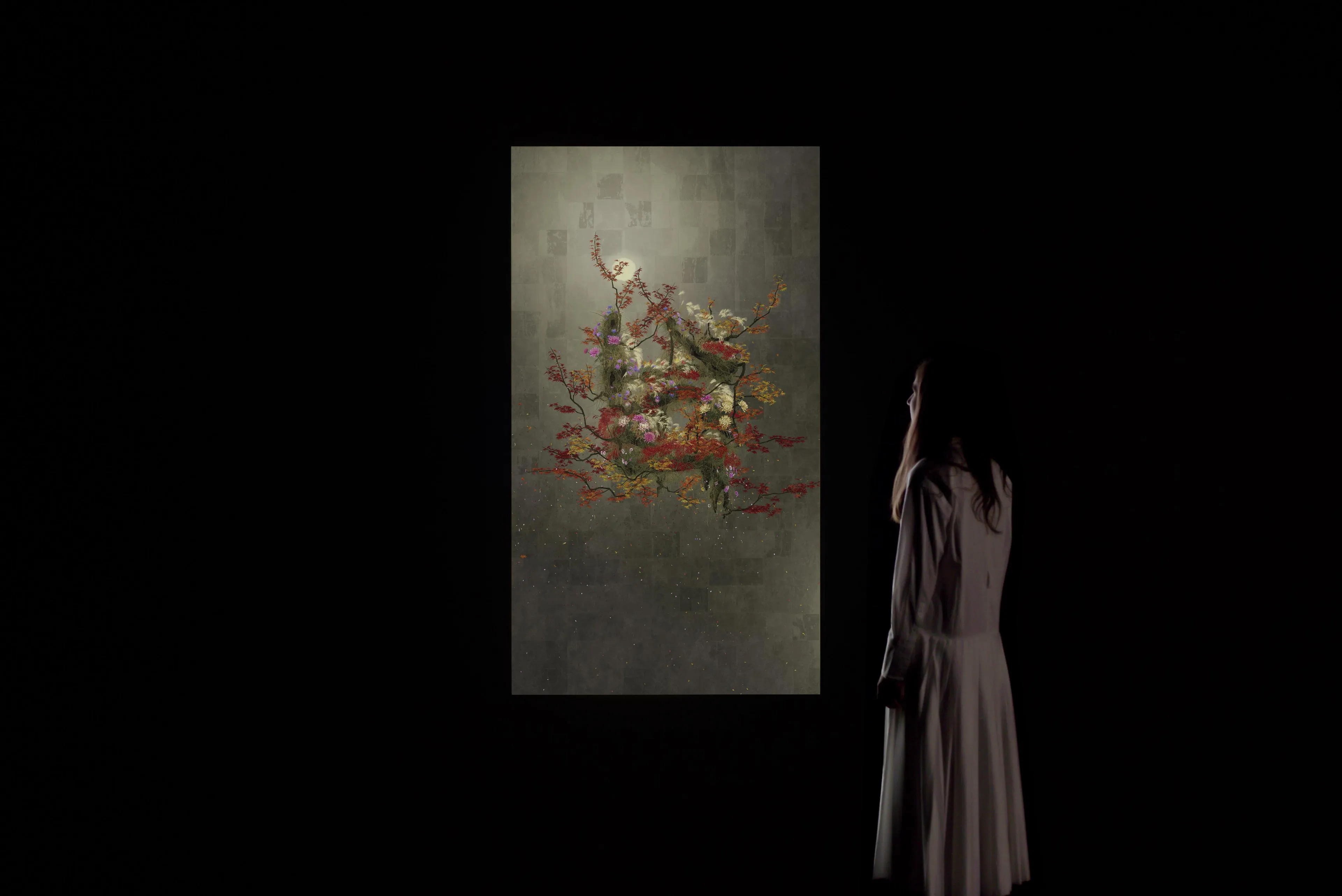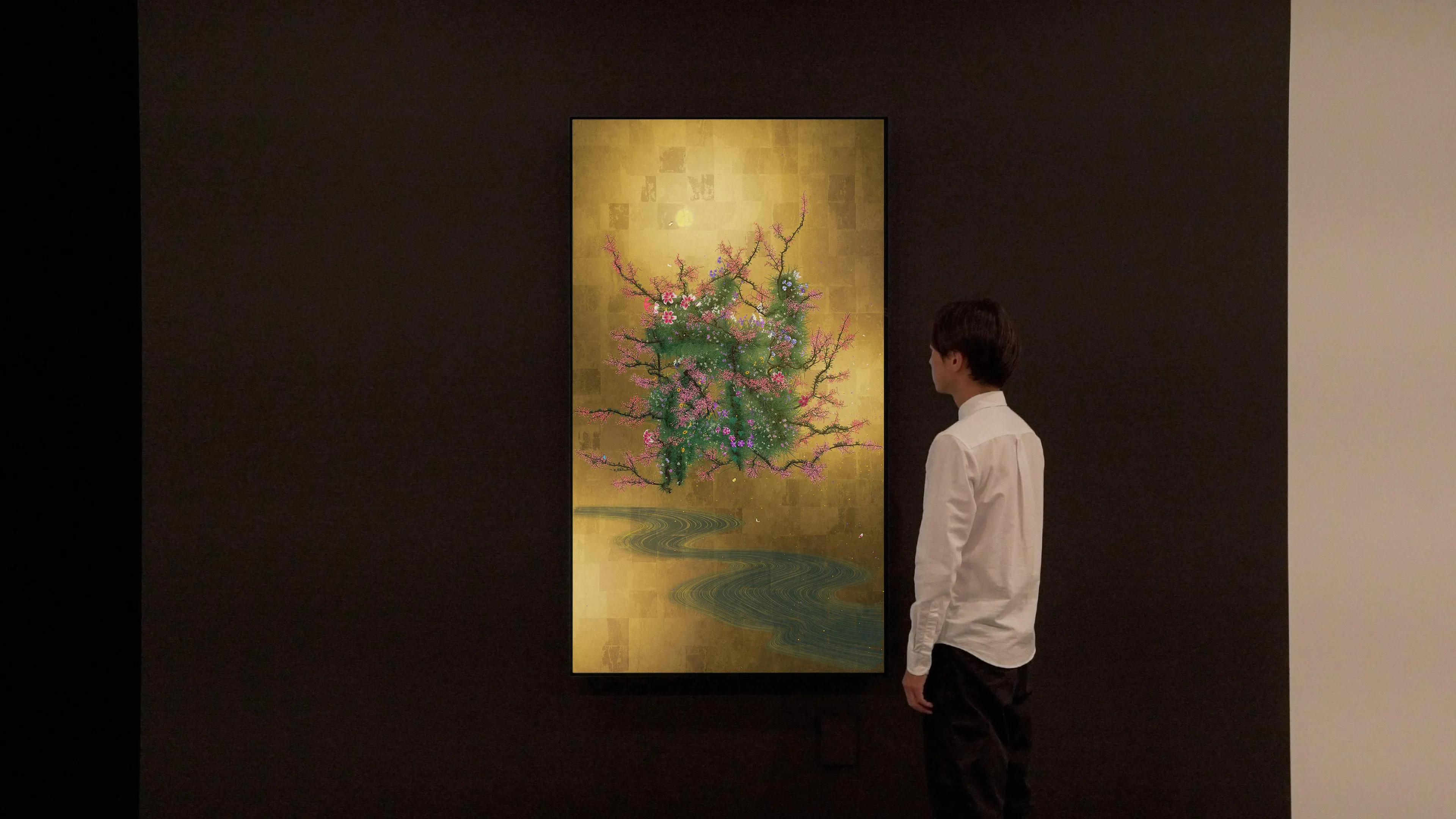 في هذا العمل الفني، تمت كتابة (生 "سيه")، المقطع الذي يدل على الحياة، بشكل ثلاثي الأبعاد باستخدام الخط في الفضاء. والخط في الفضاء هو شكل من أشكال الخط المرسوم في الفضاء والذي كان تيم لاب يستكشفه منذ تأسيسه. يعيد العمل الفني بناء الخط في فضاء ثلاثي الأبعاد للتعبير عن عمق وسرعة وقوة ضربة الفرشاة، ثم يتم تسطيح هذا الخط باستخدام البنية المنطقية التي يطلق عليها تيم لاب الفضاء فوق الذاتي. وينتقل الخط بين بعدين وثلاثة أبعاد.