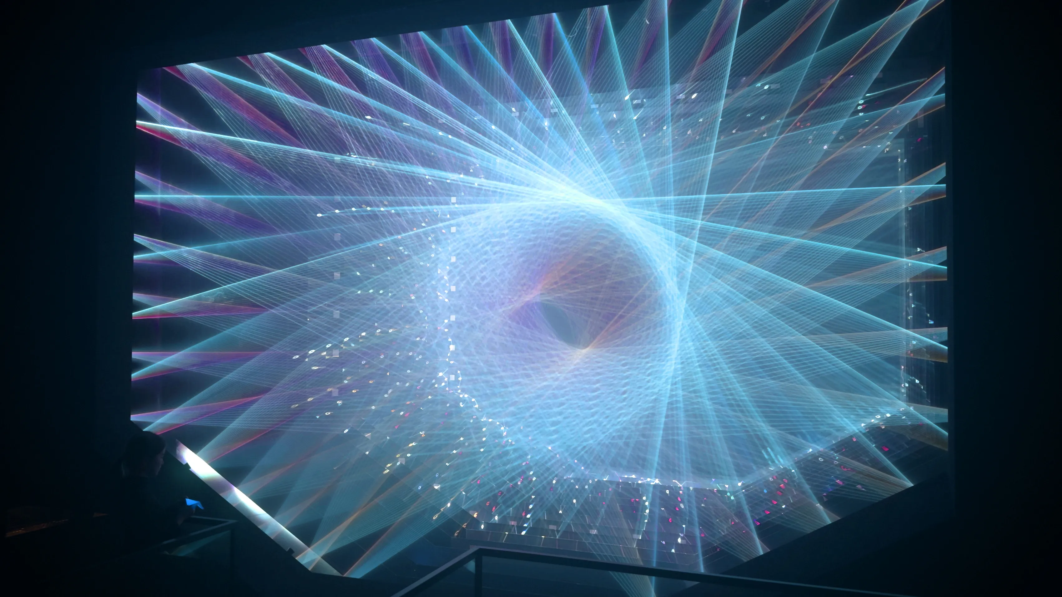 A sculpture composed of an order formed by a collection of light that flows continuously from the outside to the inside and from the inside to the outside.