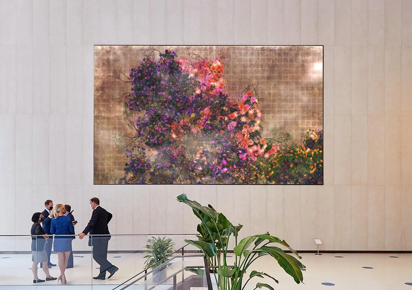The flowers that bloom change daily along with the real-time seasons of New York. As the sun rises in New York, the world of the artwork becomes brighter, and as the sun sets, it becomes darker.