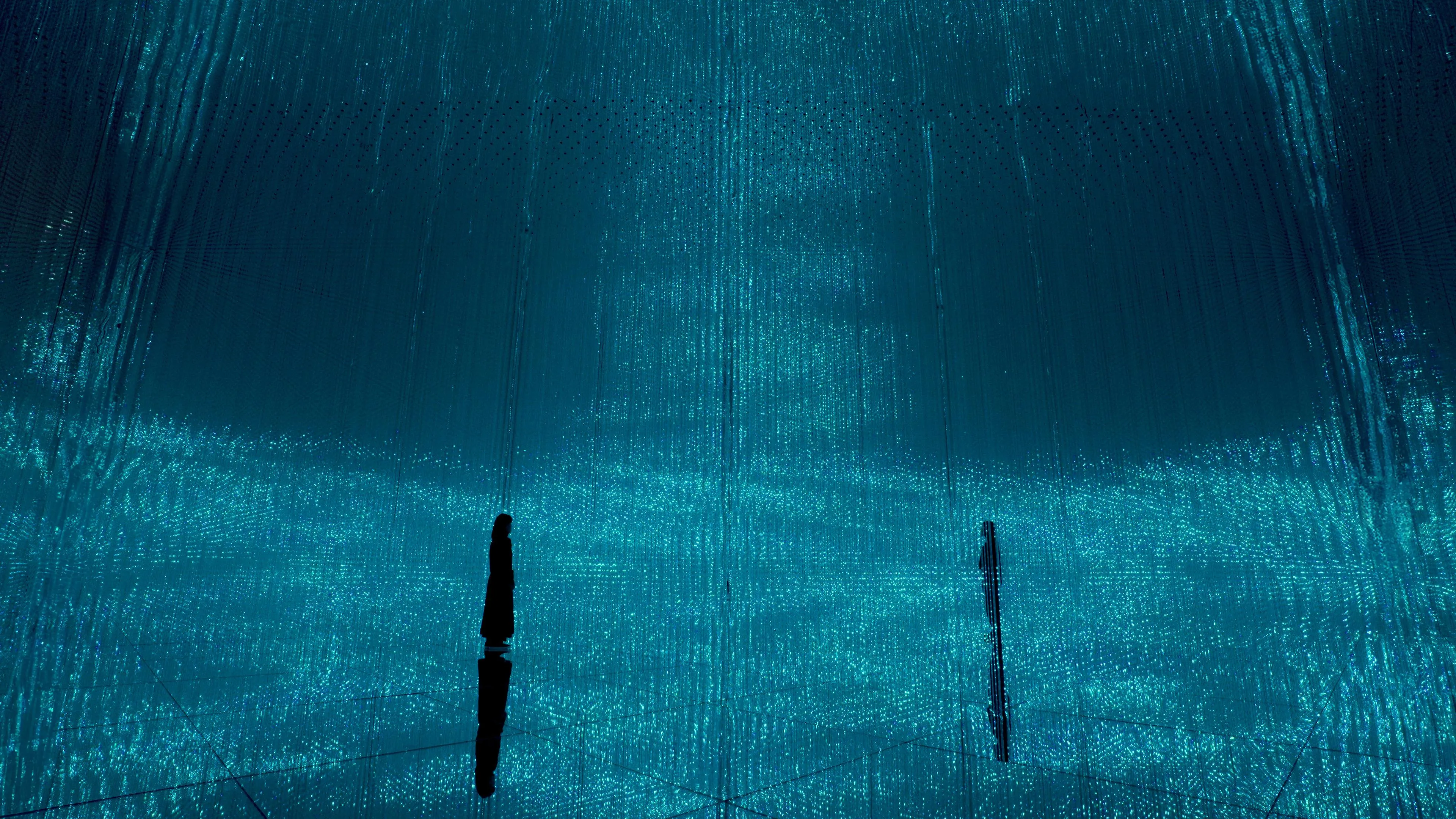 People use their smartphones to select elements to throw into the Infinite Crystal World. These elements are reborn in three dimensions, creating the artwork. The presence of people and their location within the work affect these three-dimensional elements, which in turn influence and are influenced by other elements in the space.