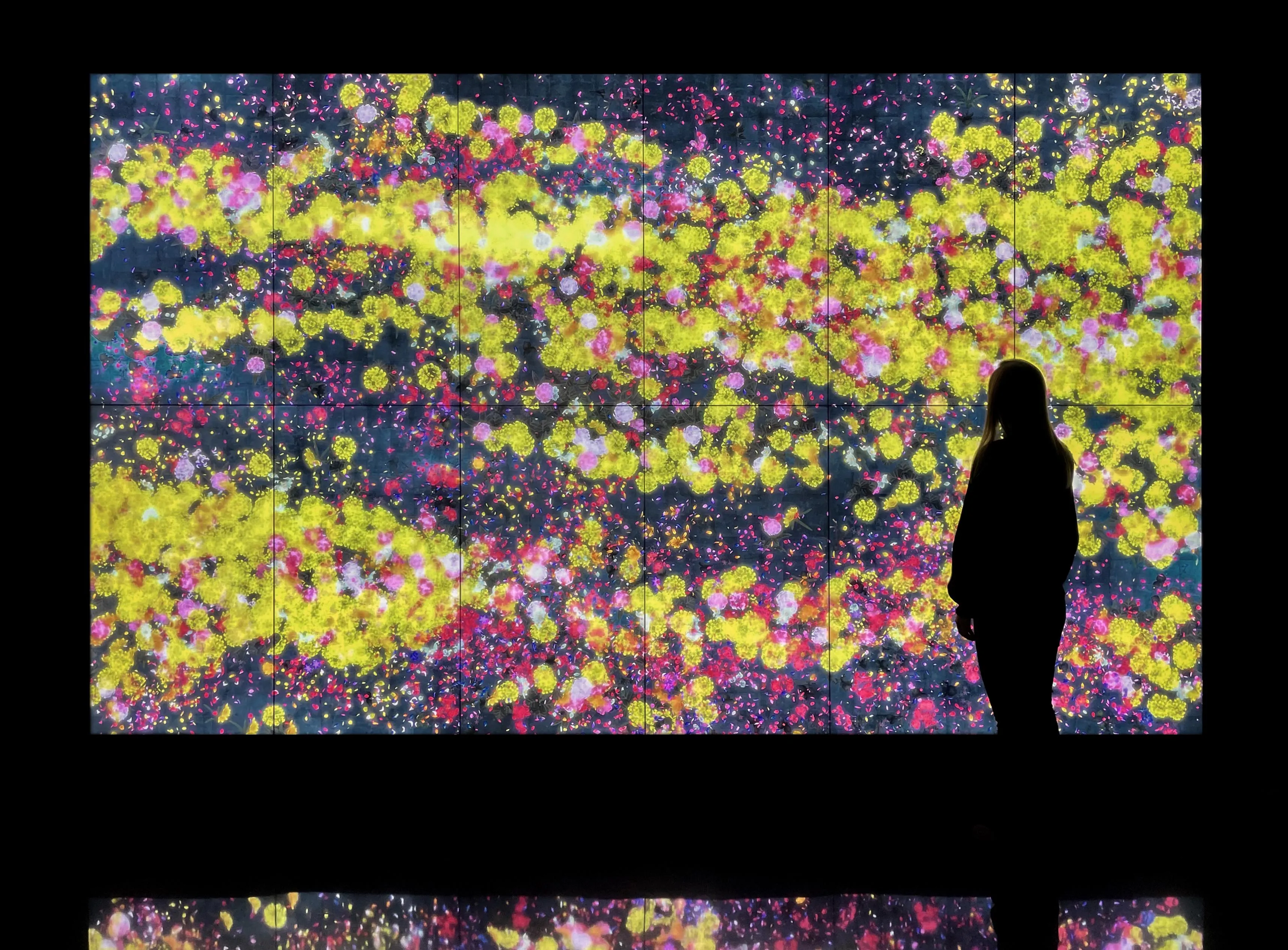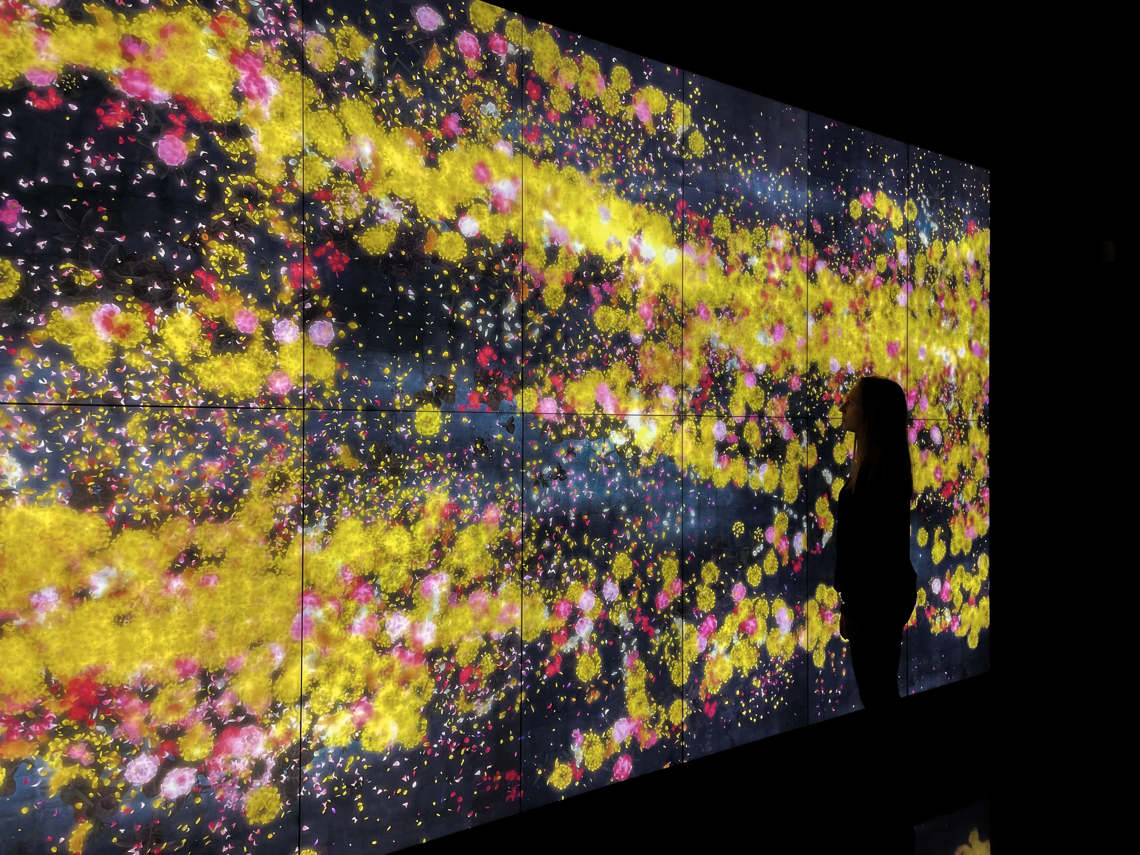 teamLab, 2020, Interactive Digital Work, 12 channels (6 channels x 2 rows), Endless, Sound: Hideaki Takahashi