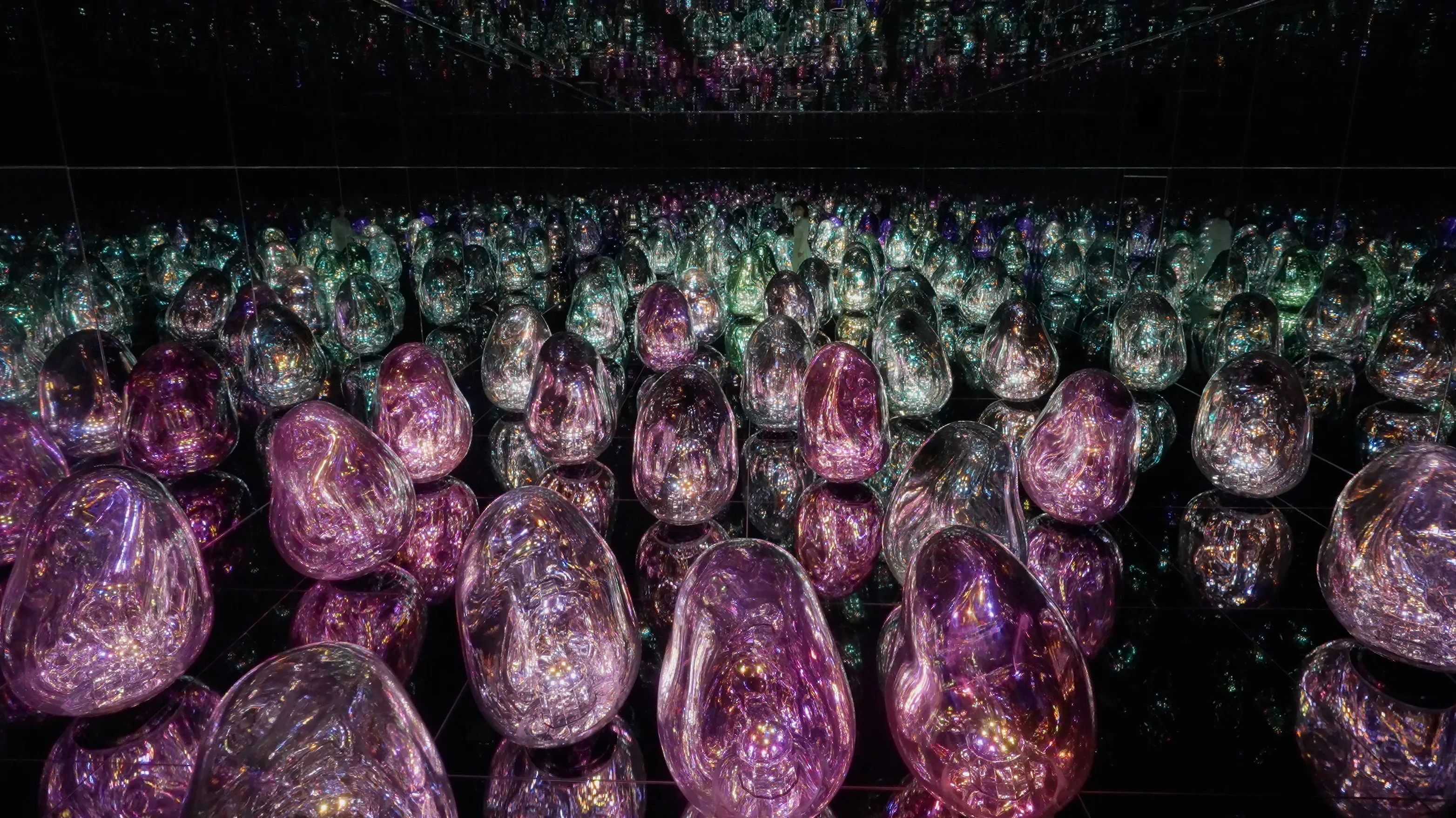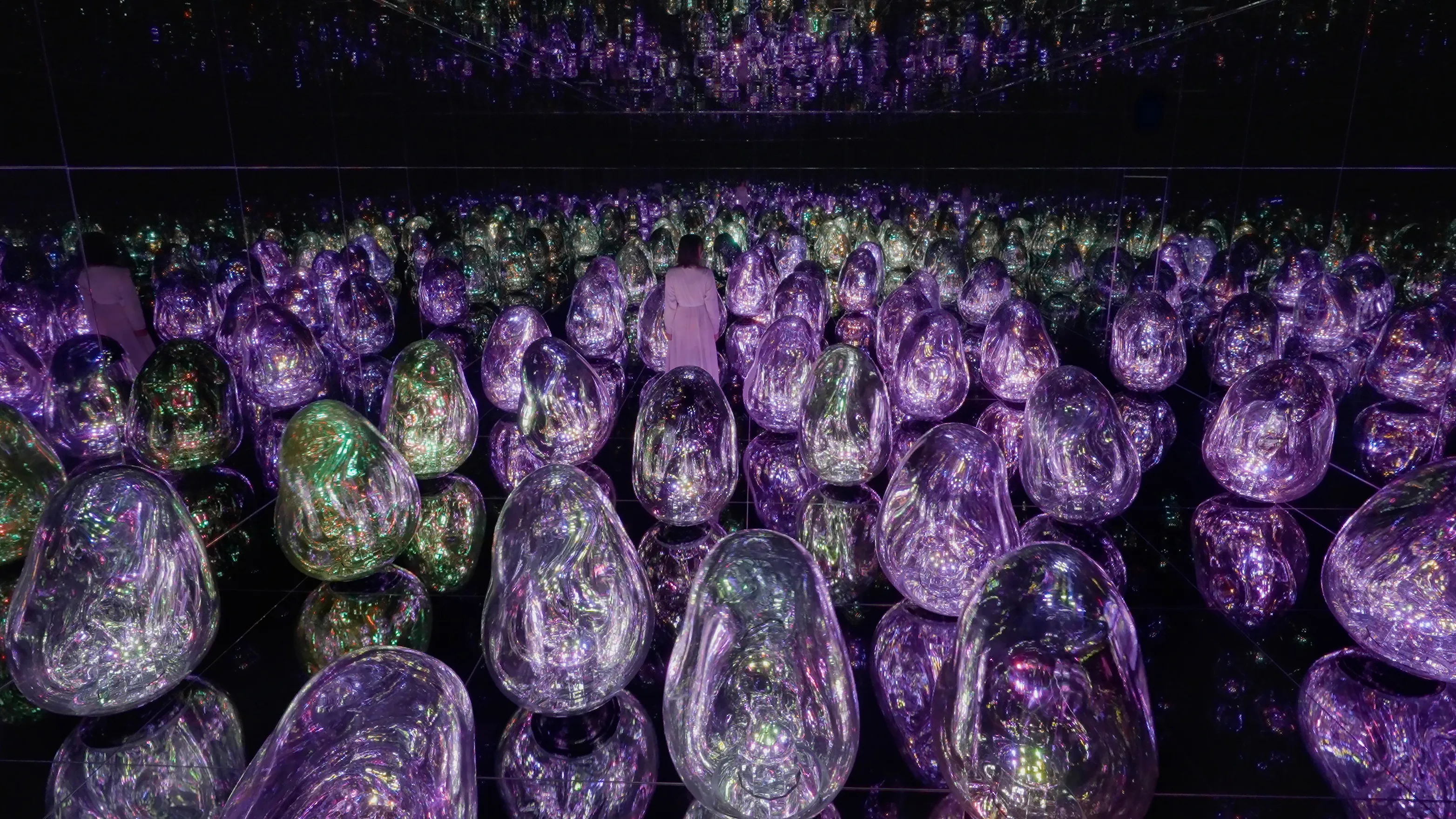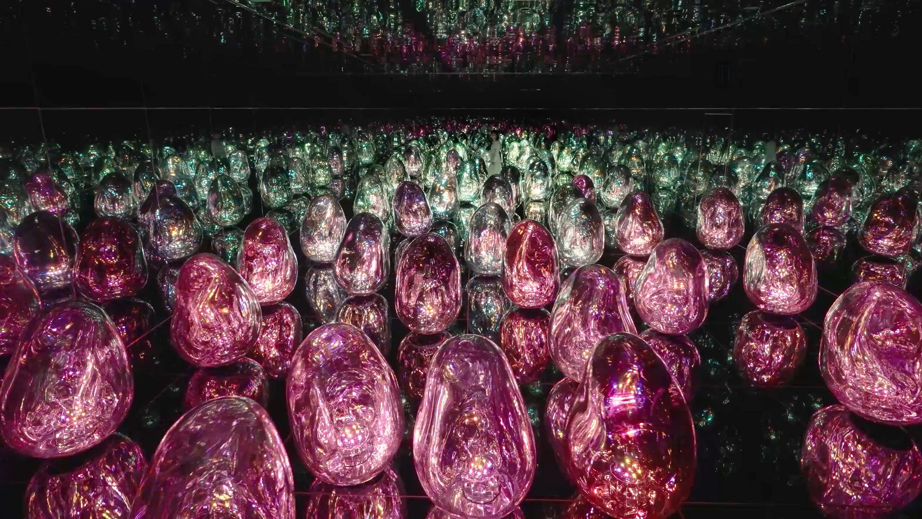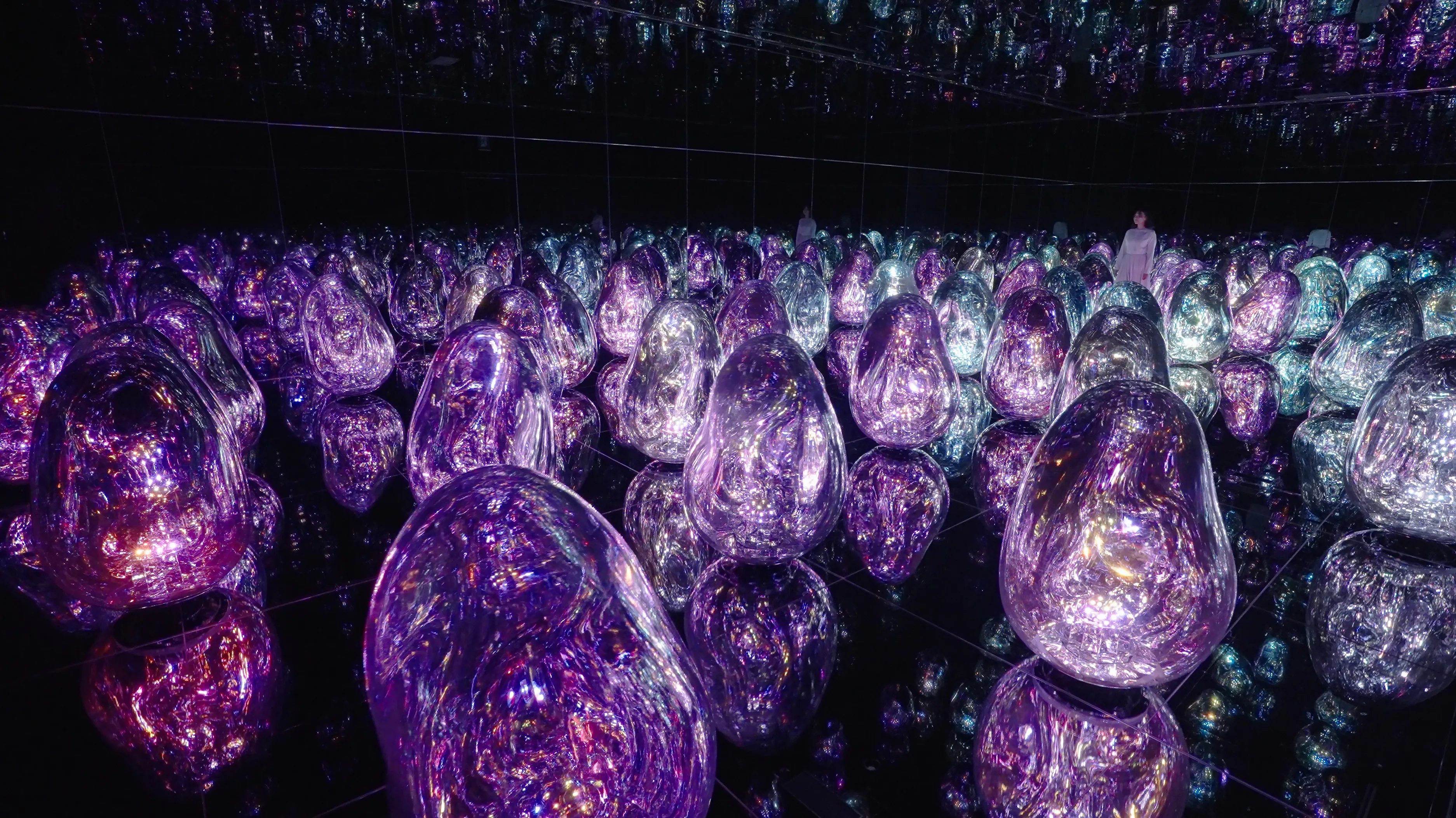 teamLab is experimenting with the concept of color. The ovoids can change into a total of 32 newly-defined Solidified Light Colors.