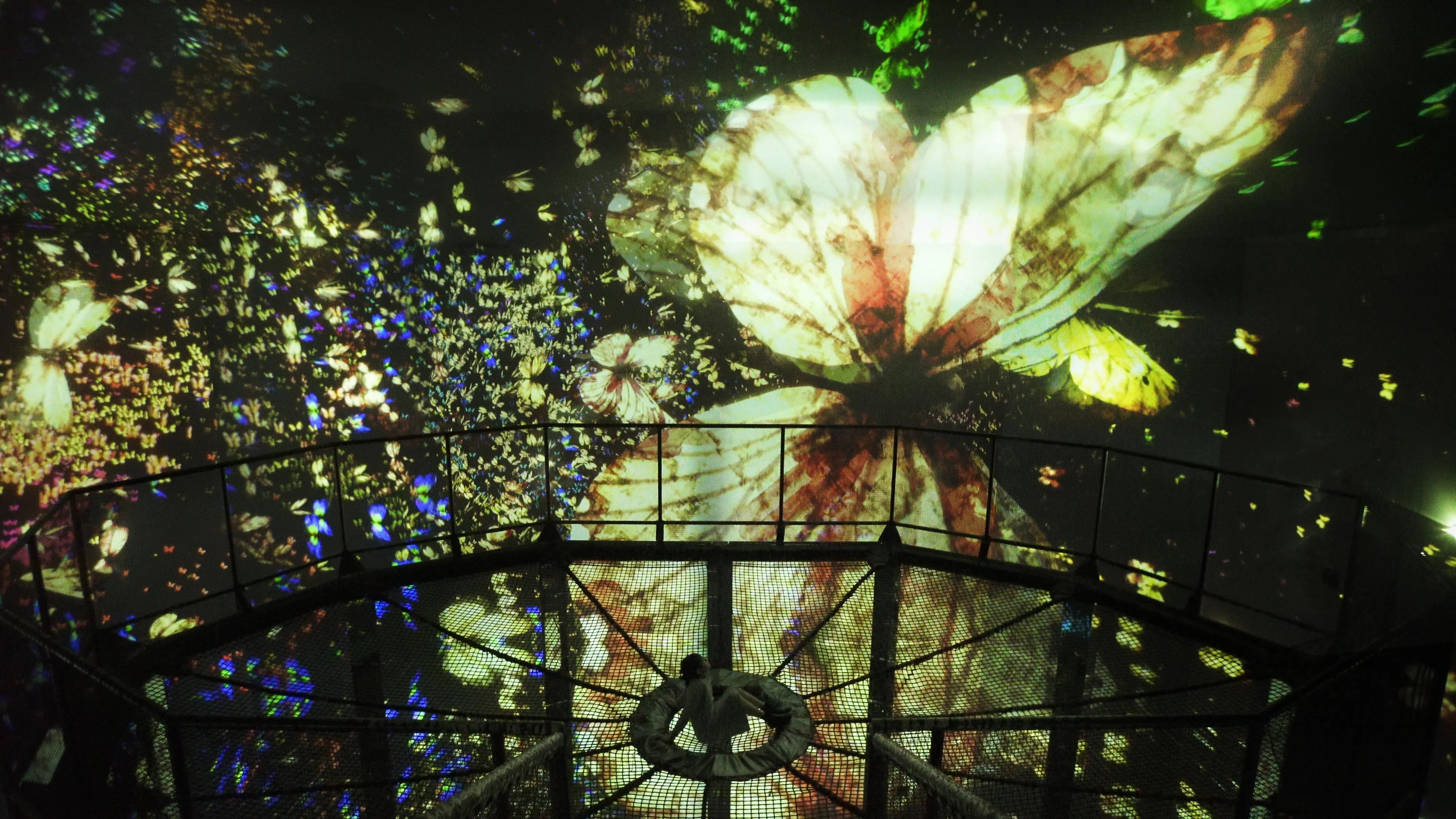 The group of butterflies that come into this space are those from the Flutter of Butterflies Beyond Borders (a group of butterflies born from other artworks, such as the butterflies born from people’s bodies in the Butterfly House). These butterflies release art from the concept of  the frame, removing boundaries from the artwork space, the butterflies seamlessly fly inside other artworks.