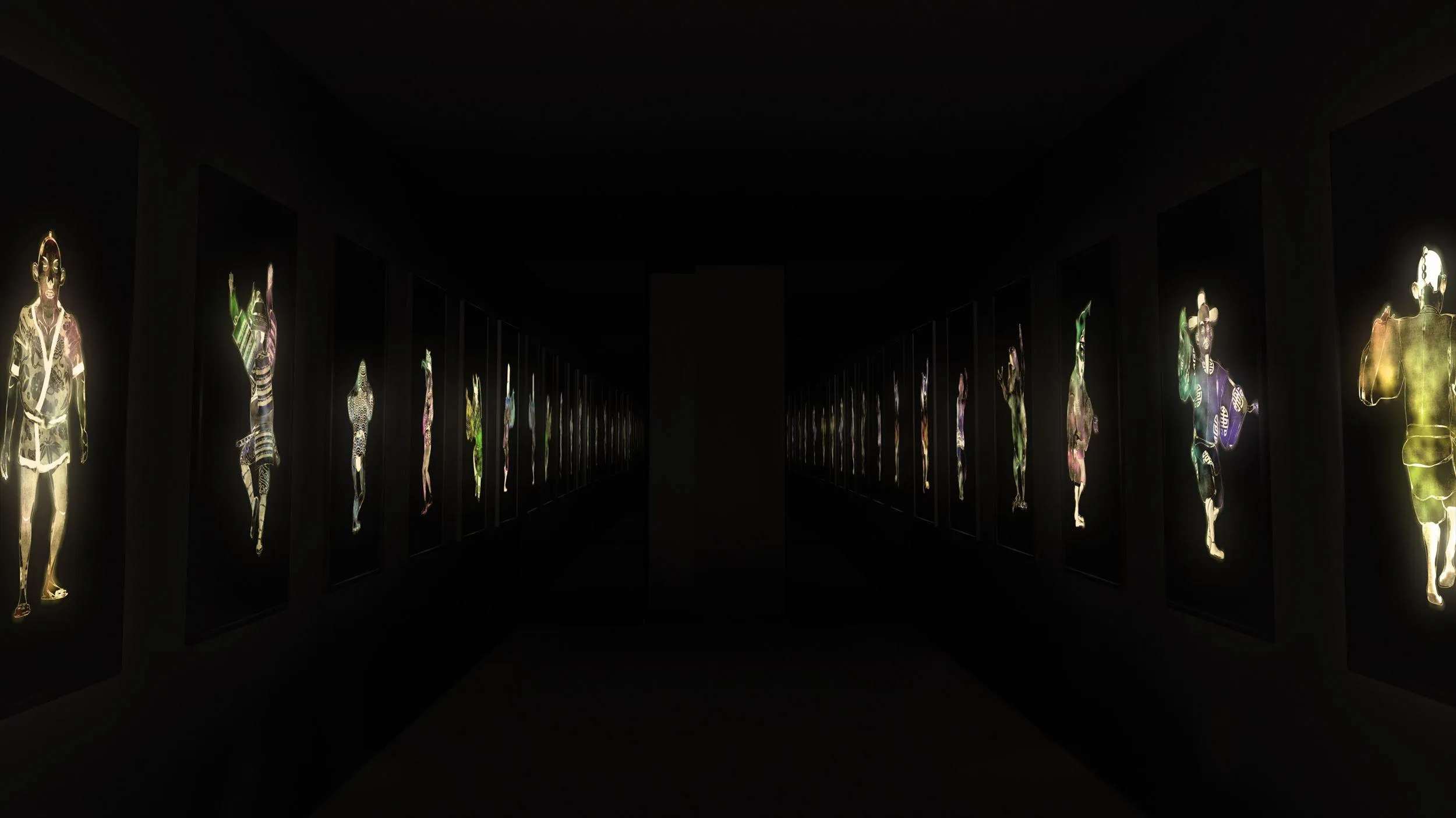 Various people are dancing on both sides of a road of darkness. When a visitor walks by the dancers they react in various ways; they stop dancing, they show enjoyment, or they sing. When a person starts to sing other people close by respond and also begin to sing.