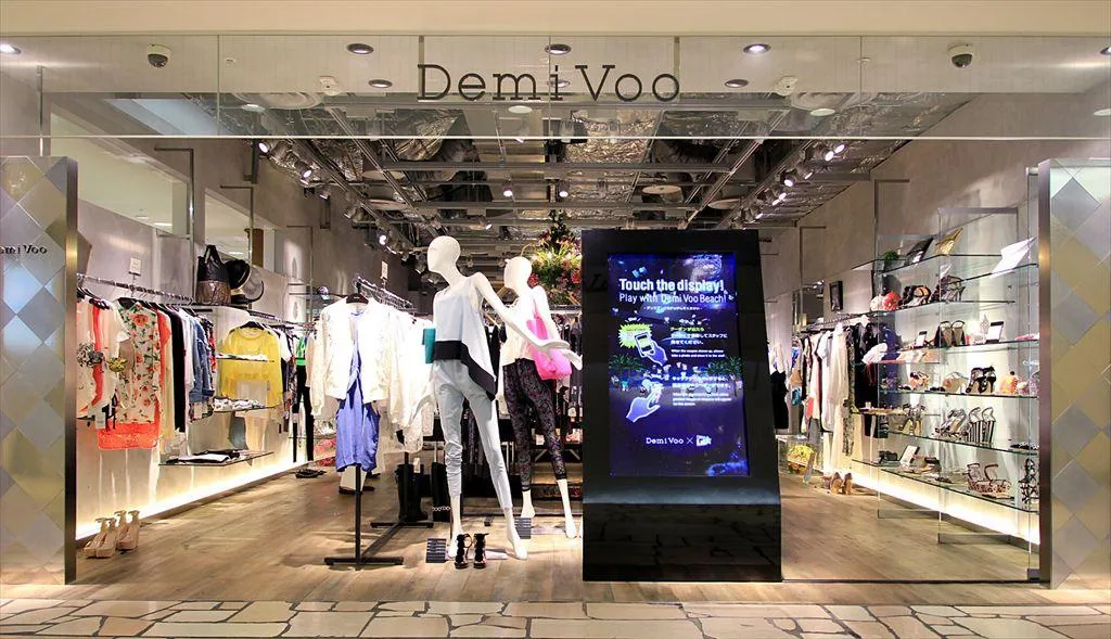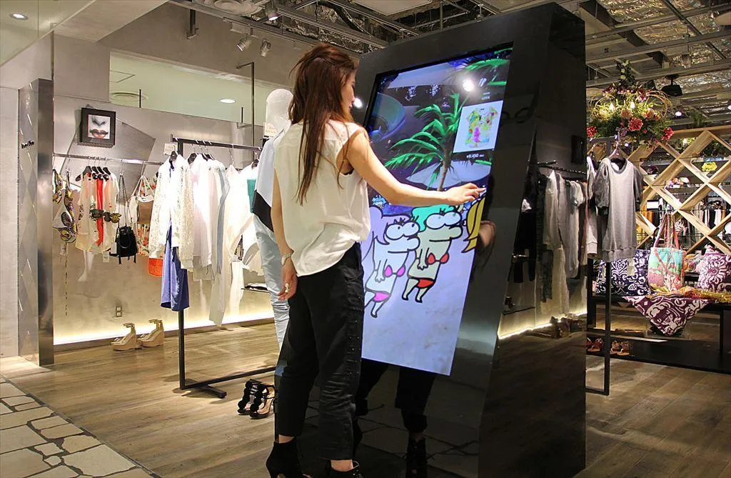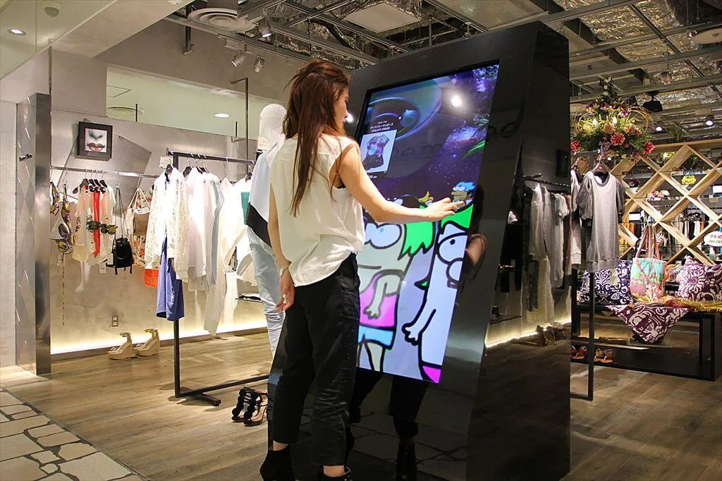 When characters moving around within the space were touched, discount coupons and product images were randomly displayed, or the characters would perform some action. By taking a photo of a discount coupon using a mobile phone and showing it to the staff, customers could receive a discount of up to 30% off.