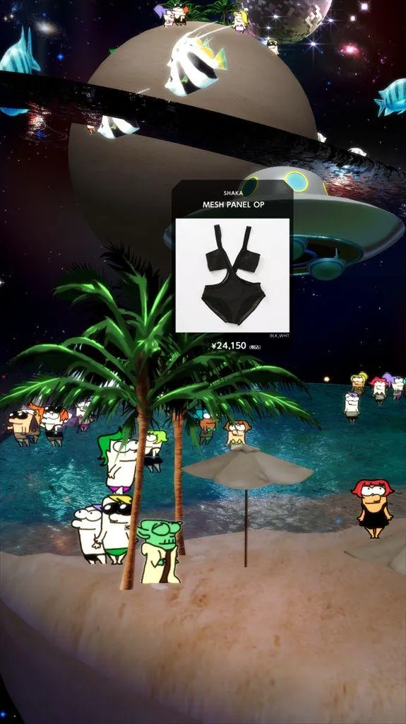 Content for in-store promotions that used a 60 inch touch panel display. With the theme of "a beach in outer-space" to match the image of the products for sale during the campaign period, 3D was used to express a space with depth.