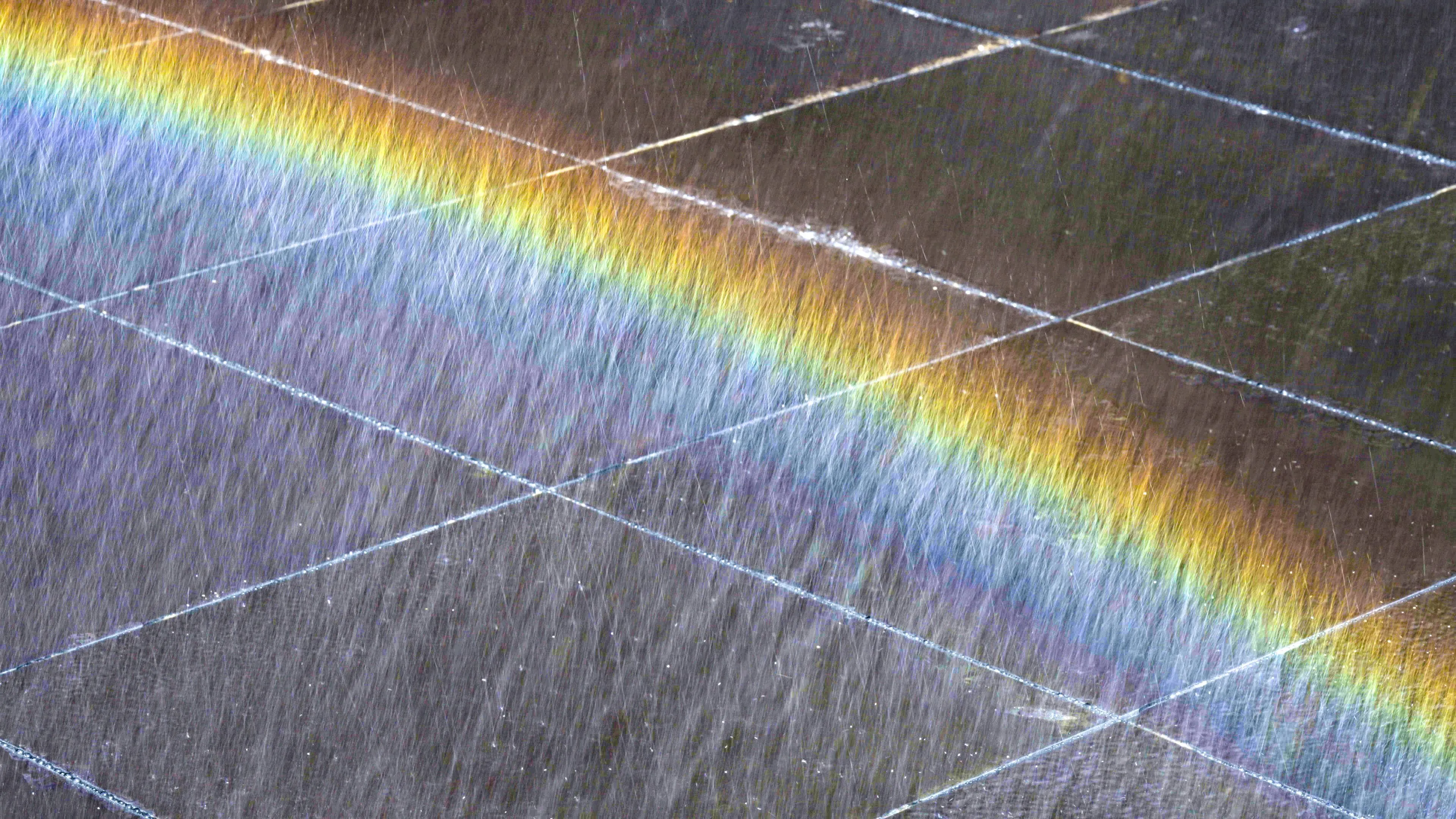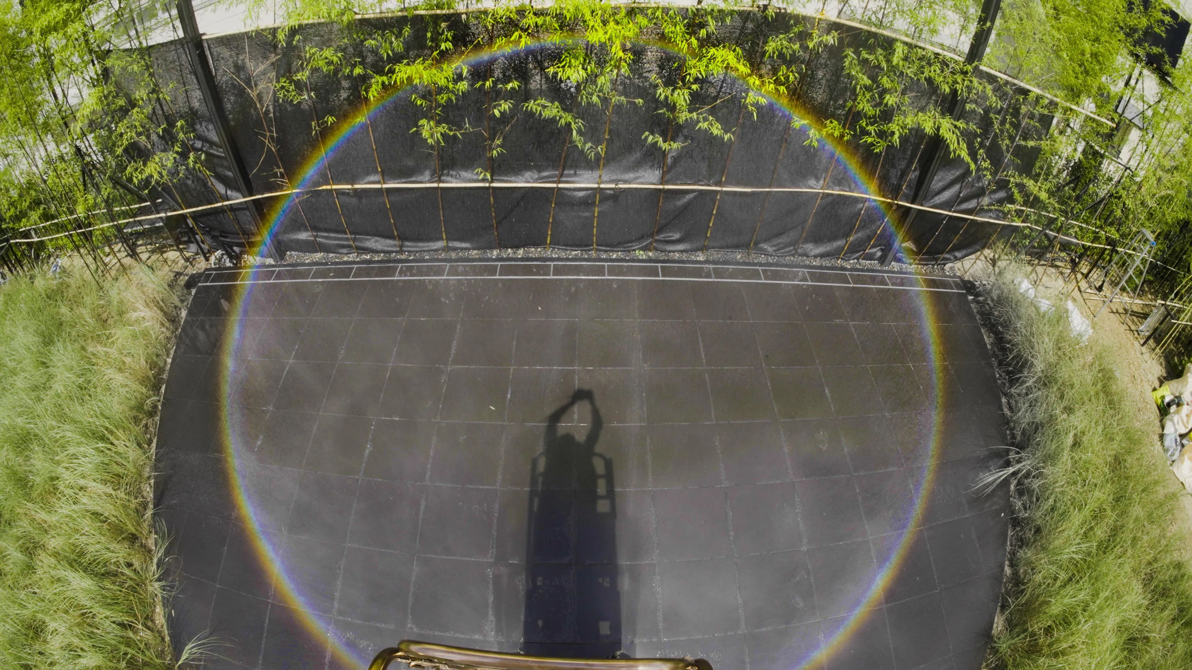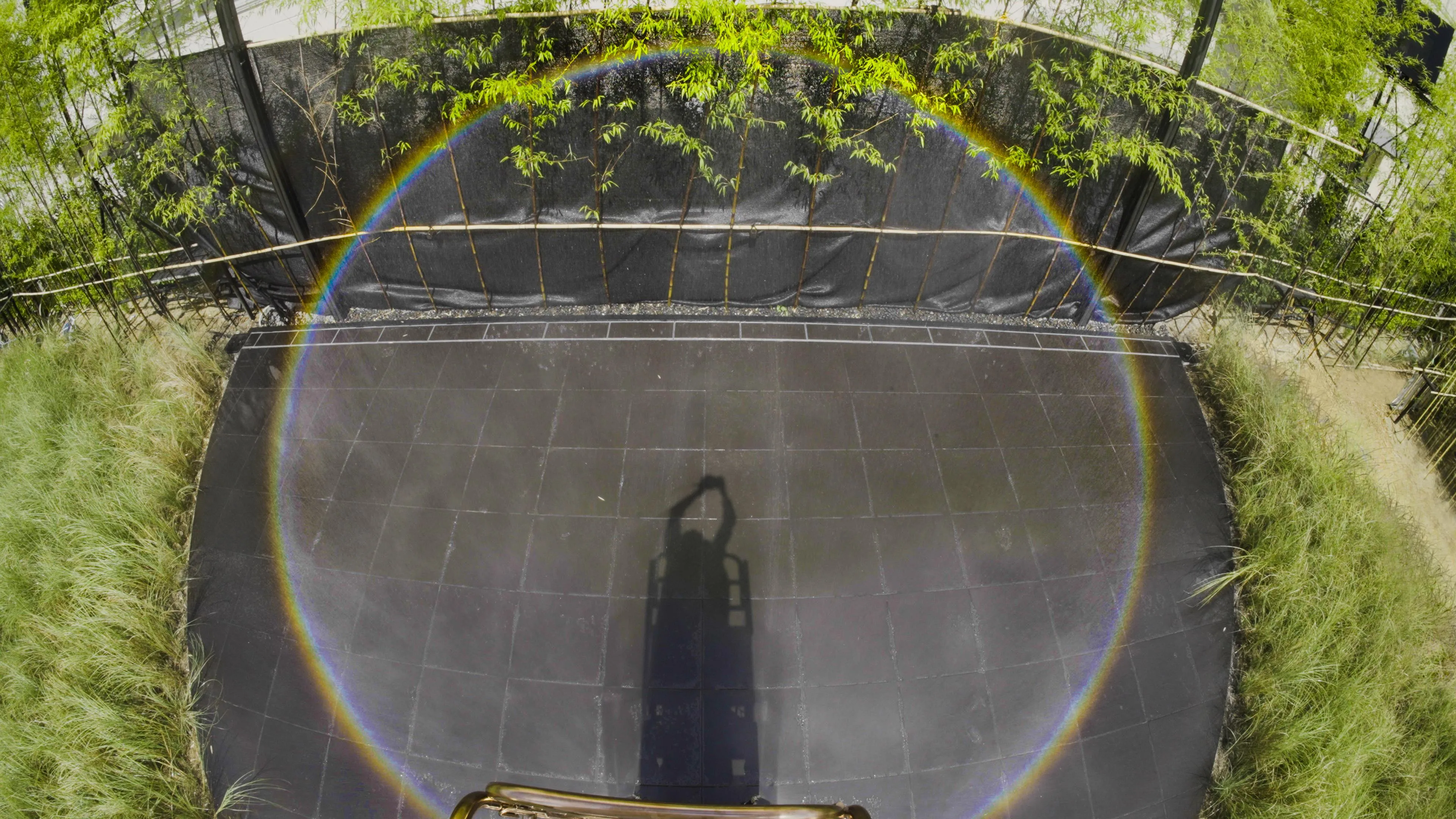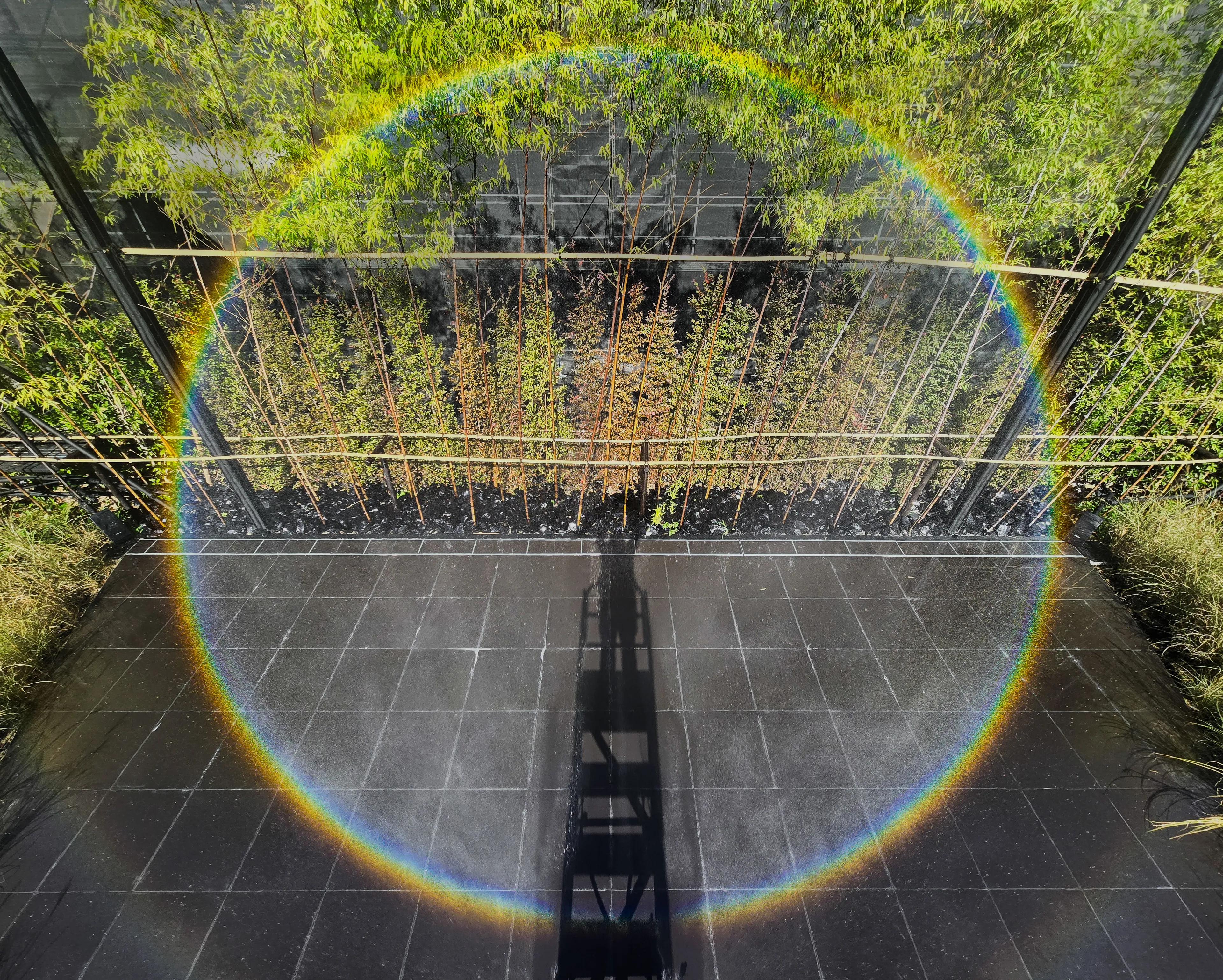 On a day without wind or clouds, when the sun has risen to its highest point, anyone who climbs the Staircase for the Sun can see a full circle rainbow of light that shines brightly in the air.