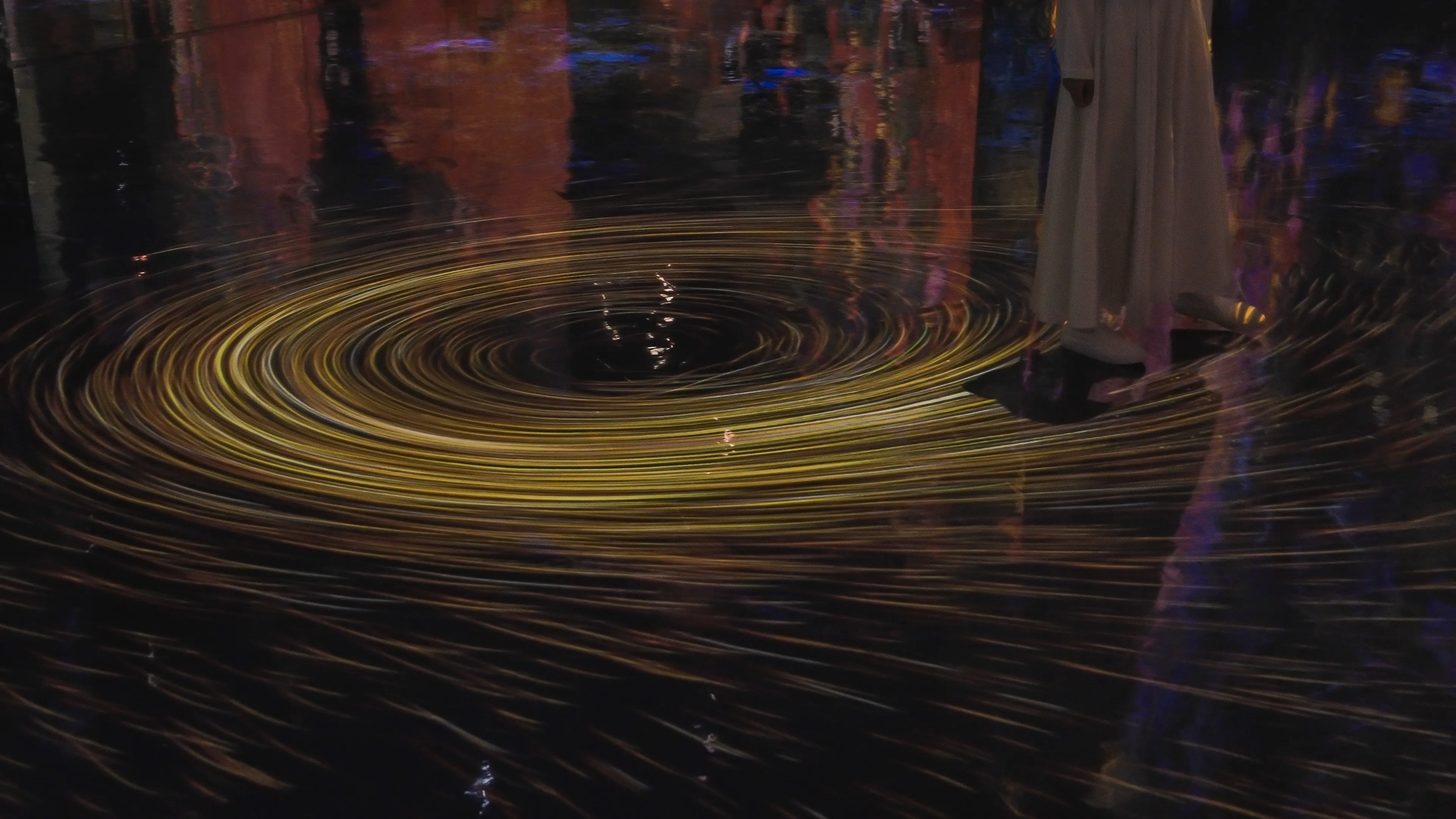 teamLab, 2025, from the series Moving Creates Vortices and Vortices Create Movement, 2017-, Interactive Installation, Endless, Relational Sound: teamLab