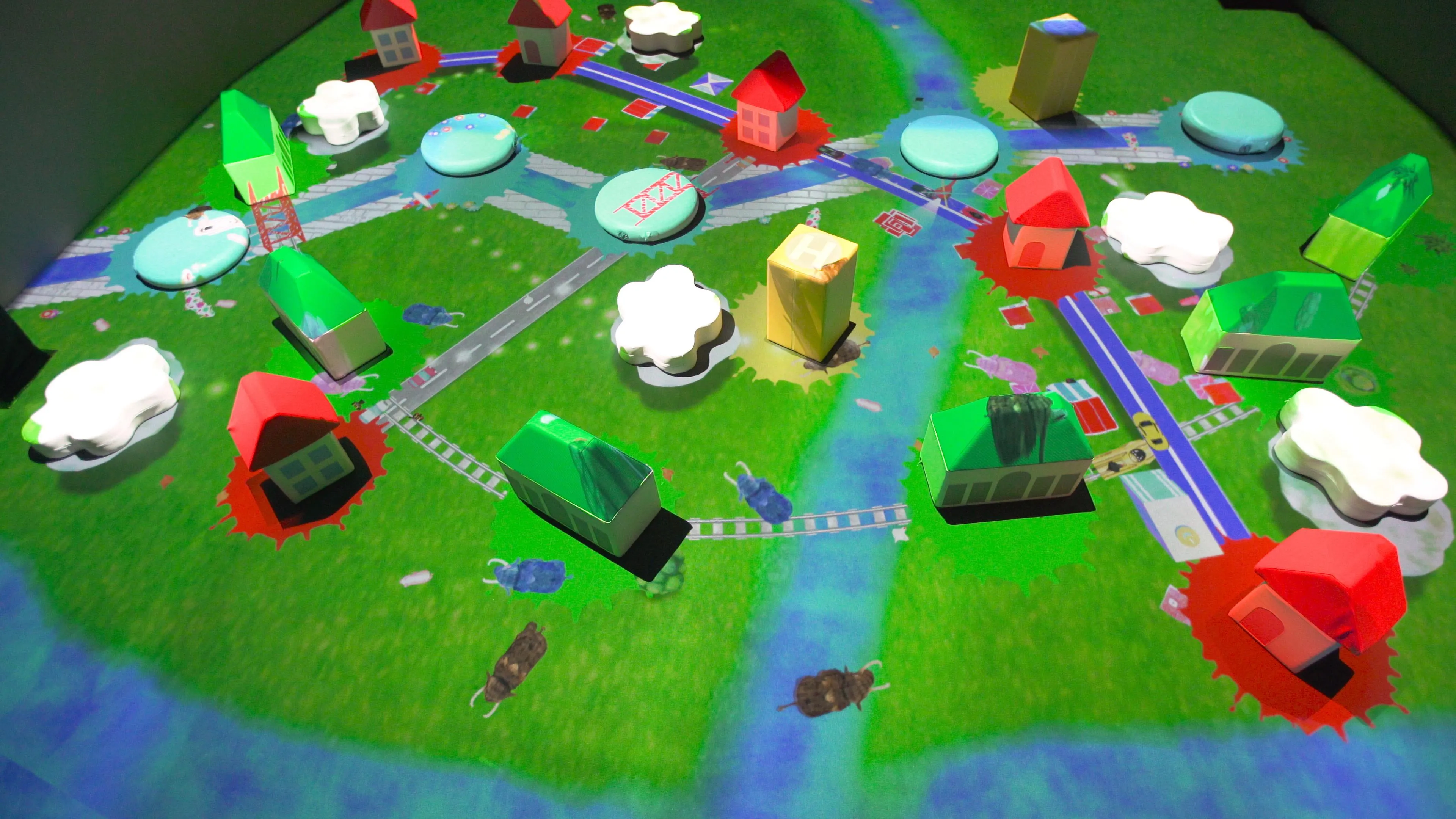 • Place giant blocks shaped like houses, stations, buildings to make a town.