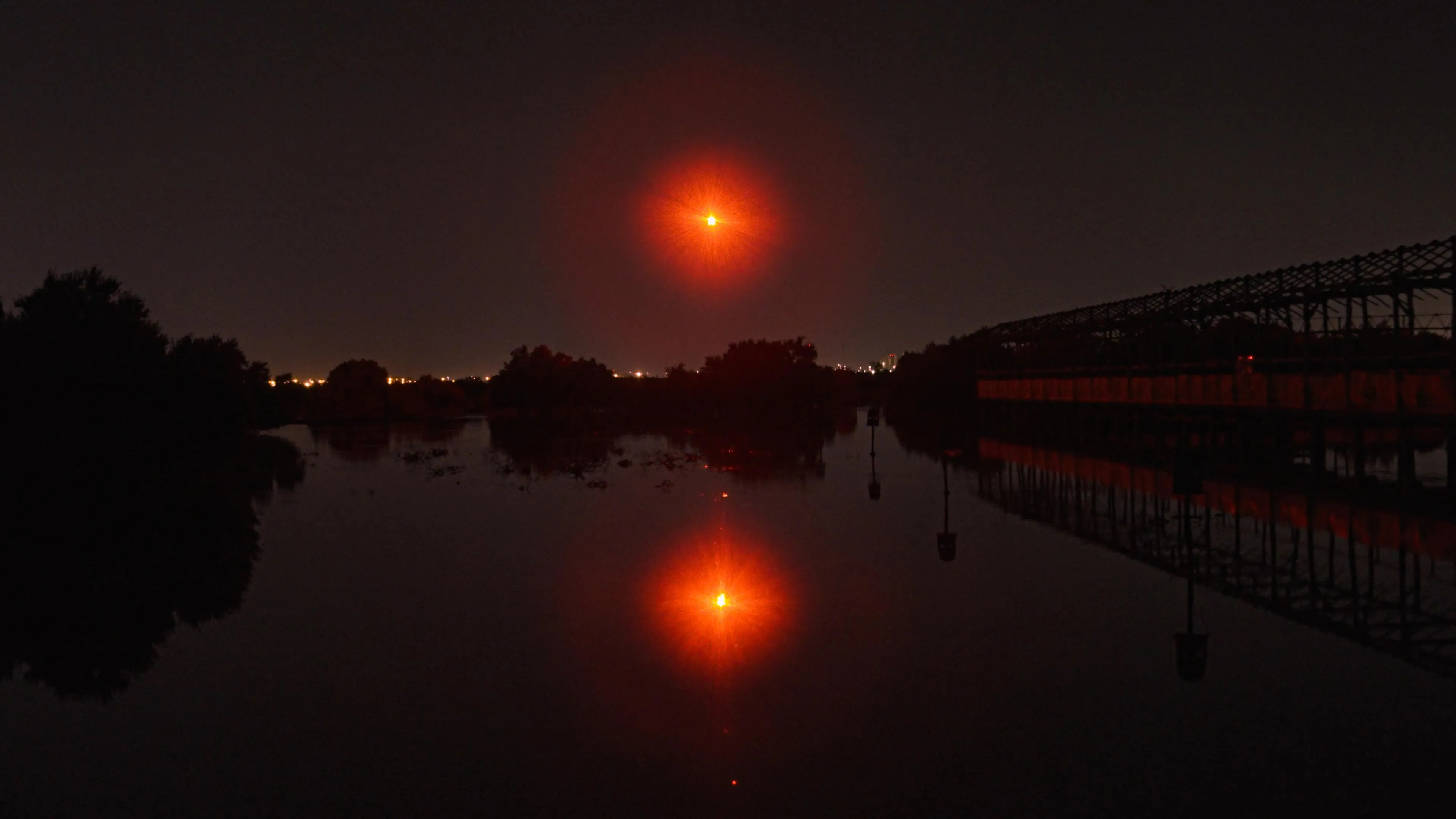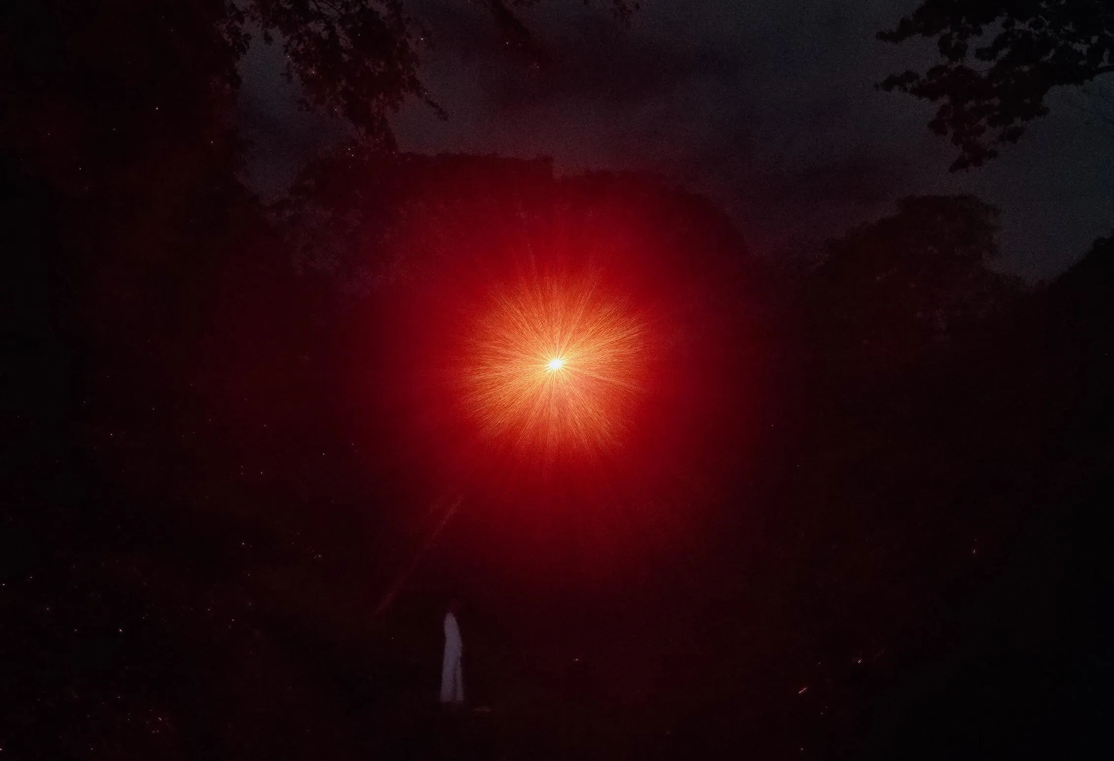 The light radiates from the center in infinite fine rays, creating its spherical shape. The light source remains motionless, yet the countless lines emitting from it wriggle continuously.