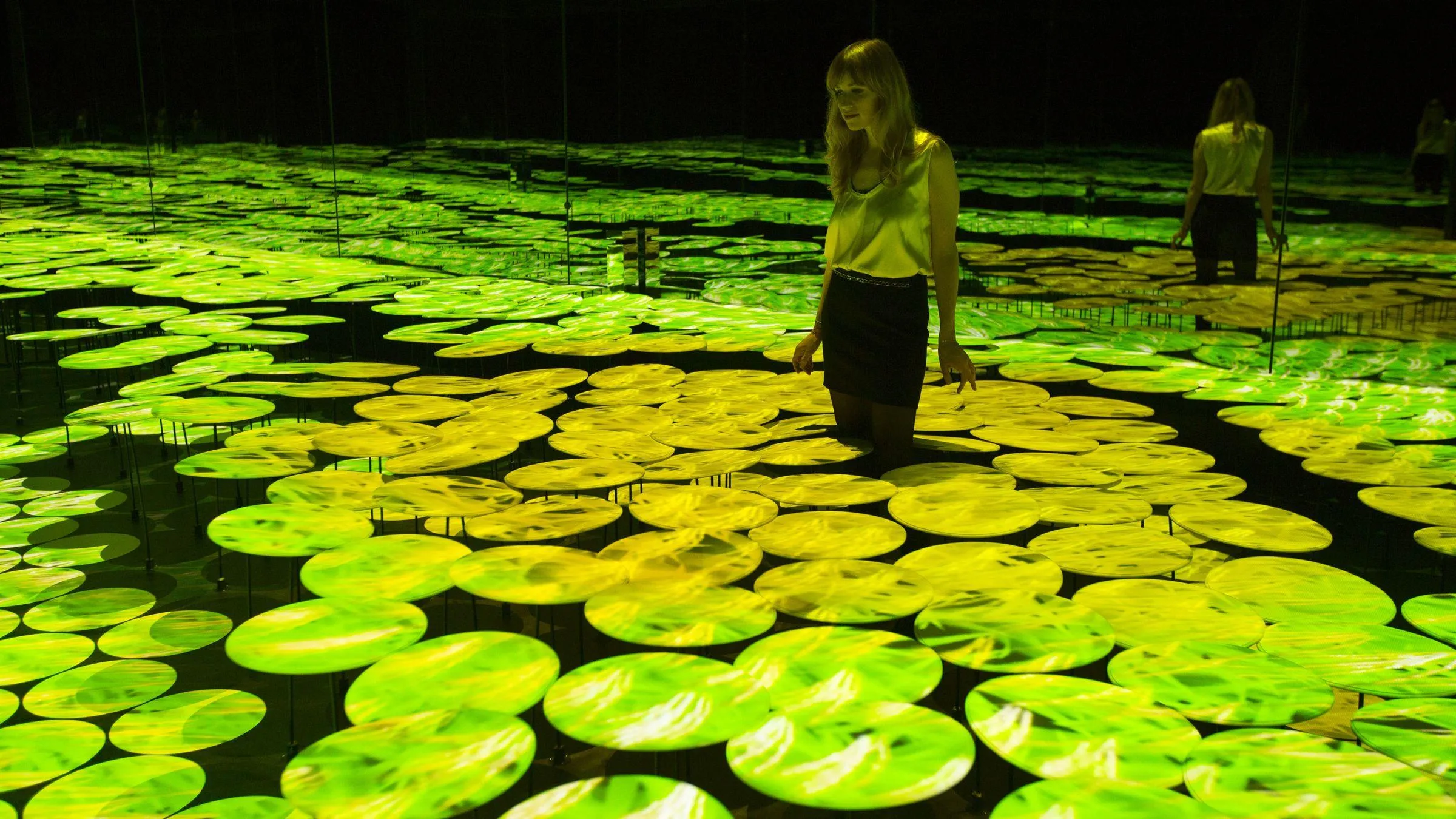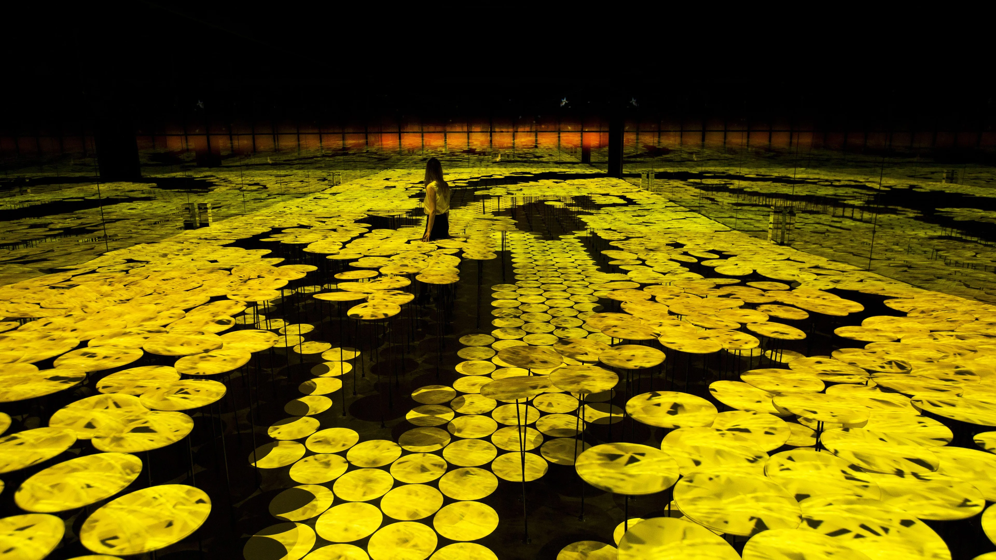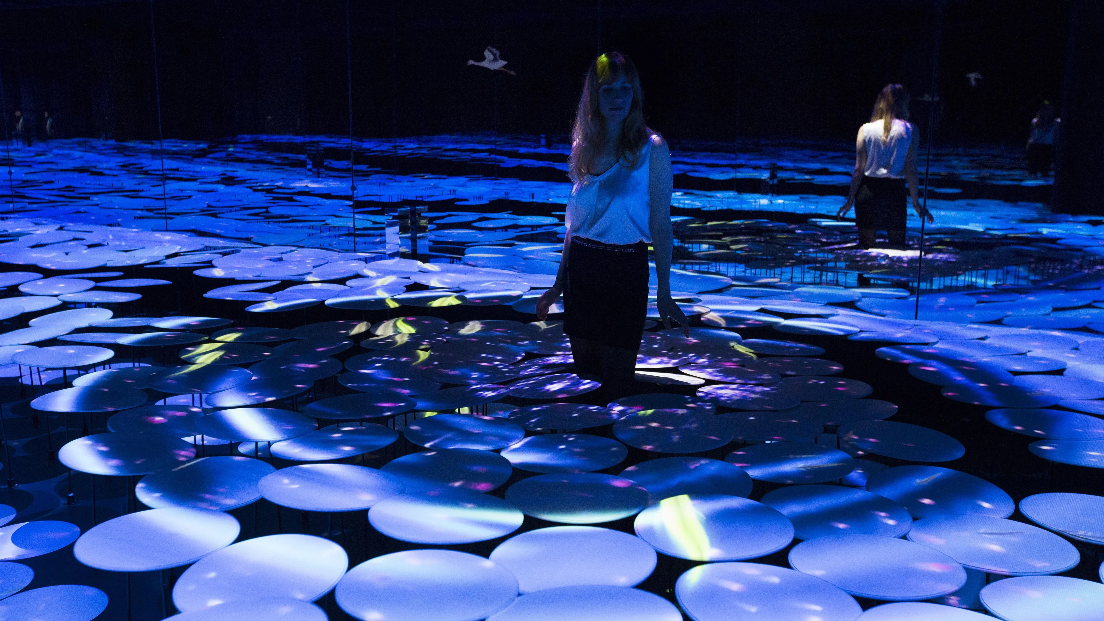 The projected images change in line with the visitors’ movements as they wander through the room.