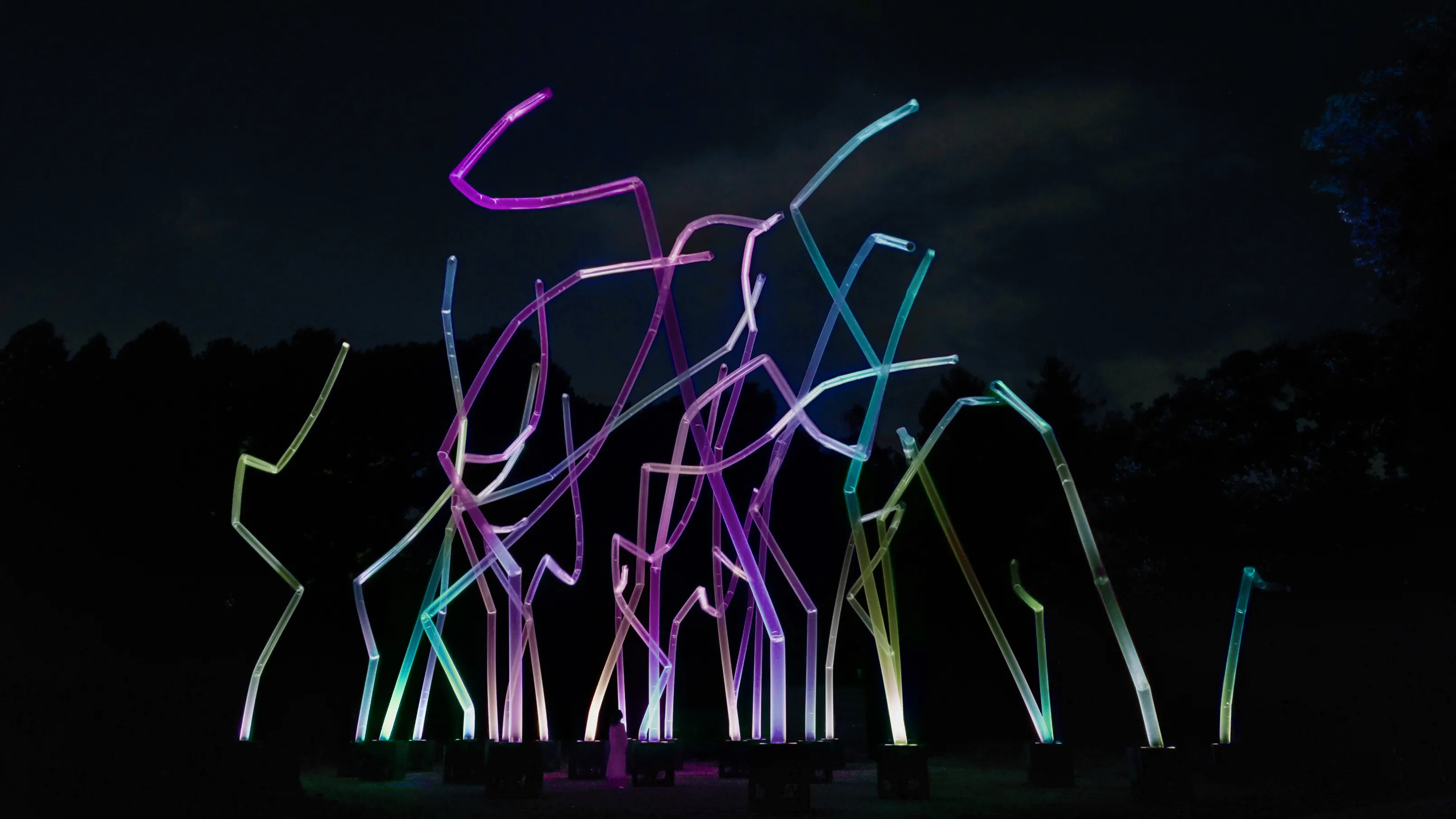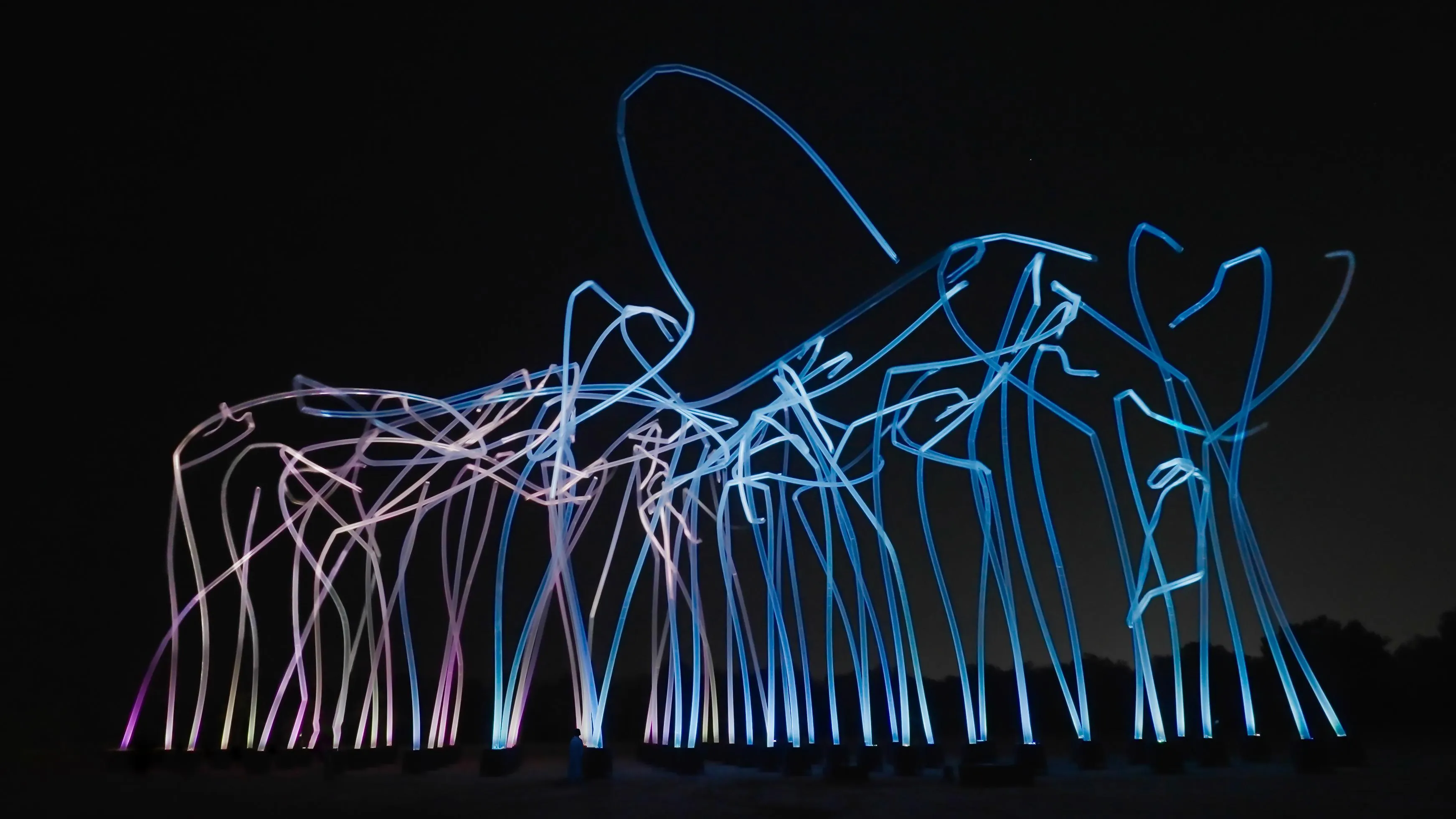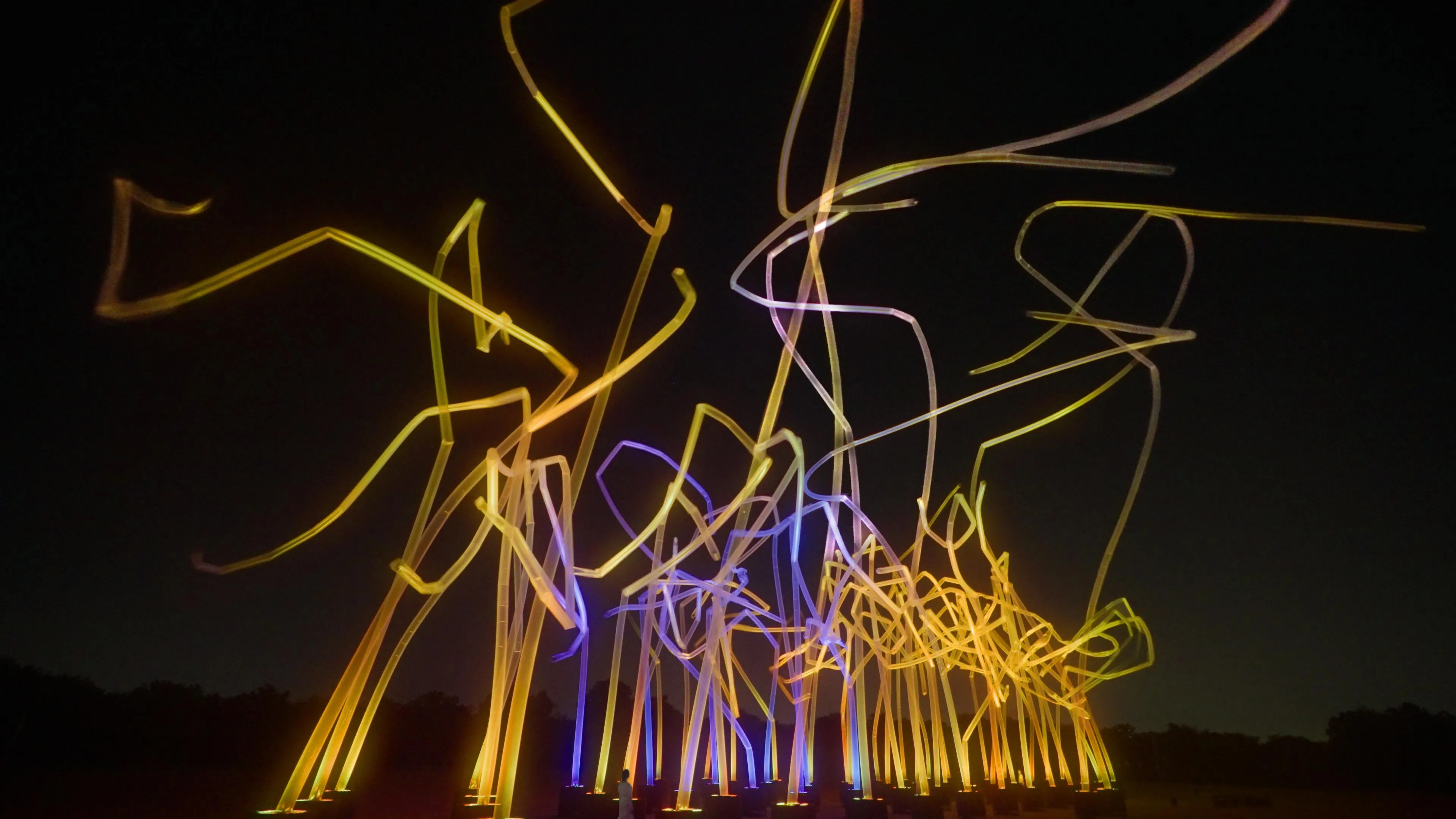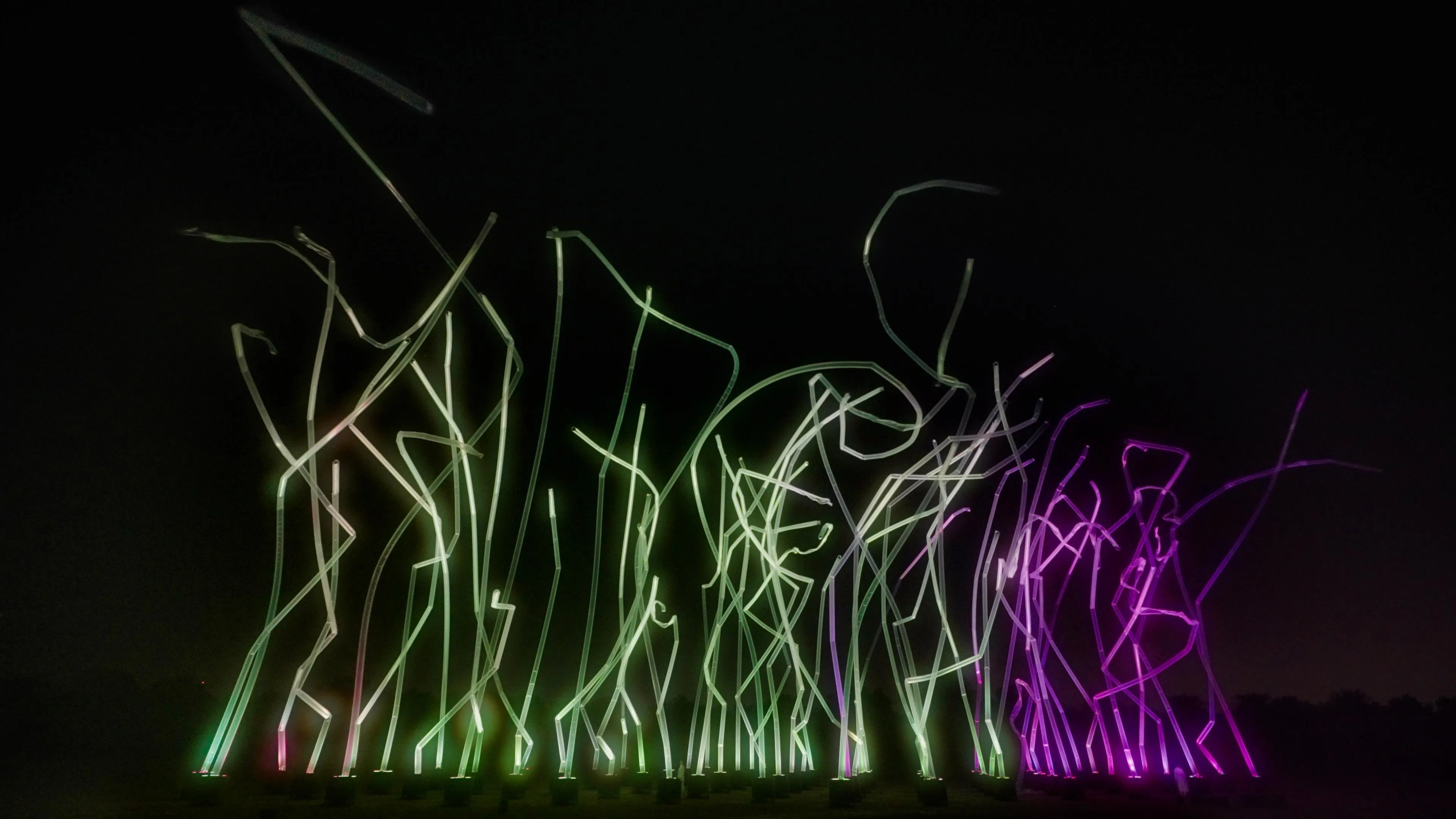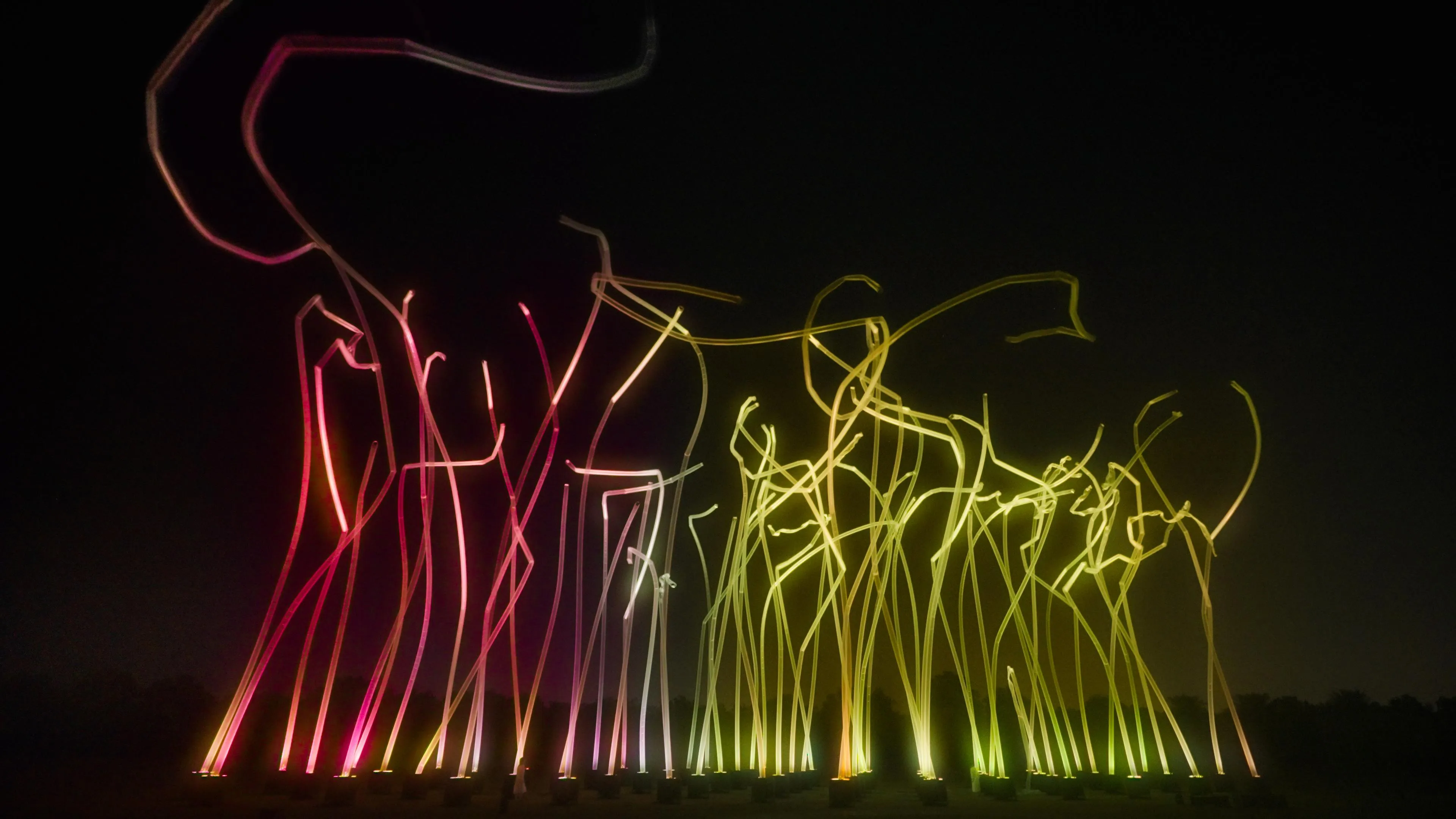 The artwork is strongly influenced by its environment, including wind, rain, and humidity. The number, movement, and height of the pillars changes significantly.