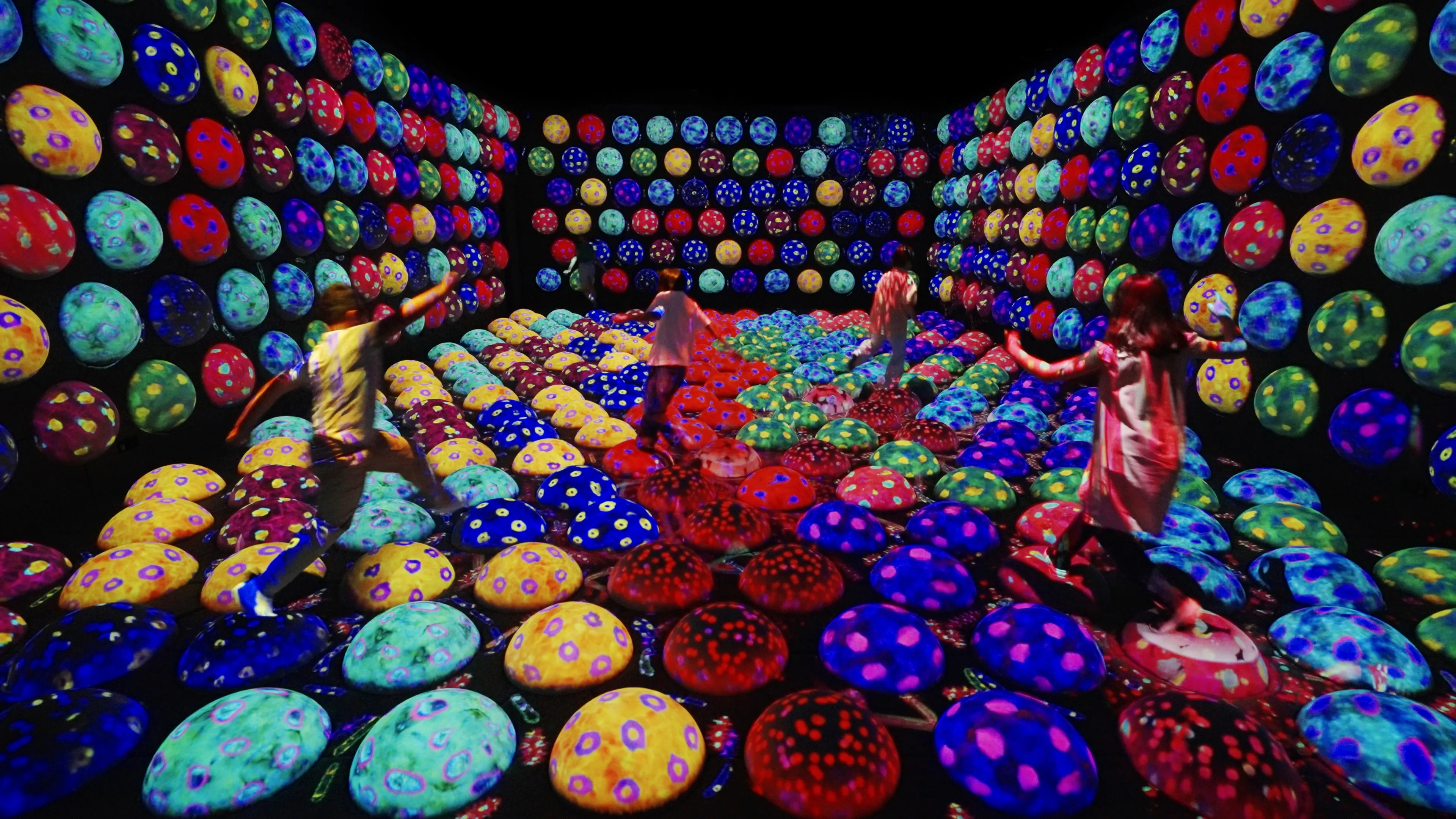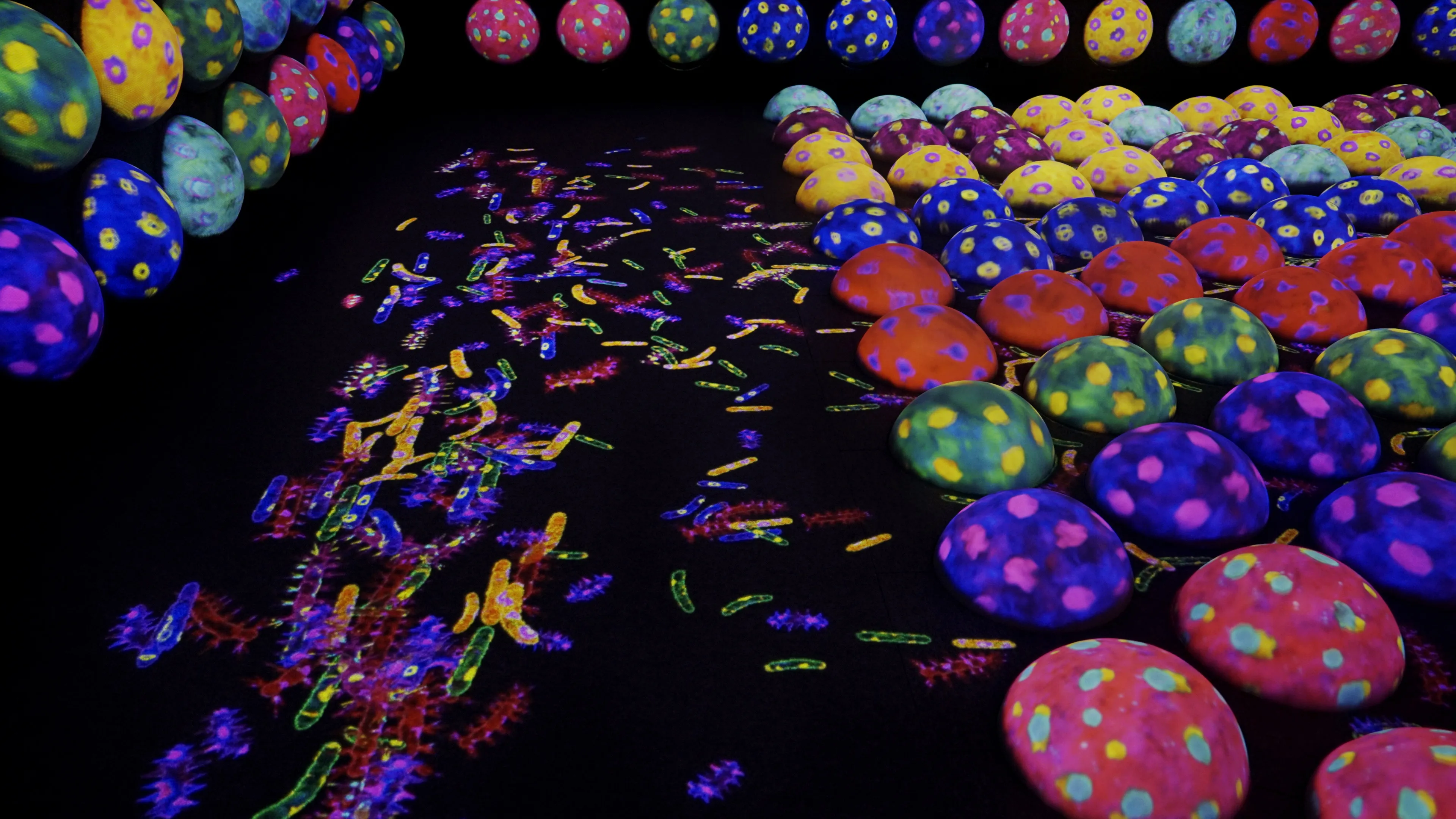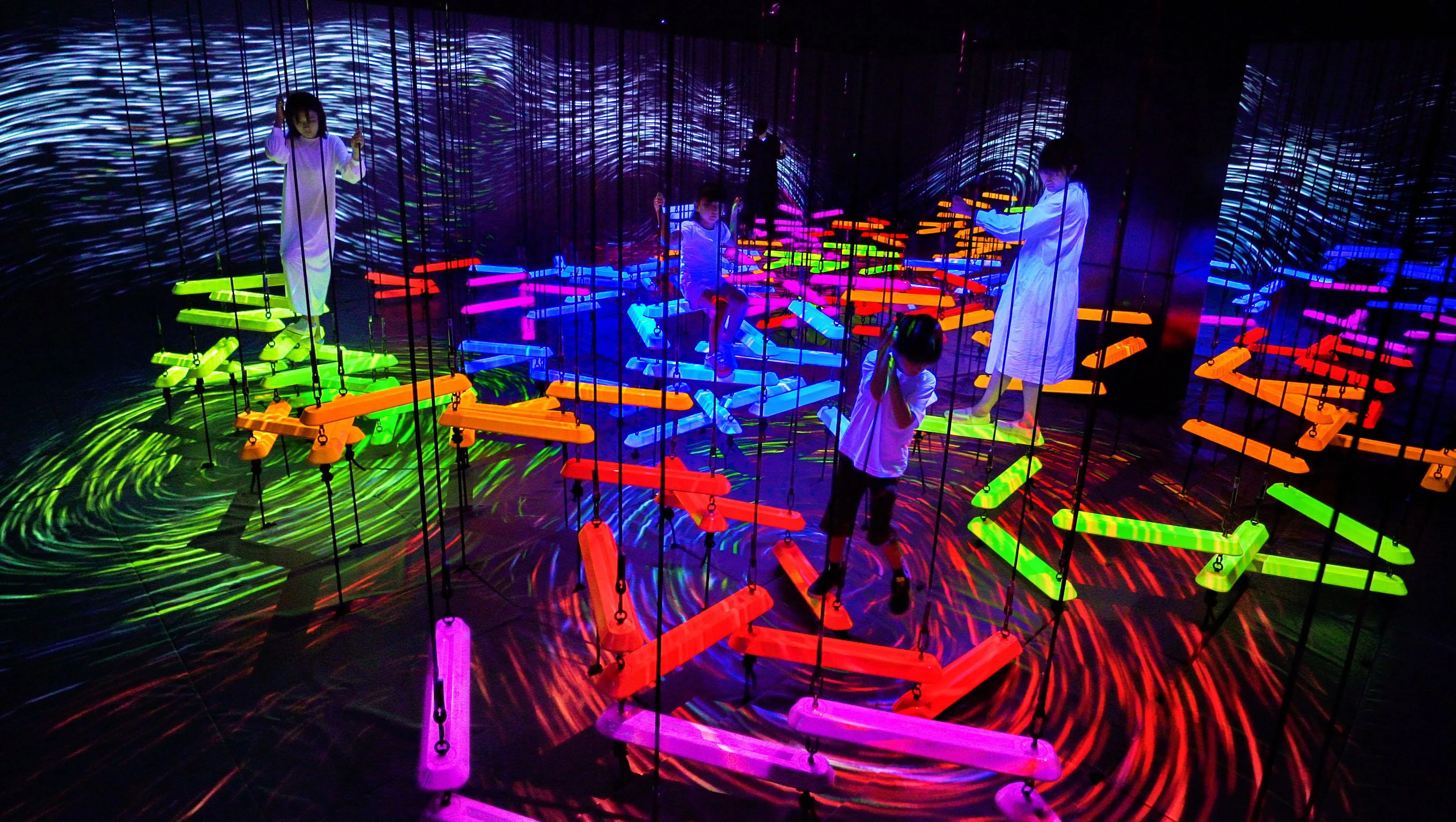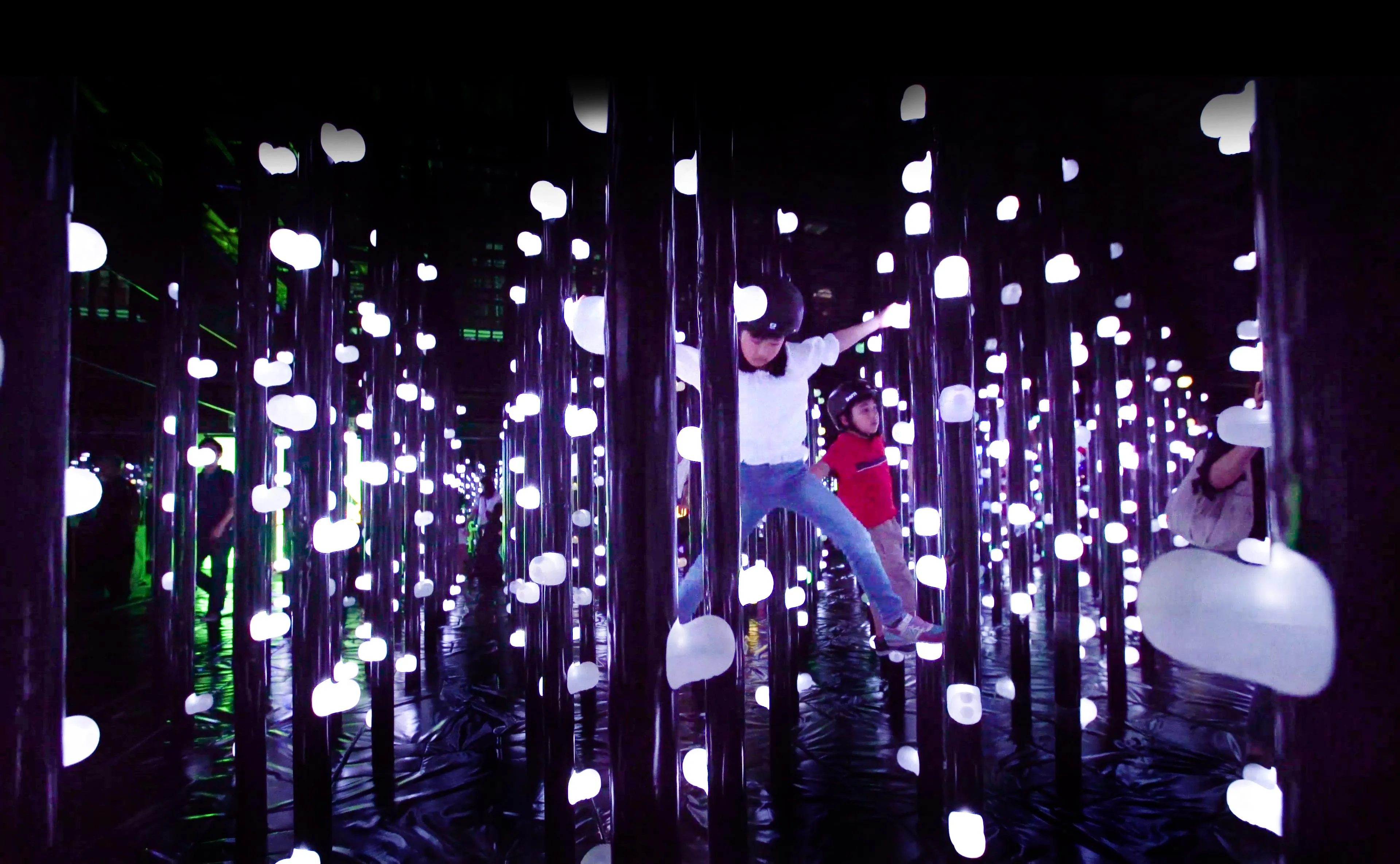 Rapidly Rotating Bouncing Sphere is a space made up of spheres that people can jump on. The spheres rotate at high speed, but when people approach them, they stop rotating and become easier to step on.