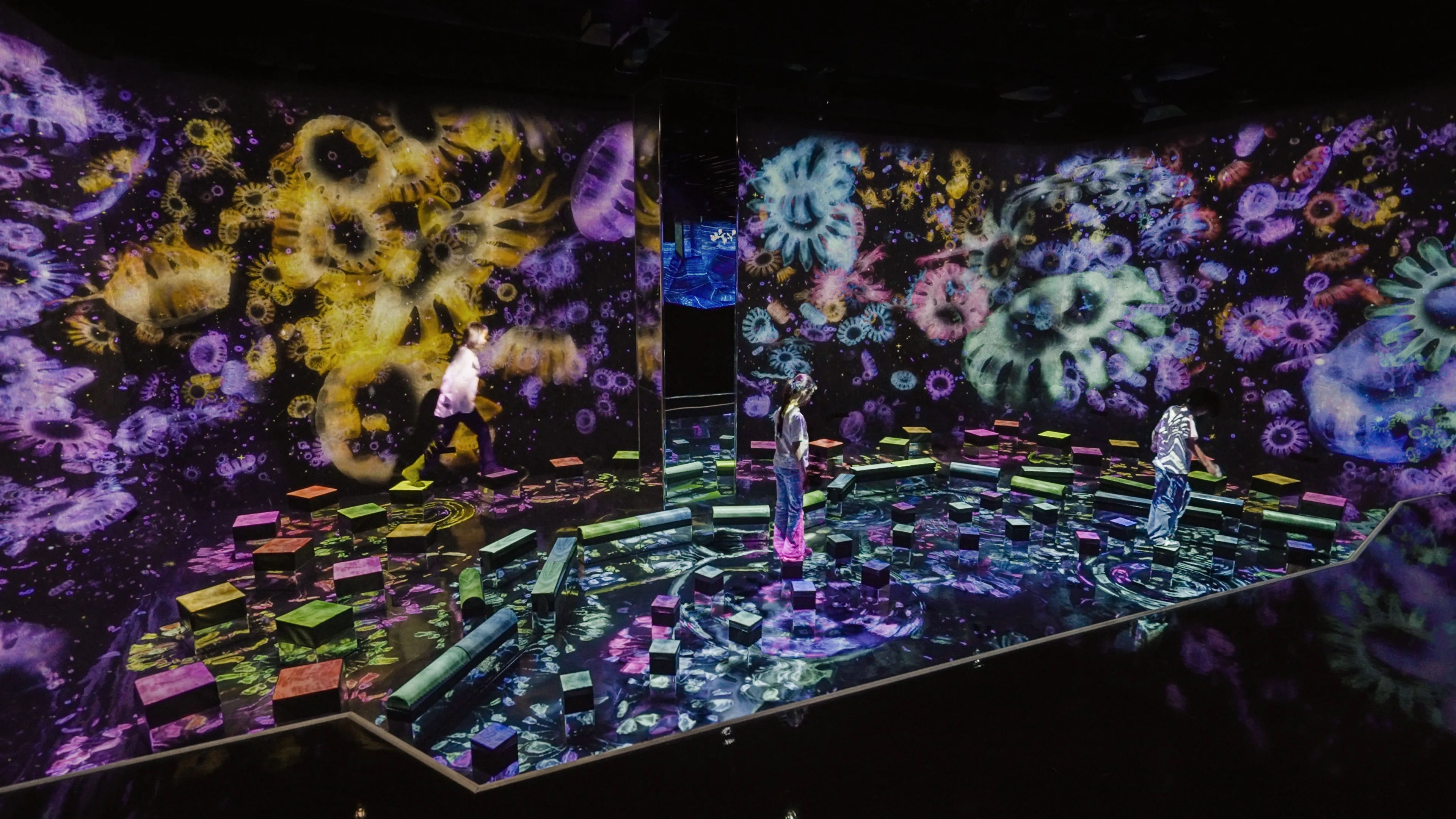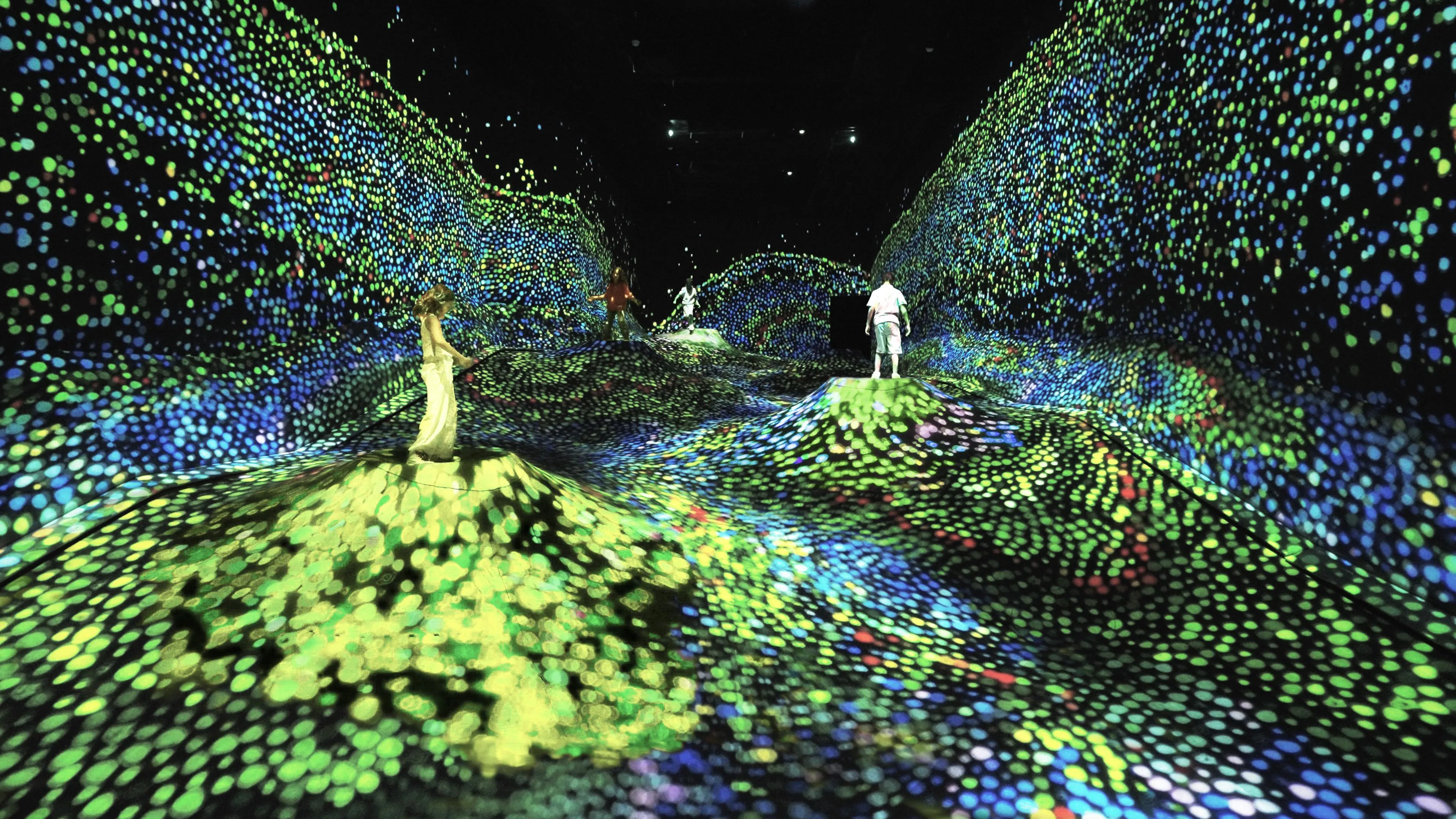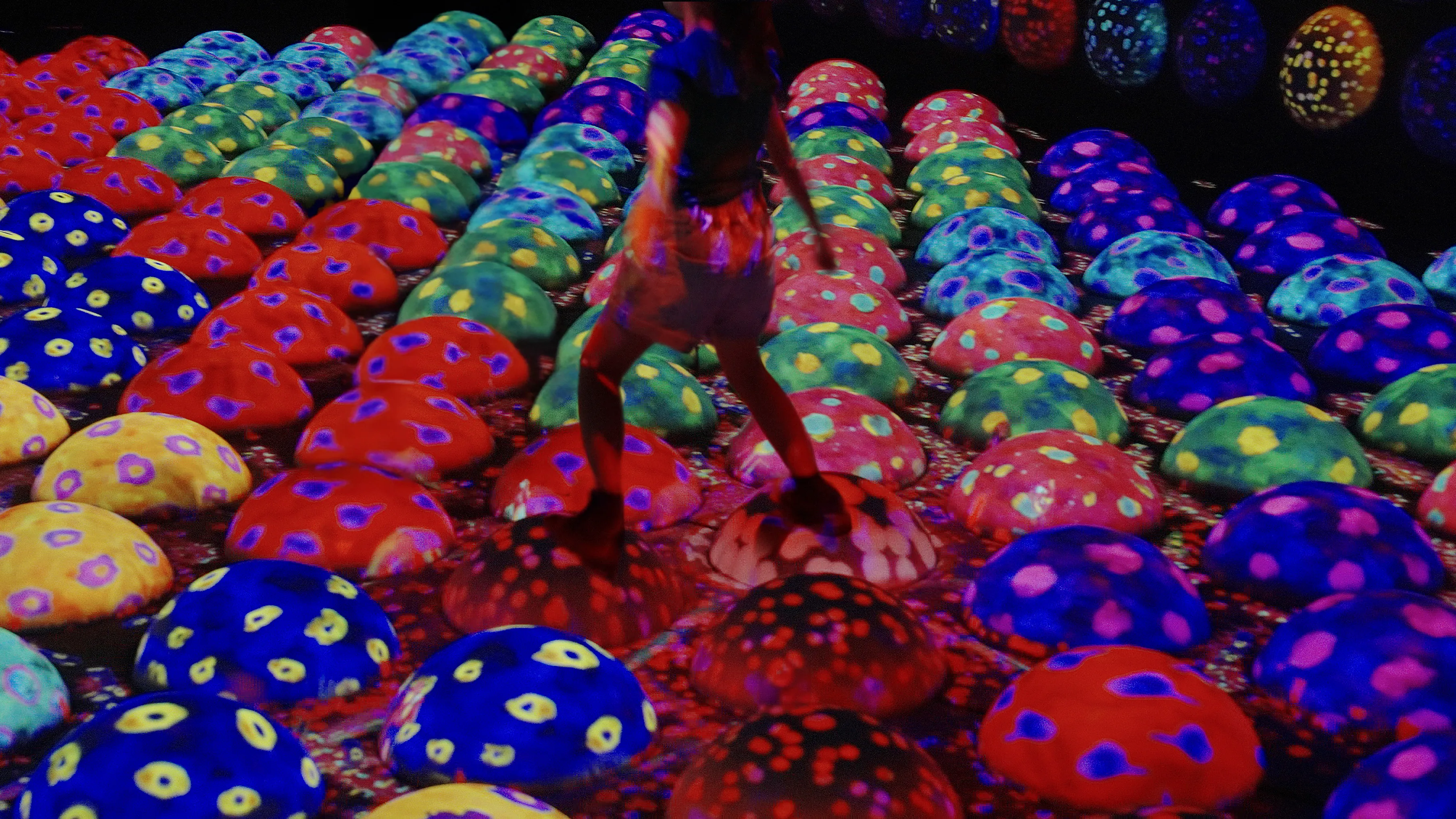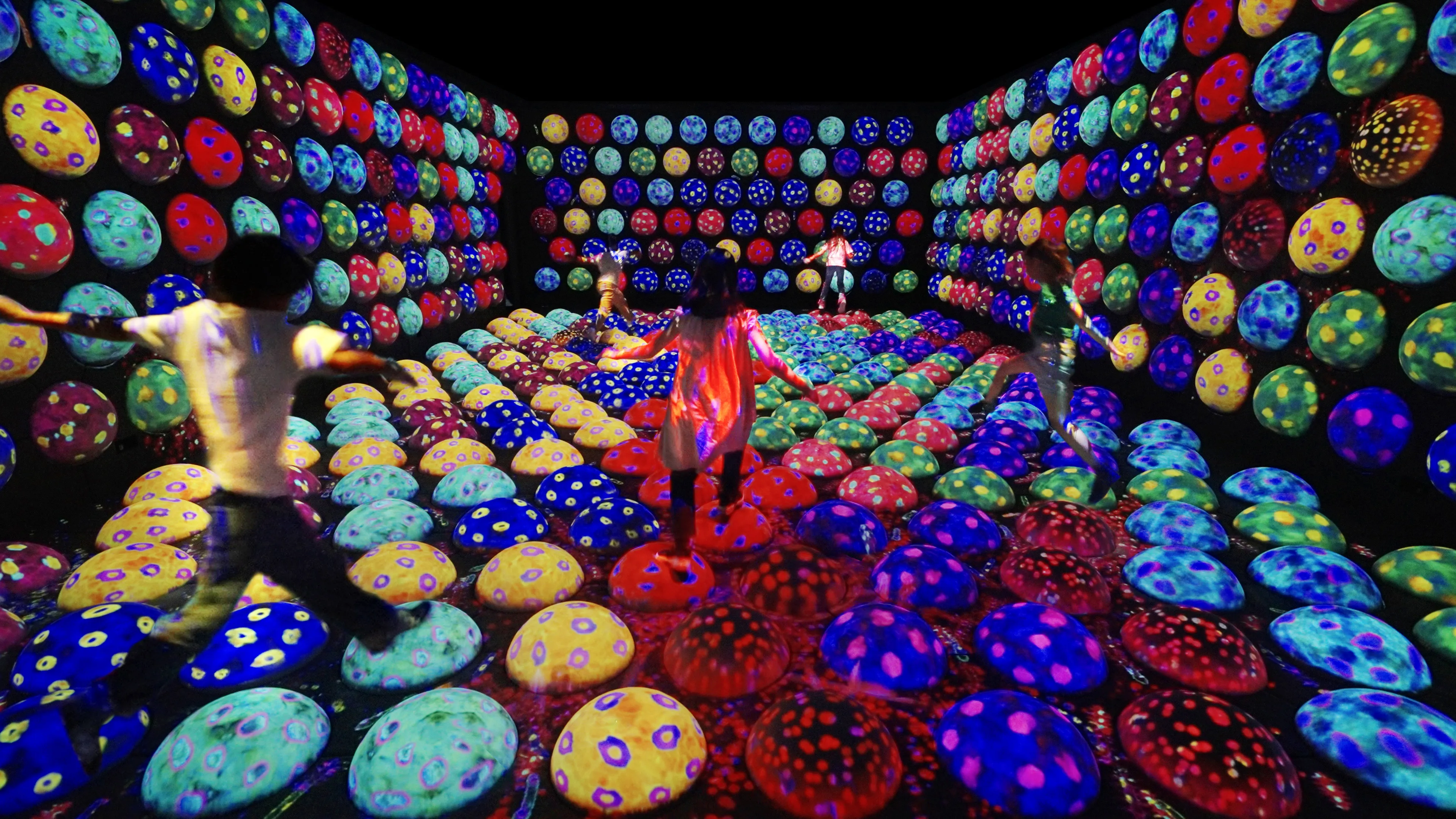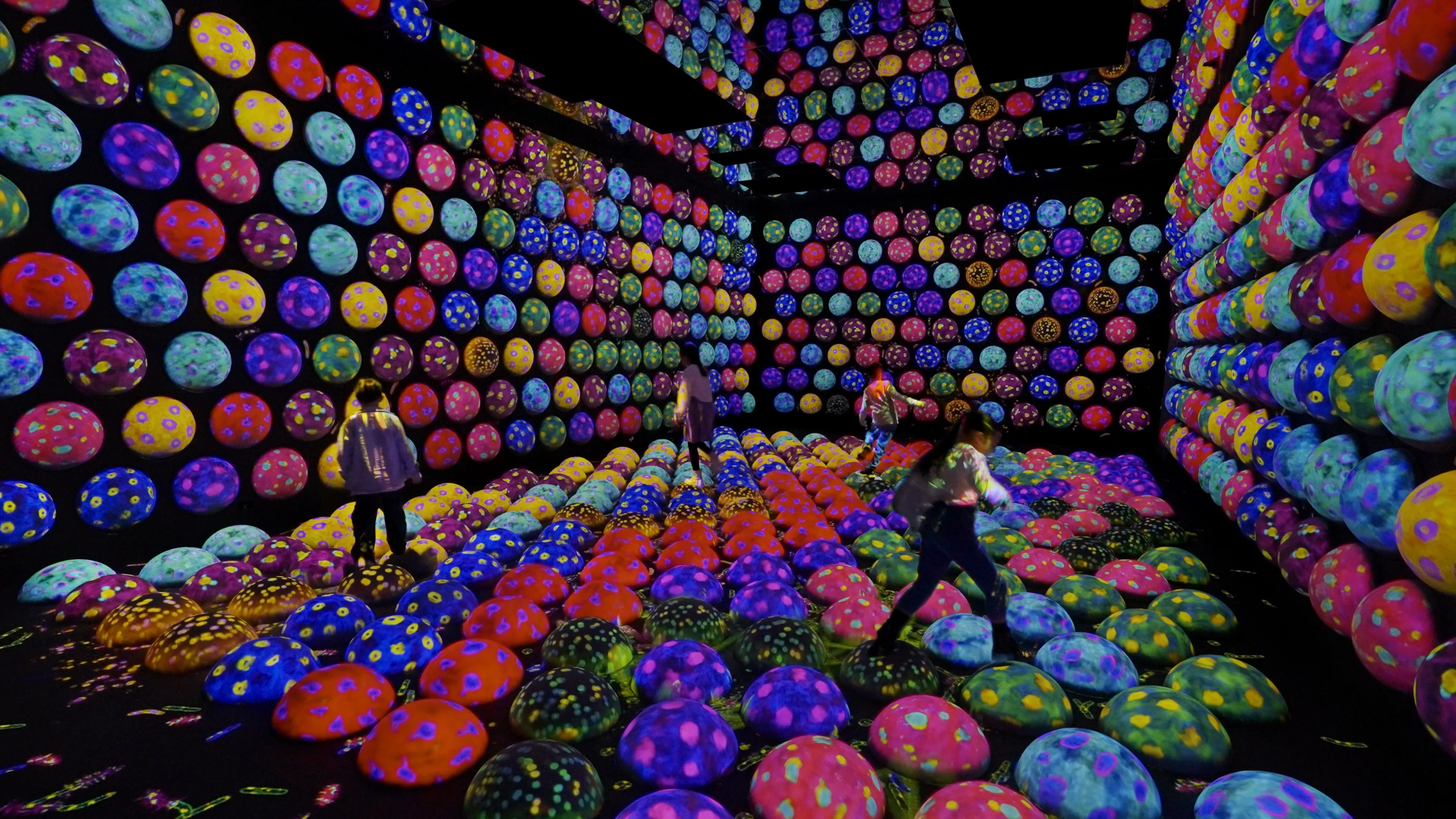 Rapidly Rotating Bouncing Sphere is a space made up of spheres that people can jump on. The spheres rotate at high speed, but when people approach them, they stop rotating and become easier to step on.