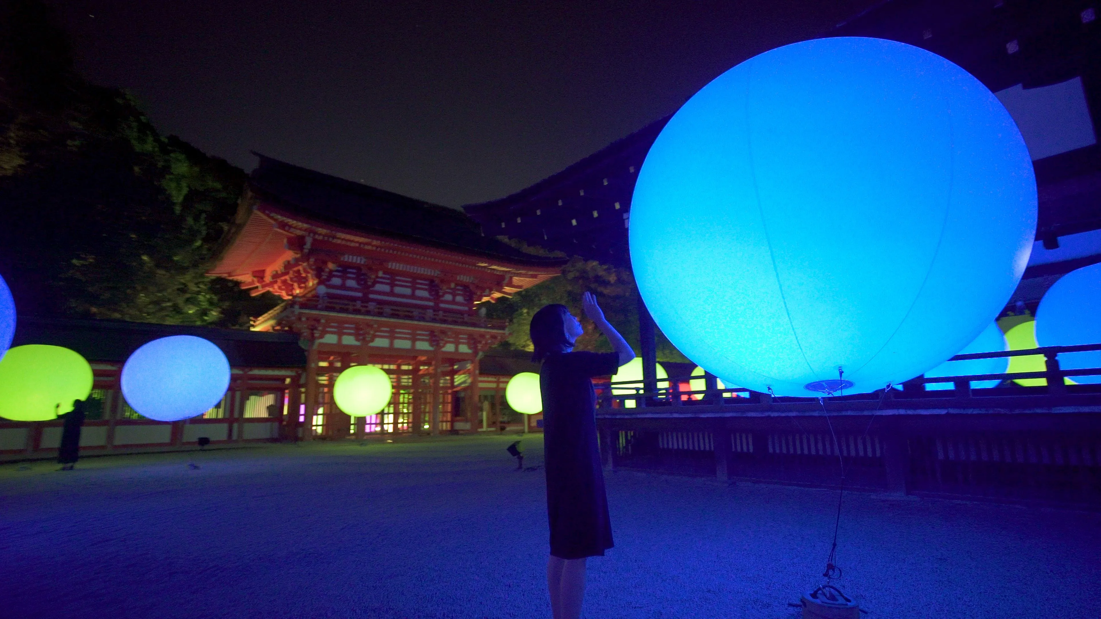 京都 下鴨神社でライトアップ「糺の森の光の祭」 初の試み、1万5000人来場下鴨神社で現在、「下鴨神社 糺の森の光の祭」が行なわれている。主催は同神社と「W media」(東京都渋谷区)。糺の森の中の参道沿いの木々がライトアップされる「呼応する木々」と楼門内に光る球体を設置する「呼応する球体」を展示する。 (Excerpt from the text)