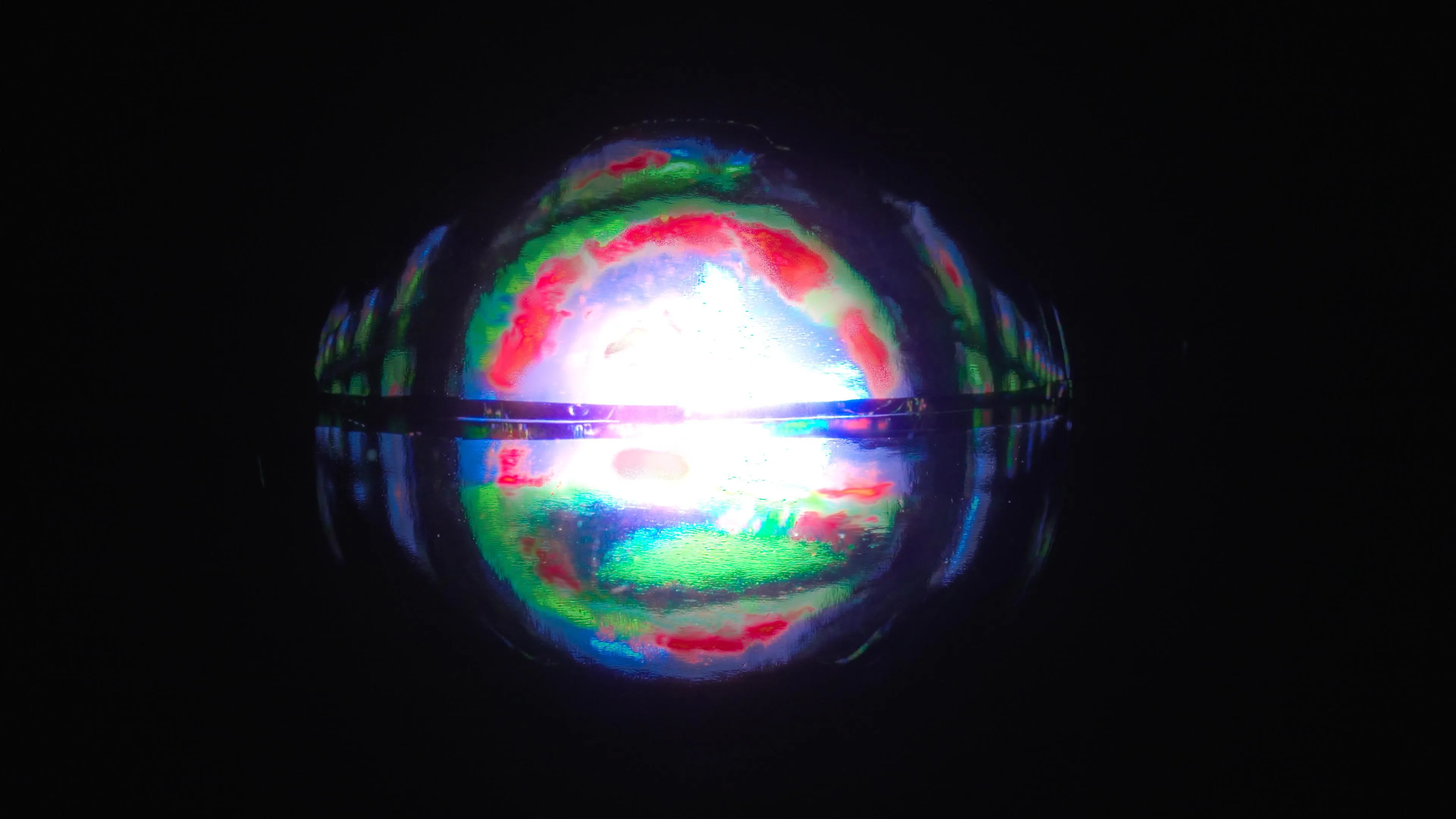 There is no material, such as glass, on the surface of the sphere of light; this sphere is made only of light. However, in the physical world, light does not solidify, and light does not become a spherical mass. In other words, this sphere of light does not exist.