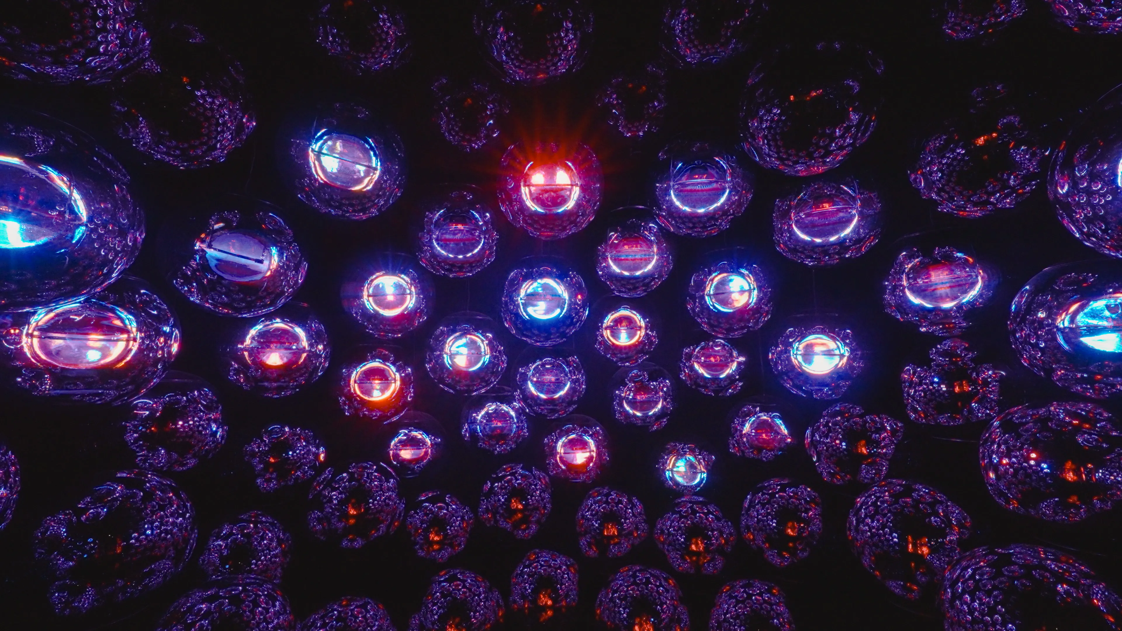 teamLab, 2024-, from the series Bubble Universe: Spherical Crystallized Light, Wobbling Light, and Environmental Light - One Stroke, 2023-, Interactive Installation, Endless, Sound: Hideaki Takahashi