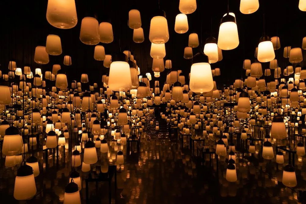 This is an artwork about the continuity of light, which is generated as people move around freely and interact with the lamps.