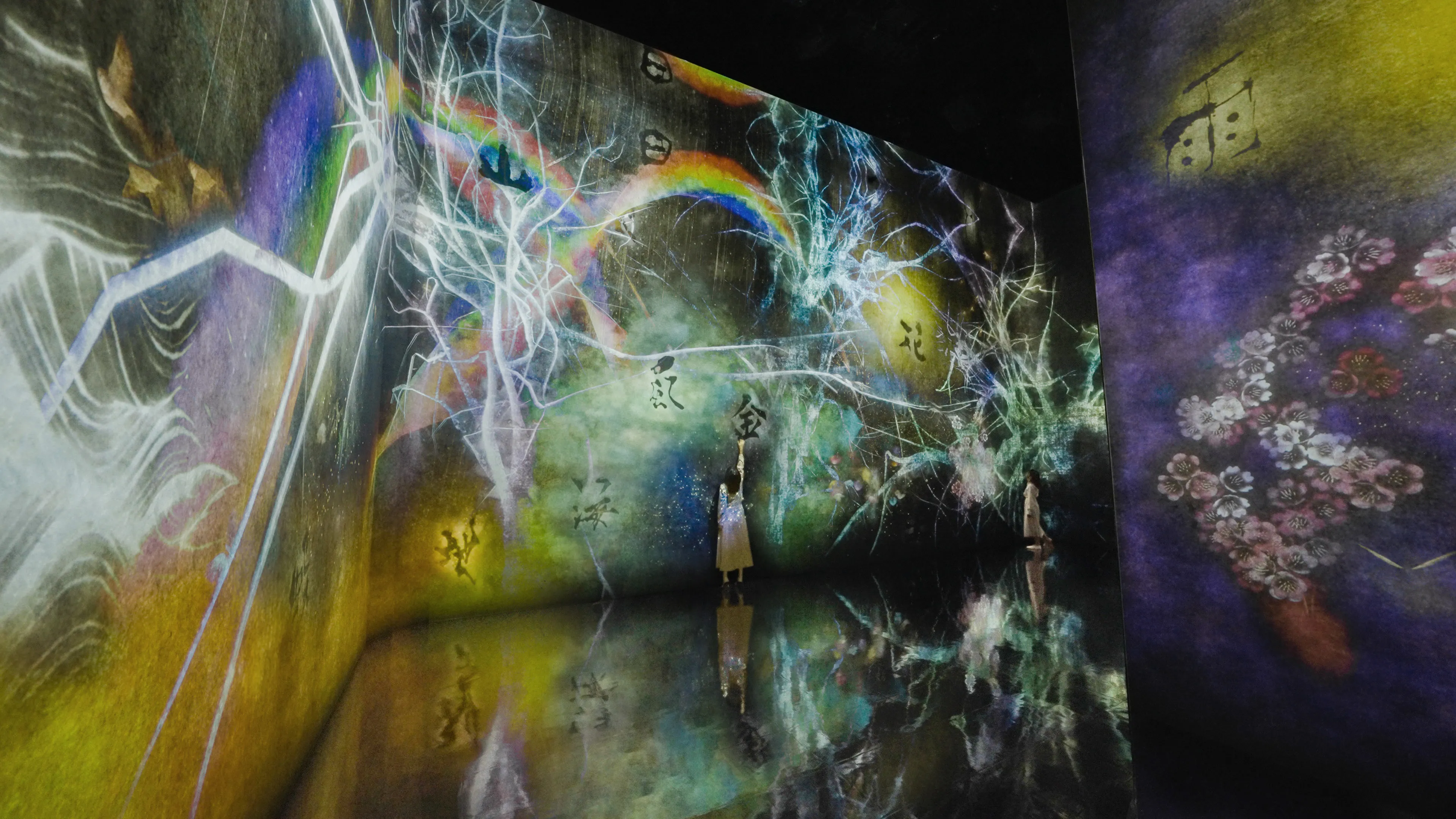 Sisyu + teamLab, 2019, Interactive Digital Installation, Endless, Calligraphy: Sisyu, Sound: Hideaki Takahashi