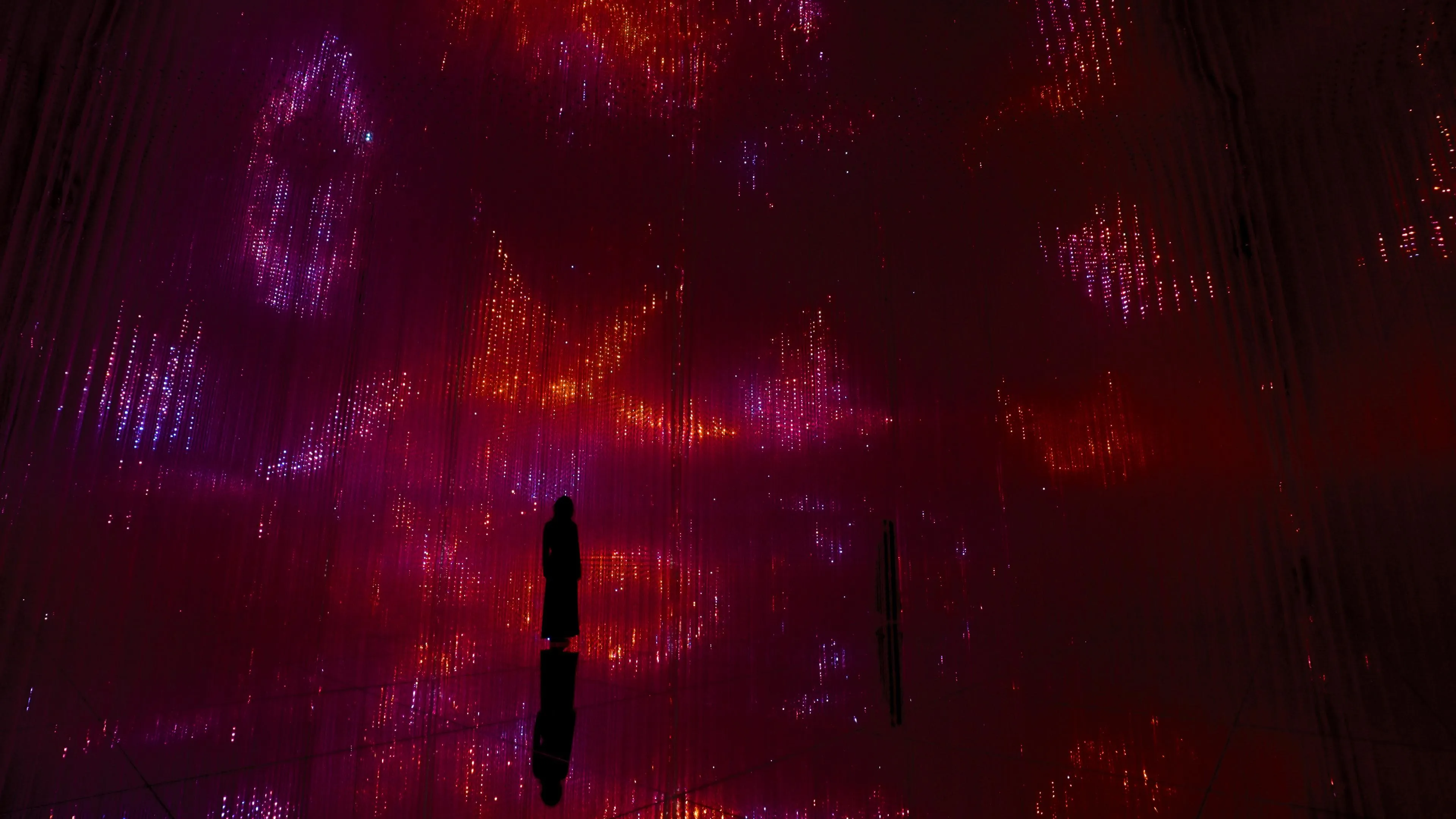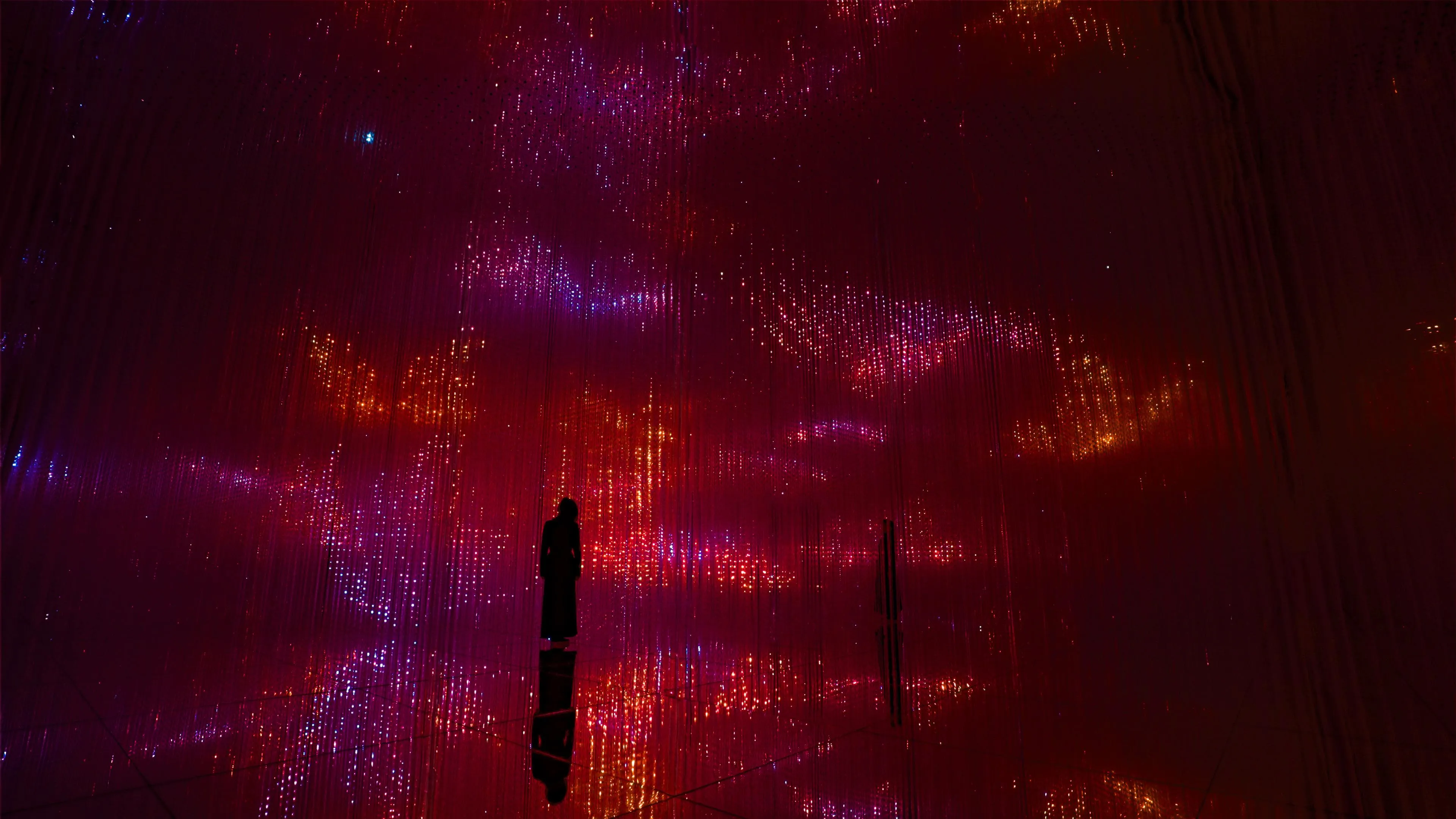 This artwork begins when a Flutter of Butterflies Beyond Borders, emerges from people in the Butterfly House space, passes through the passageway and enters the entrance of Infinite Crystal World. When Flutter of Butterflies Beyond Borders leaves the space the artwork ends.