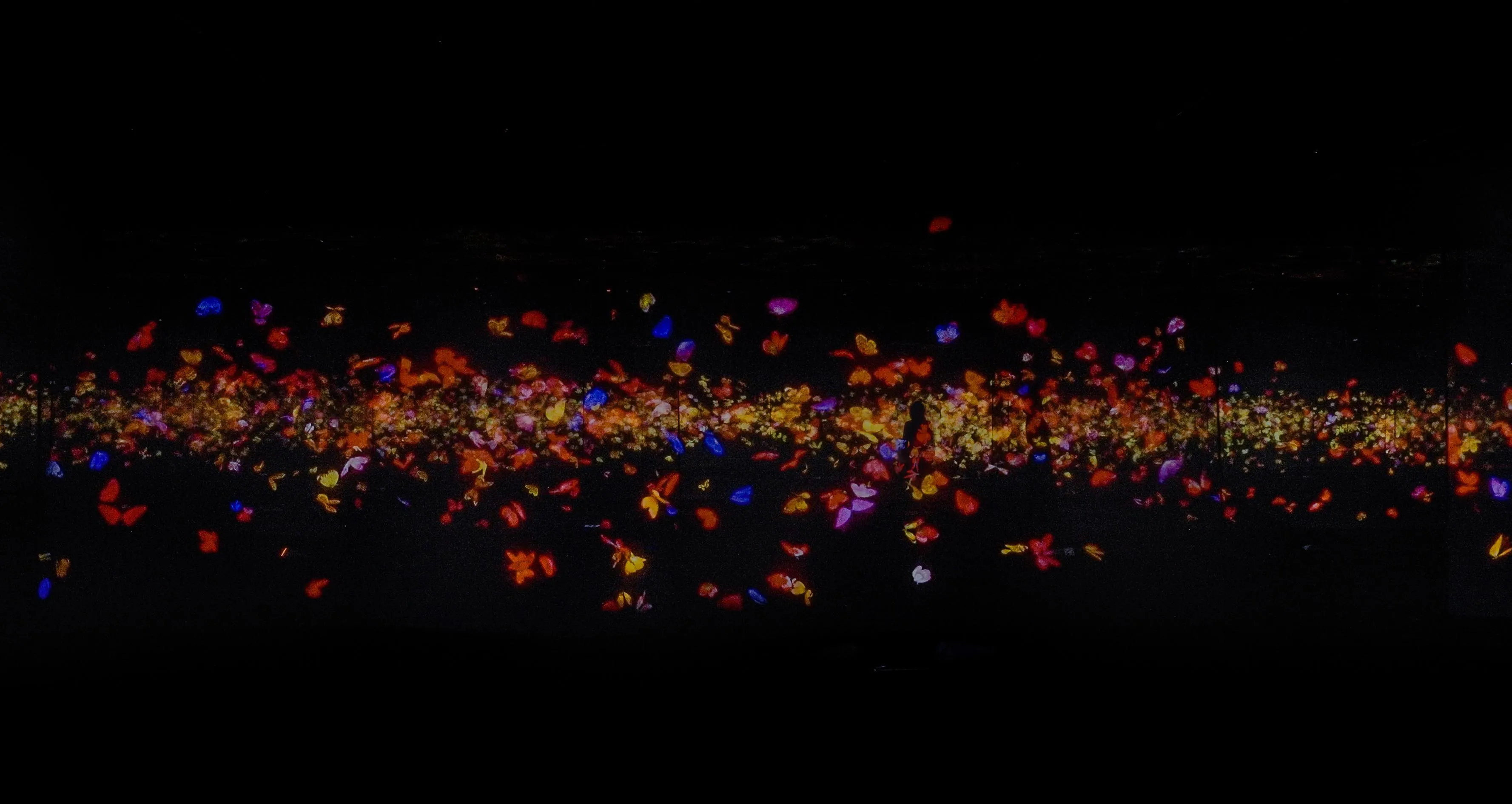 To the viewer, the other people who overlap with the flutter of butterflies exist in the world of the artwork, and when the viewer is seen by others as overlapping with the flutter of butterflies, they also exist in the space of the artwork.