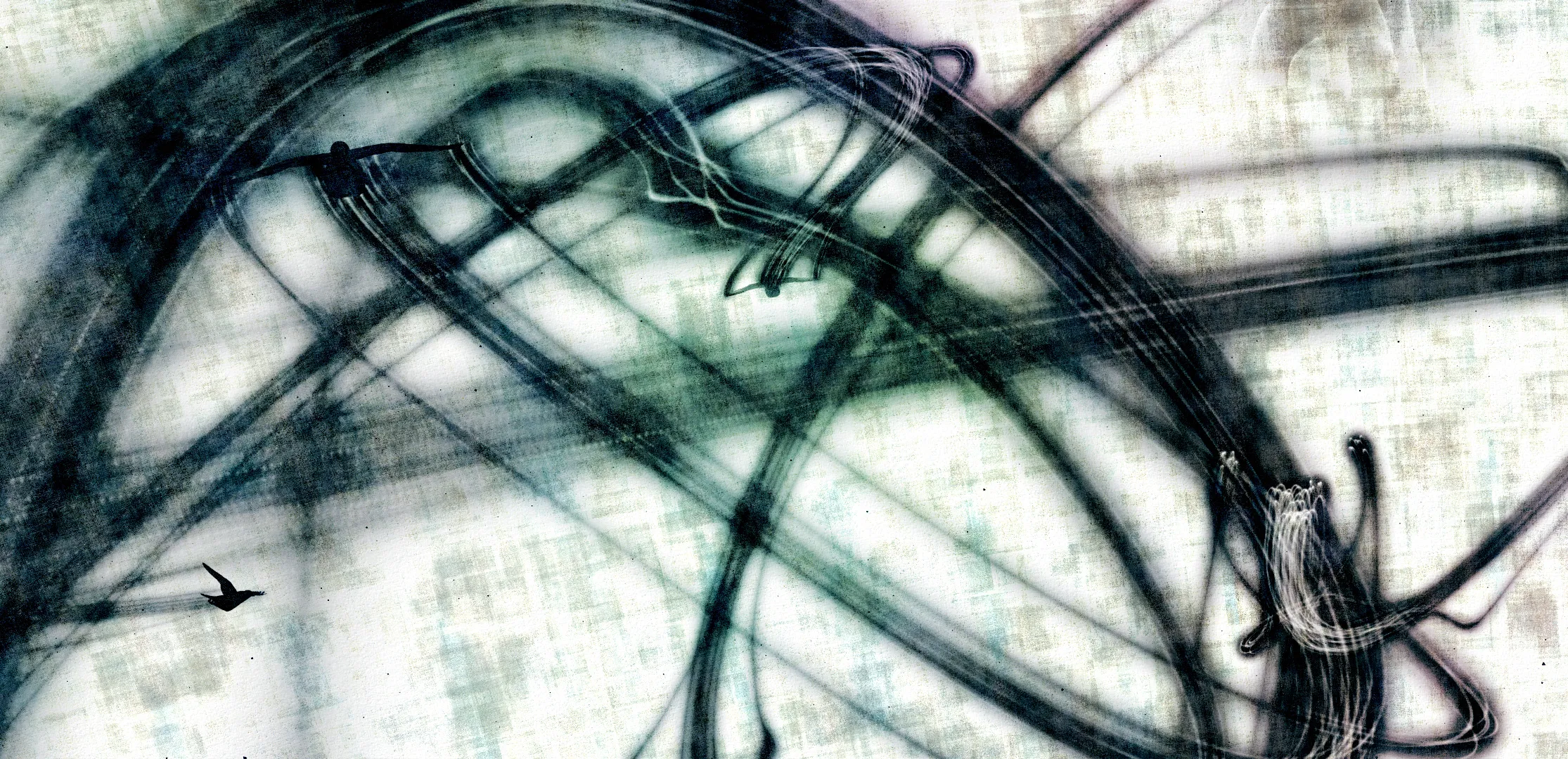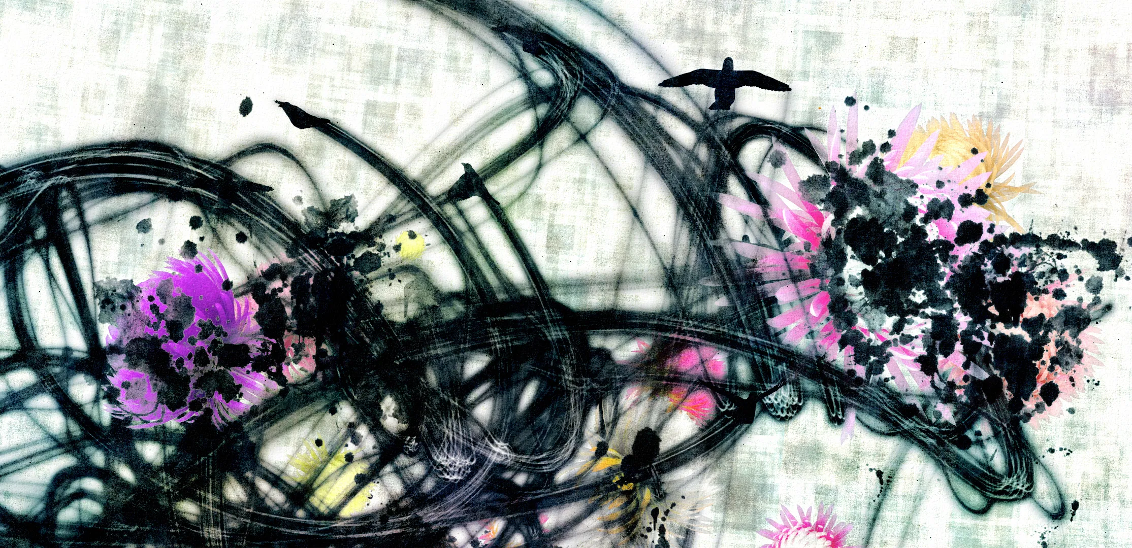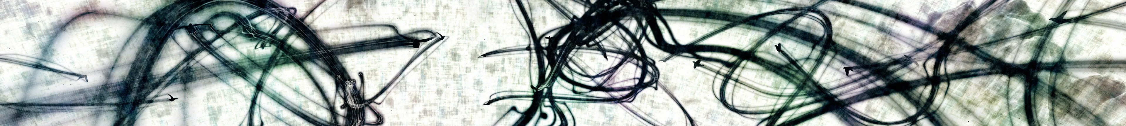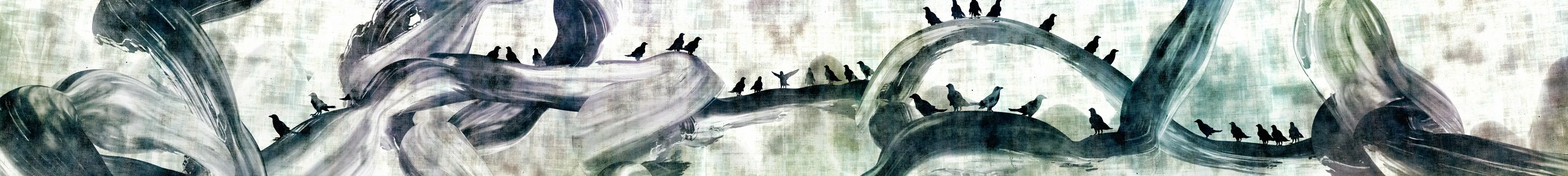 用墨绘制的八咫鸟在空间中飞翔,它的轨迹形成了墨迹,绘制出了"空书"。八咫鸟追逐着飞在前方的八咫鸟。被追上的八咫鸟会变成花朵凋零,追上它的八咫鸟随之变成被追逐的那一方。