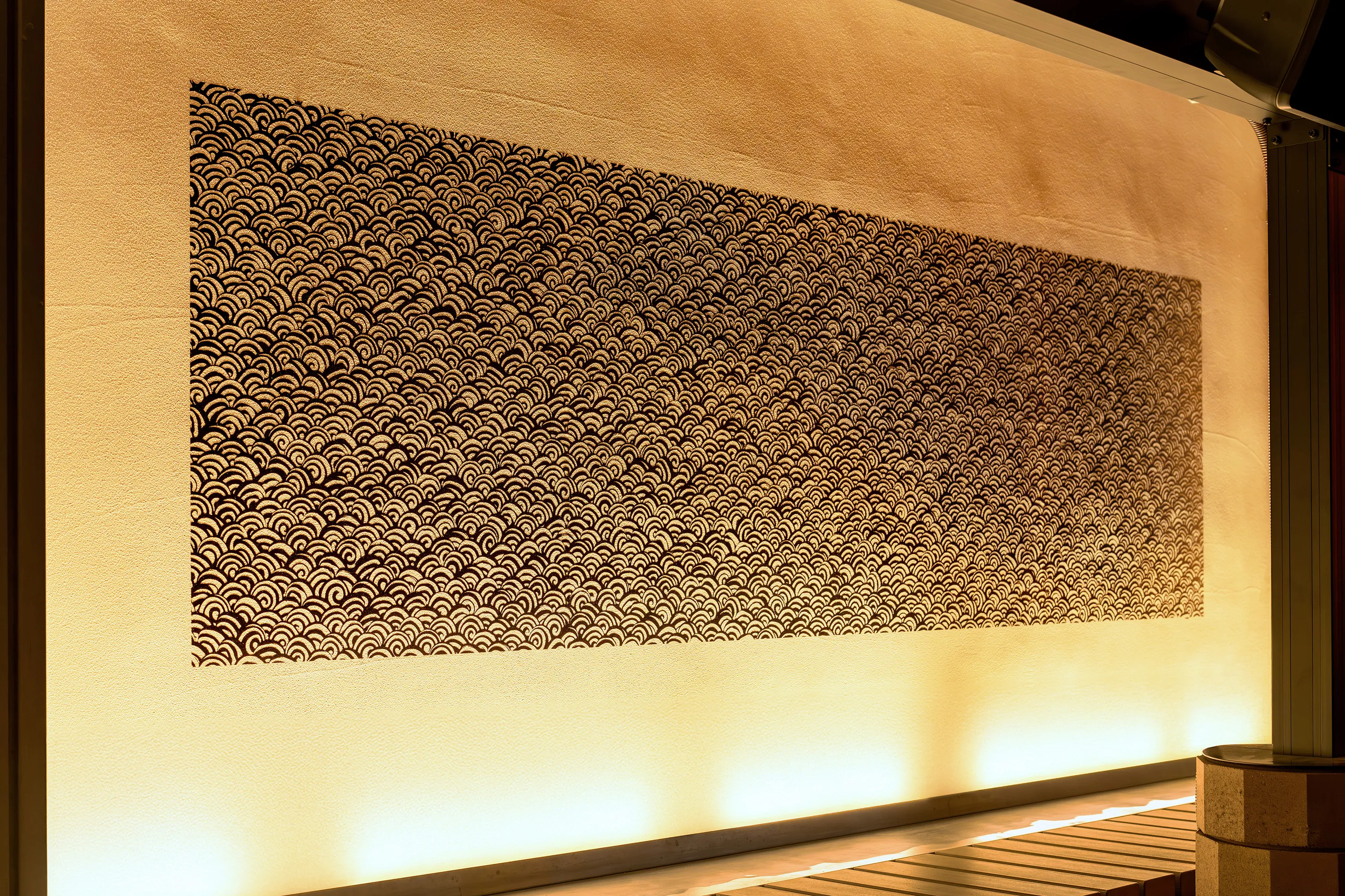青海波纹样是日本传统的,包含着“无限延伸的平稳波浪的图案,表达了对于广阔的海洋所带来的恩惠的感谢,以及永远持续和平生活的向往”意义的图案。青海波纹样始于“波斯萨珊朝(226-651年)”,通过丝绸之路传到中国,在飞鸟时代(593-710年)传播到了日本。