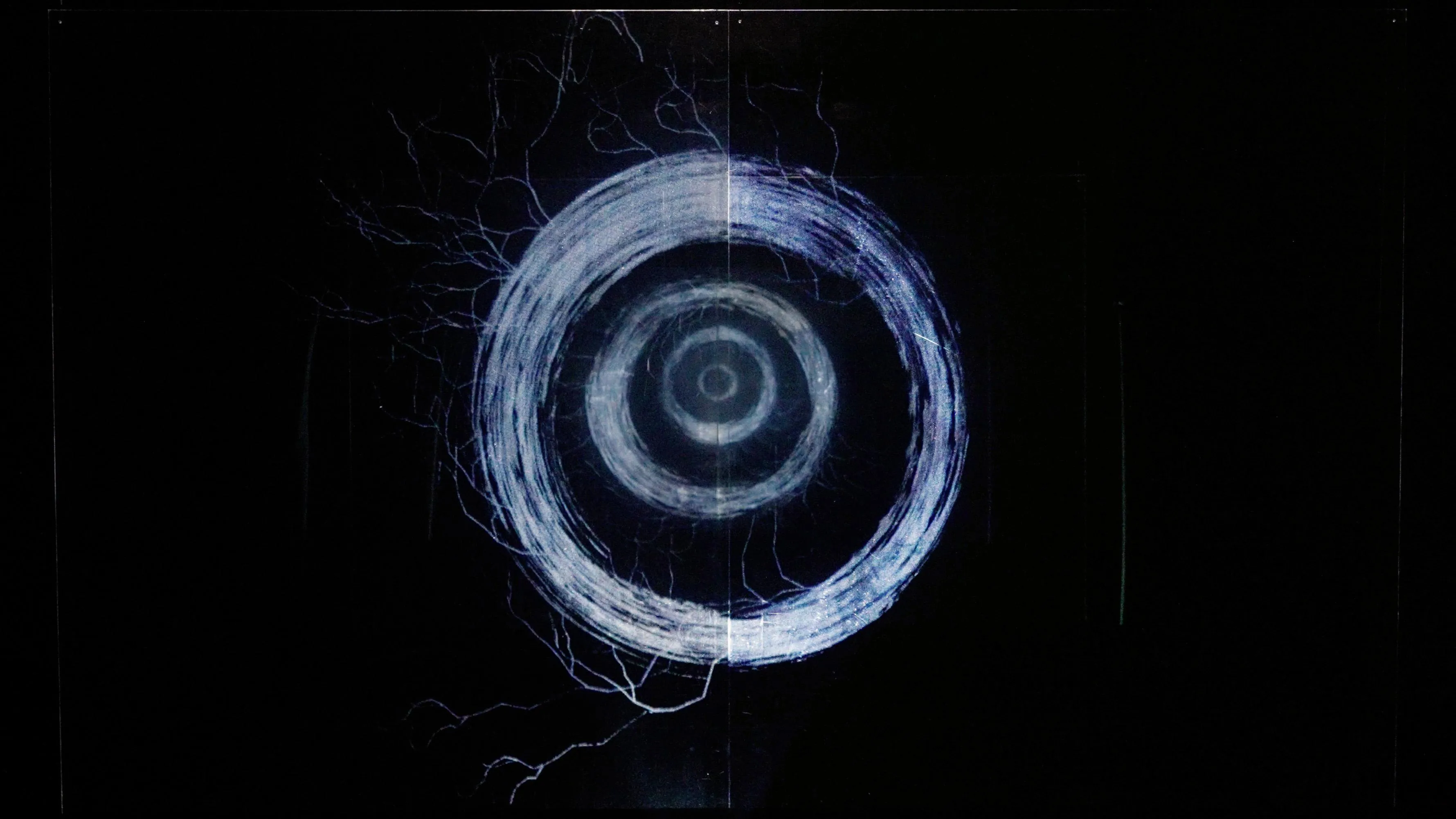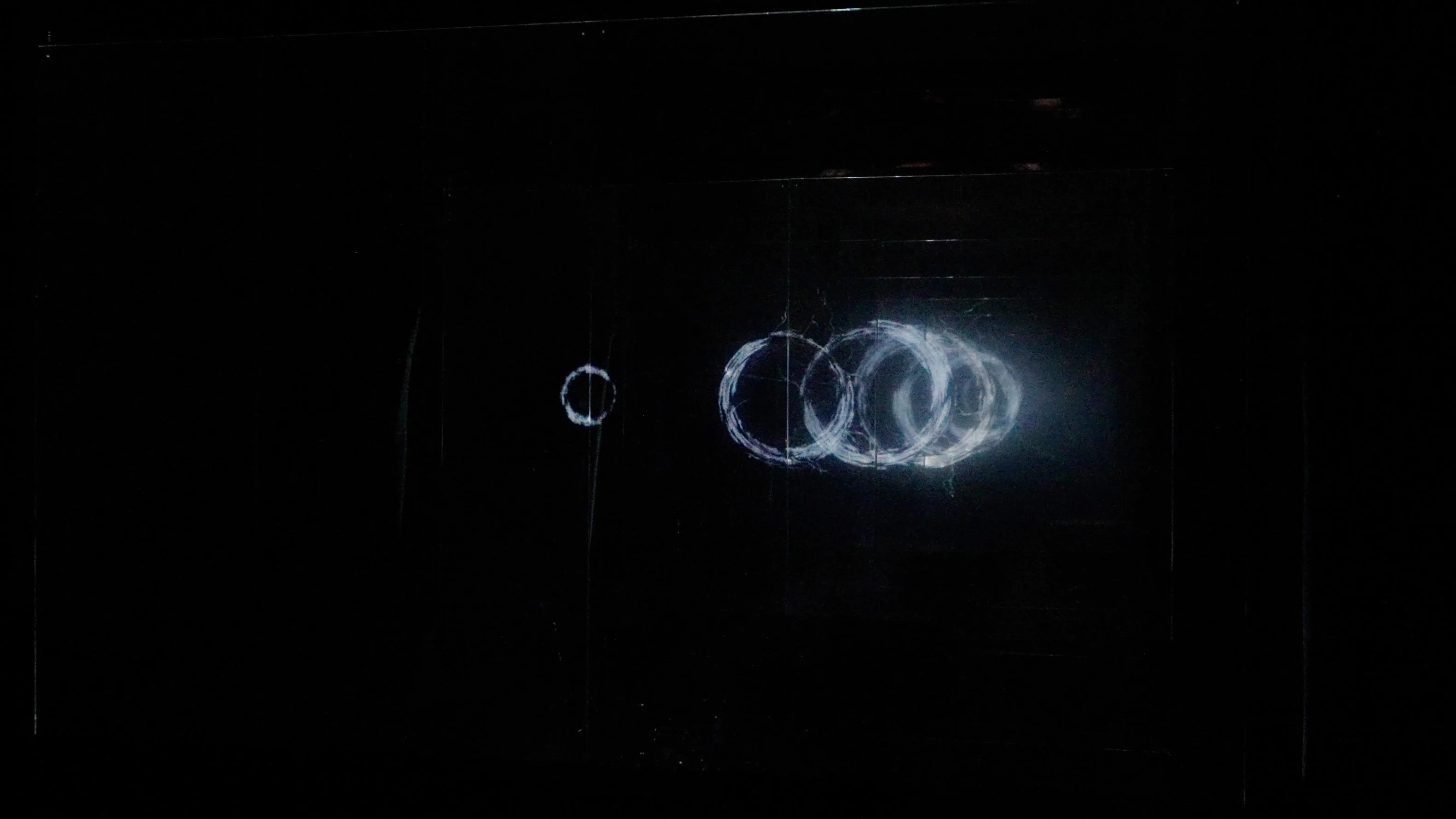 Enso, a Zen practice of drawing a circle with a single brush stroke, is continuously drawn in the space.