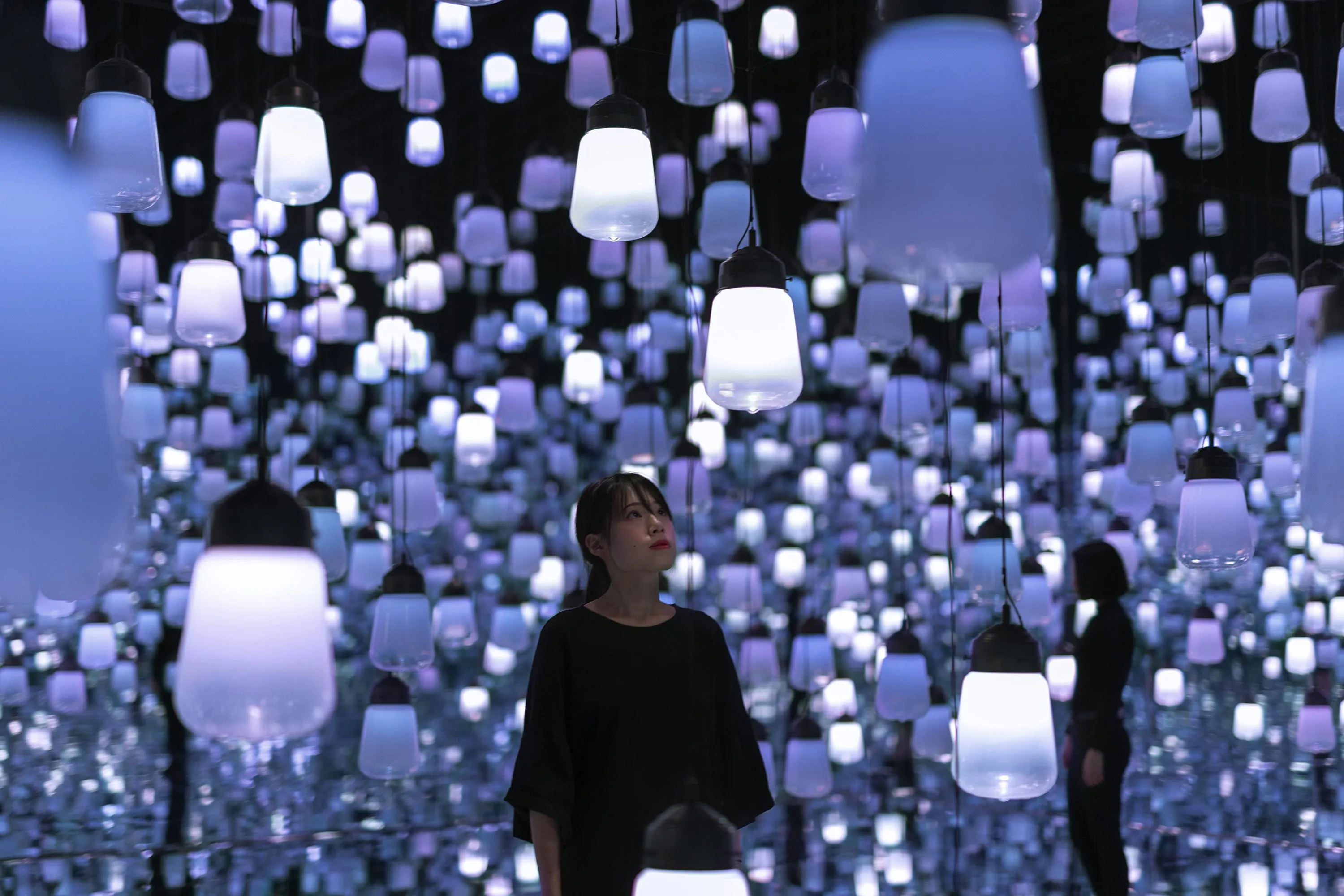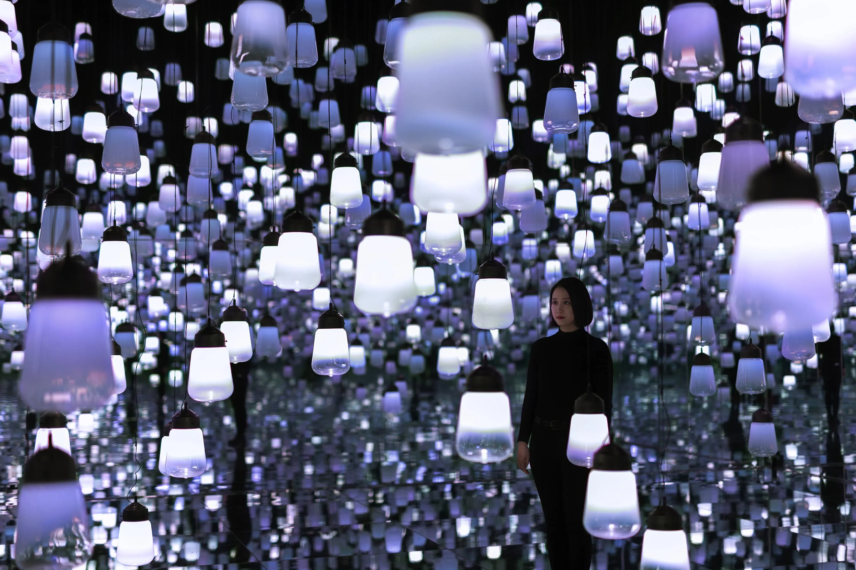 This is an artwork about the continuity of light, which is generated as people move around freely and interact with the lamps.