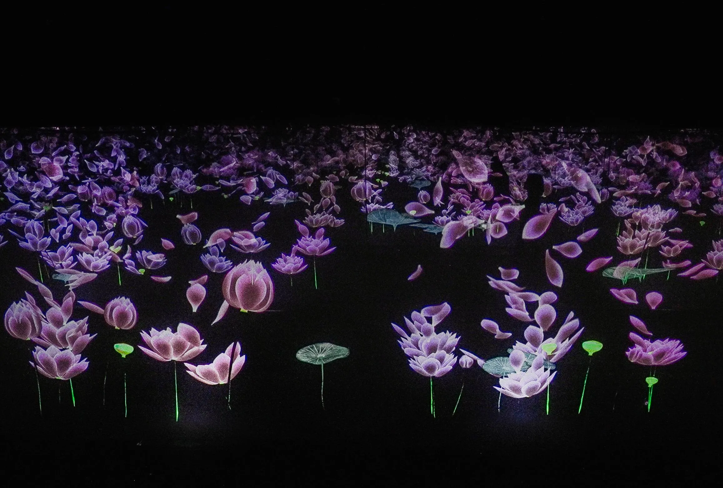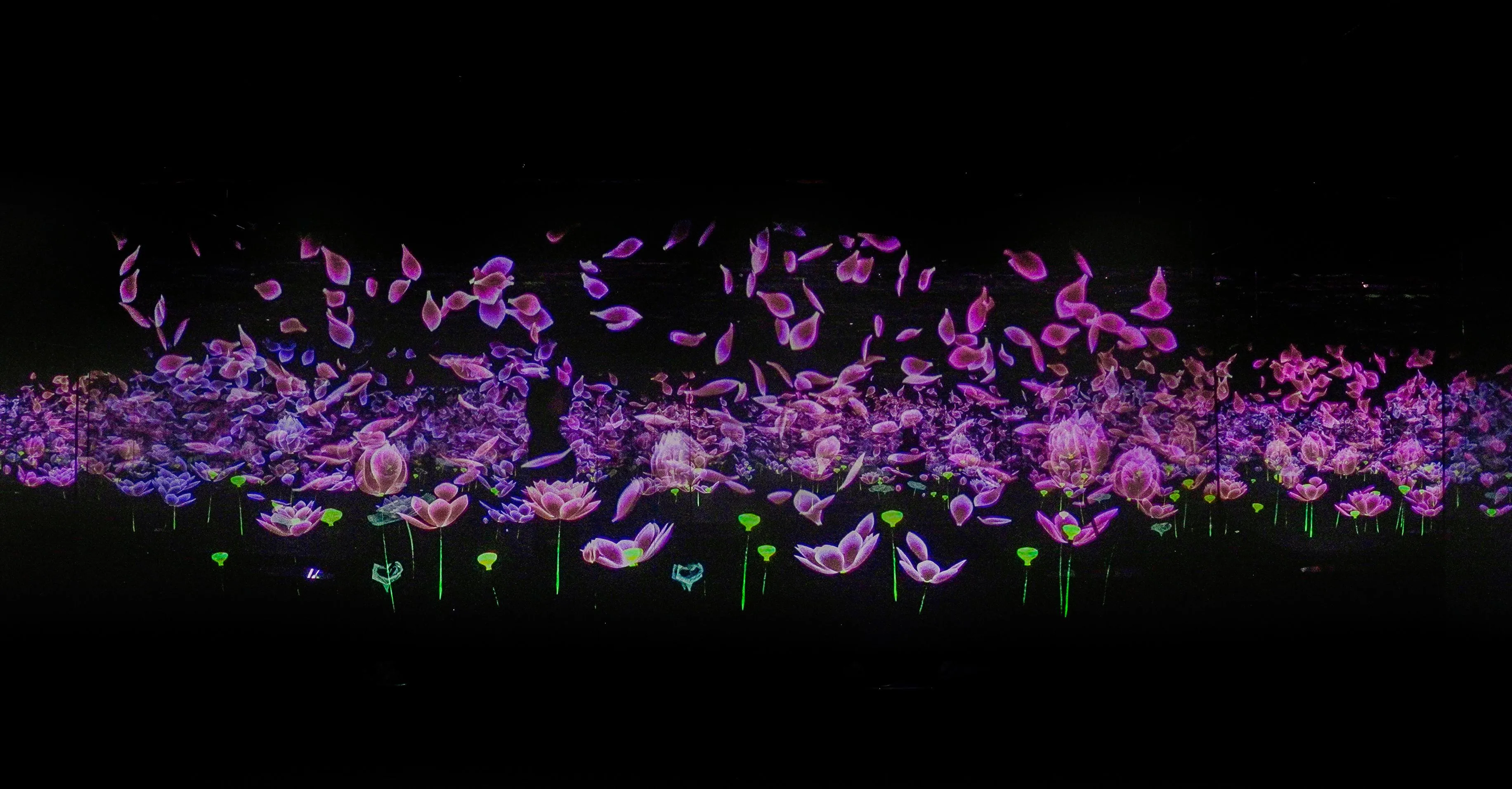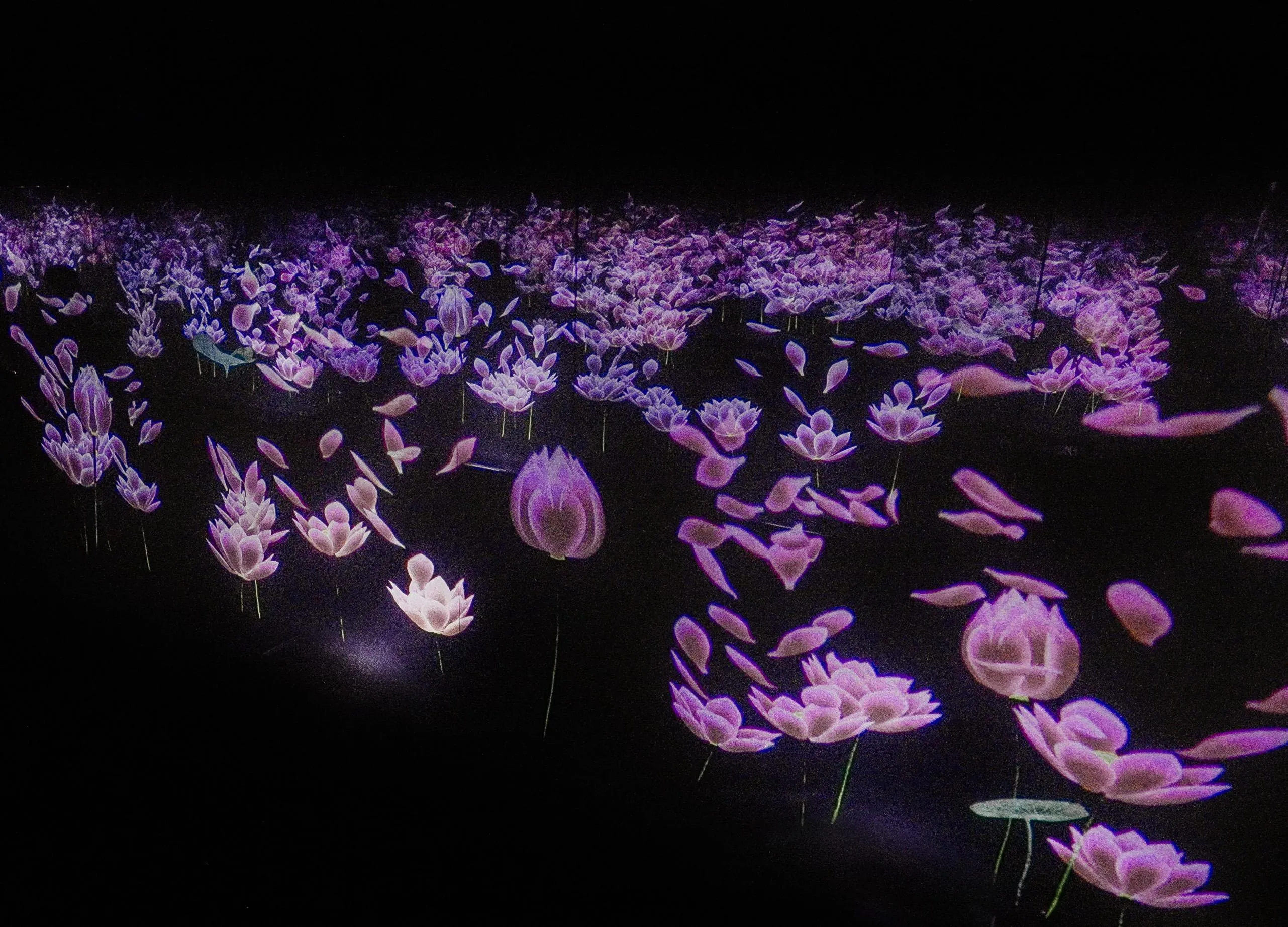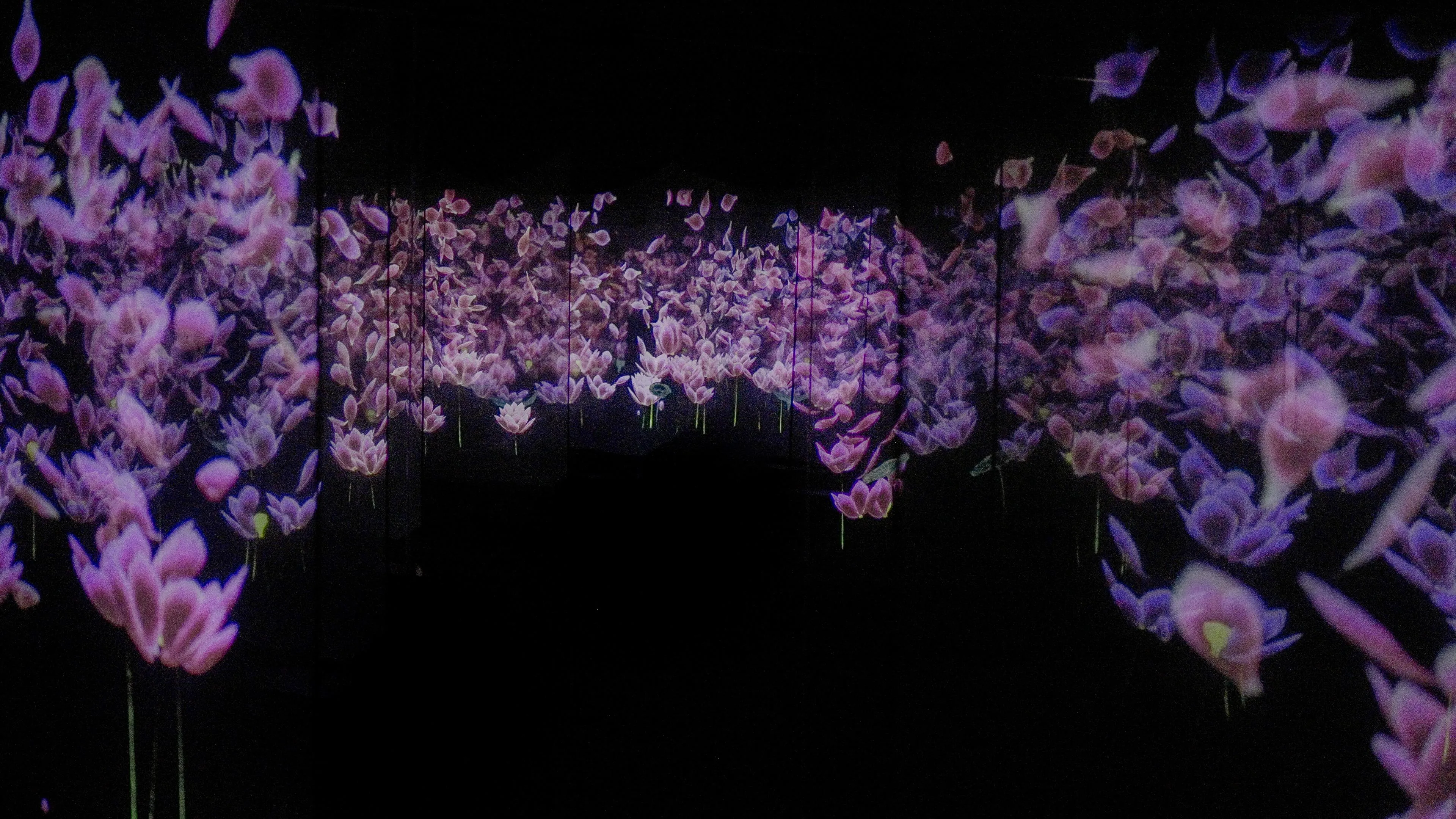 To the viewer, the other people covered in the lotus flowers exist in the world of the artwork, and when the viewer is seen by others covered in the lotus flowers, they also exist in the space of the artwork.