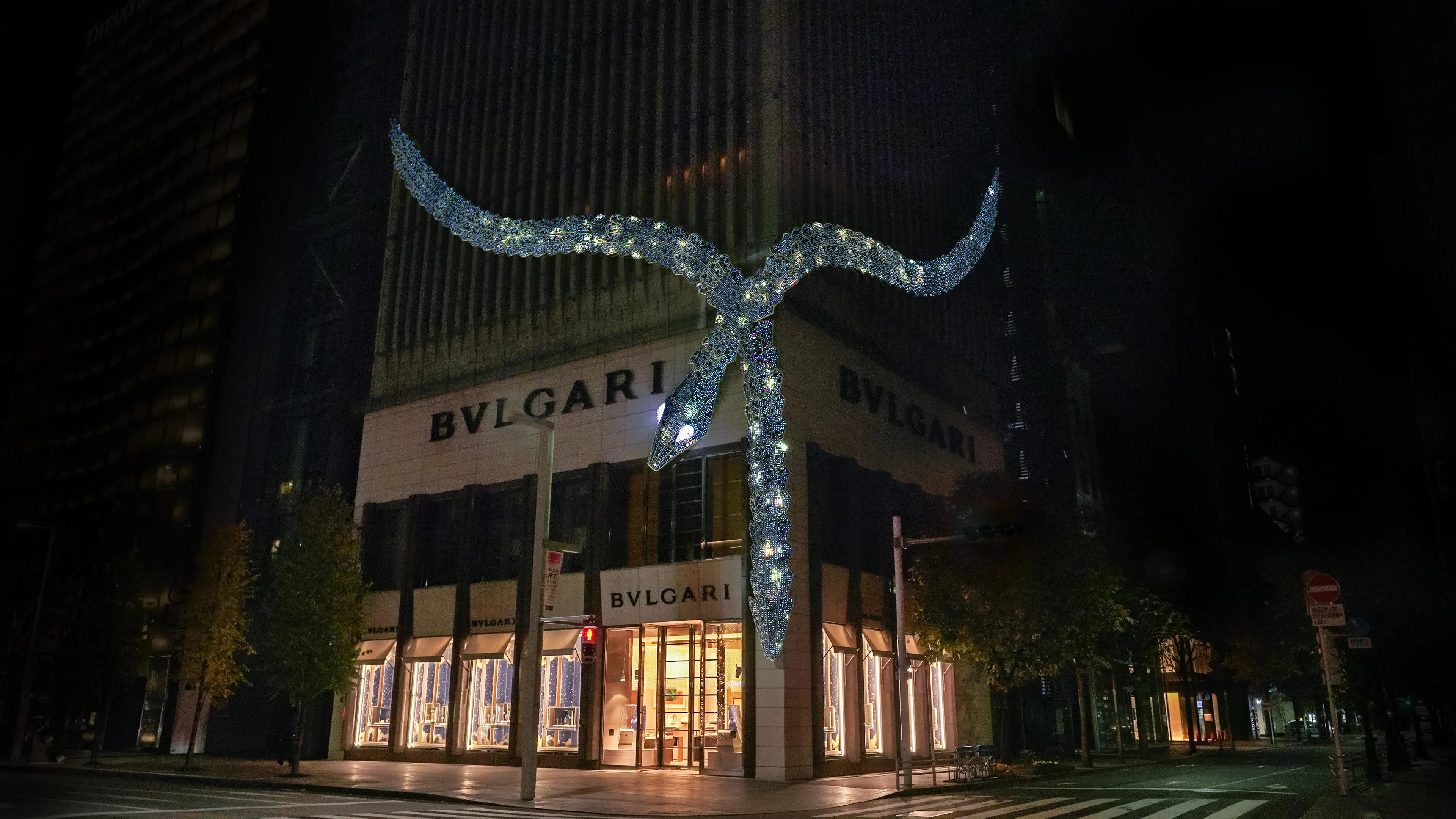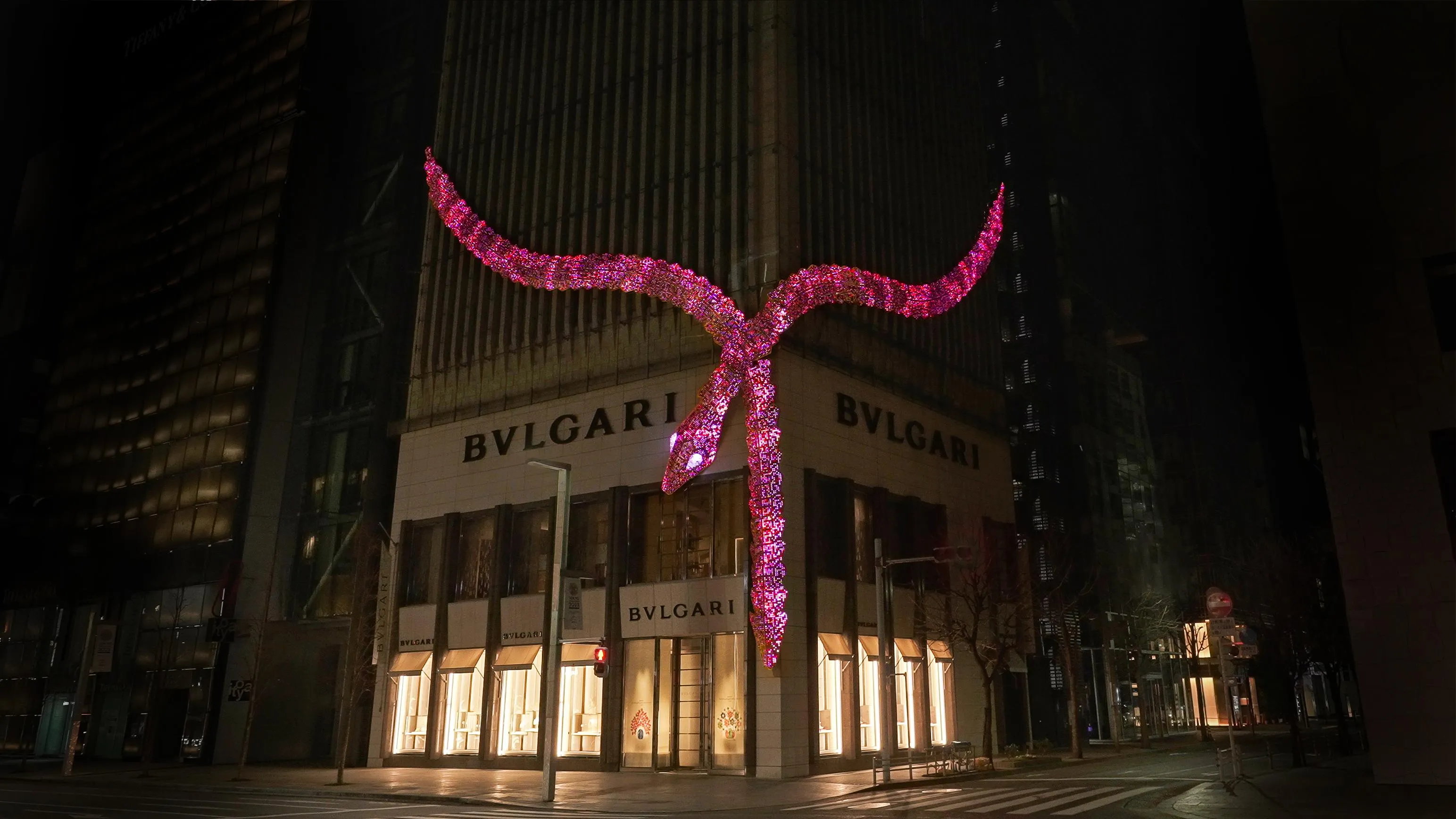 “Serpenti” is the everlasting icon of Bvlgari, it forms the motif of the brilliantly shining snake that adorns Ginza Tower.