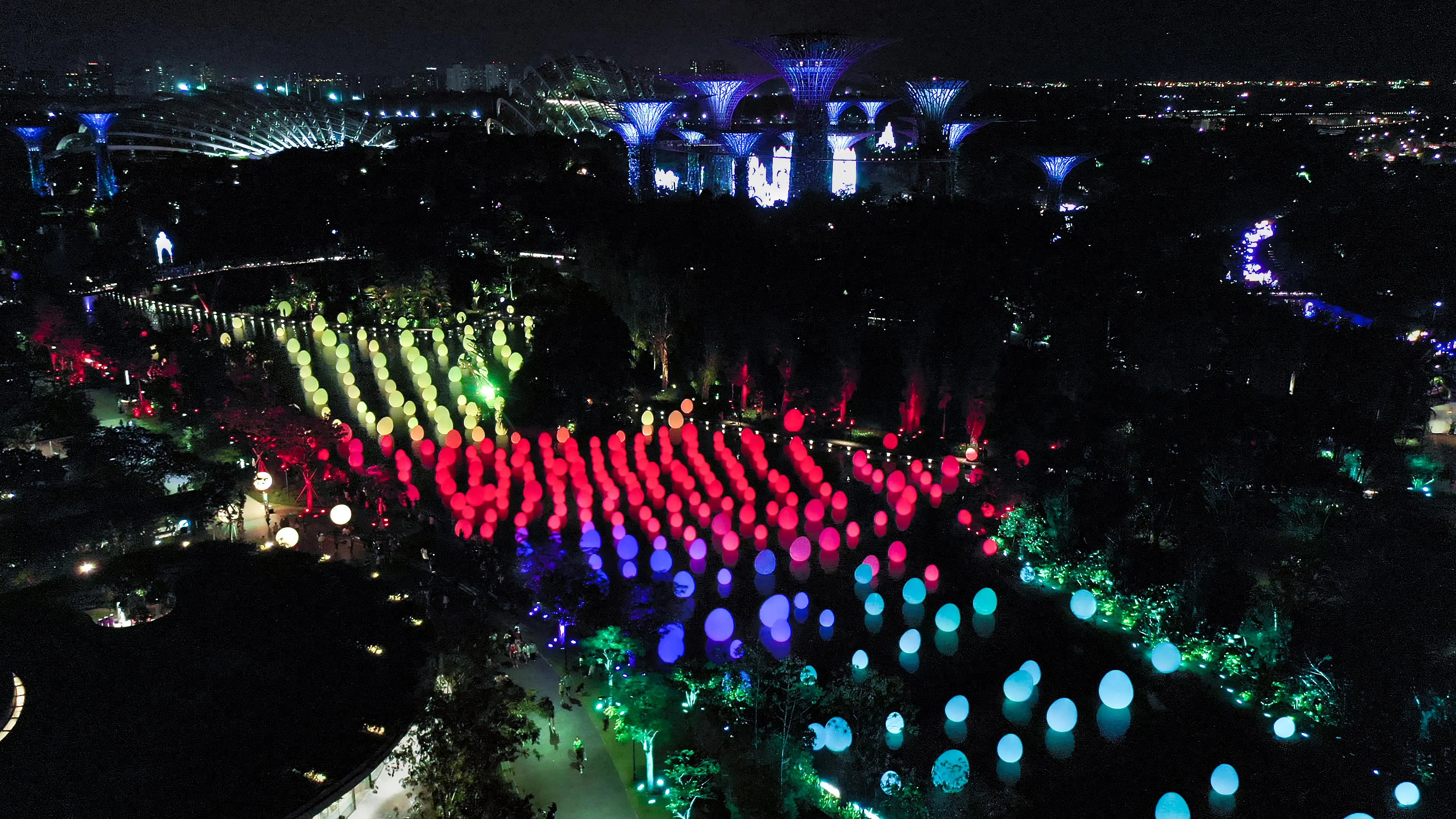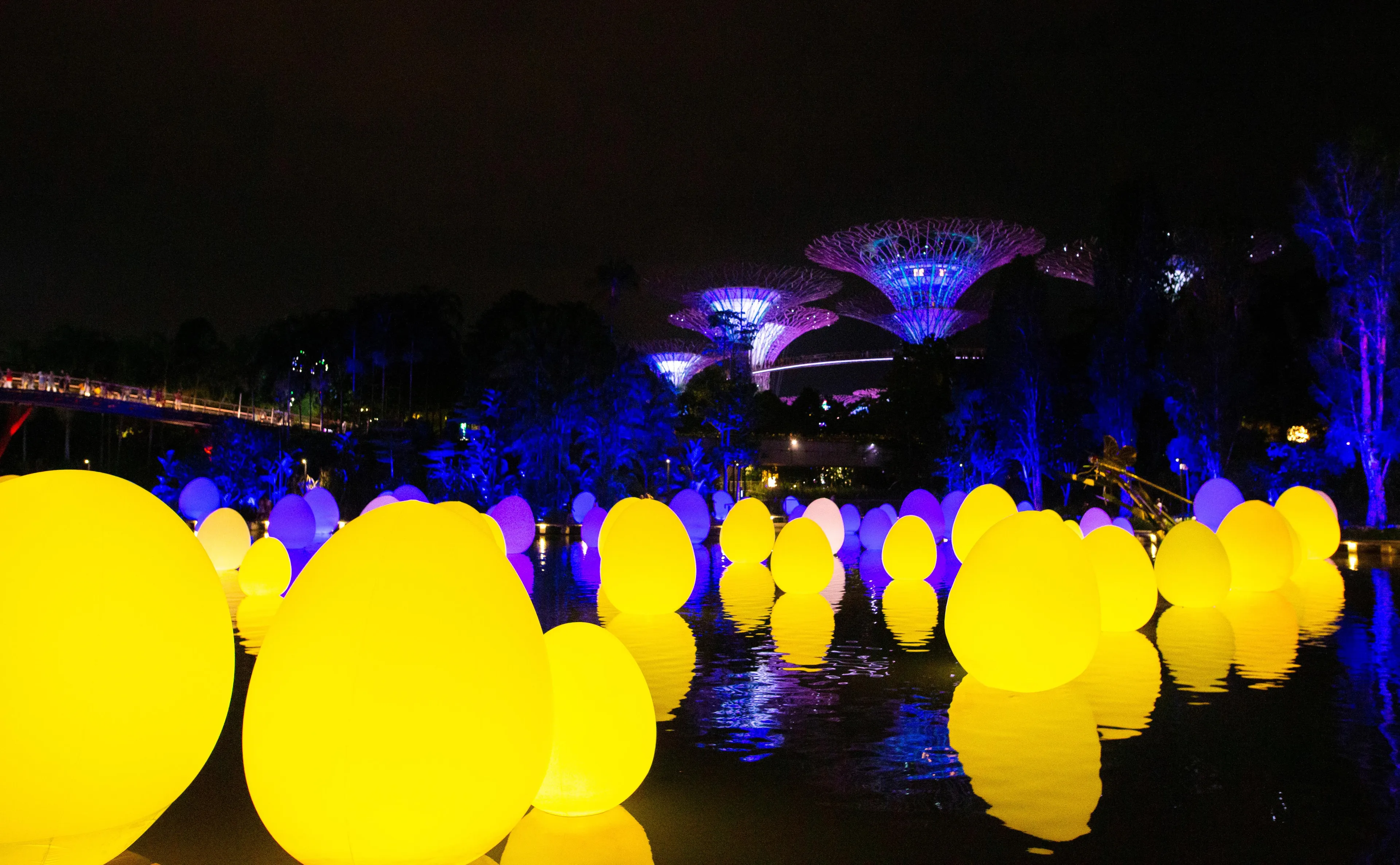光のovoidと木々の光は、それぞれ自立しており、ゆっくりと呼吸しているかのように明滅している。