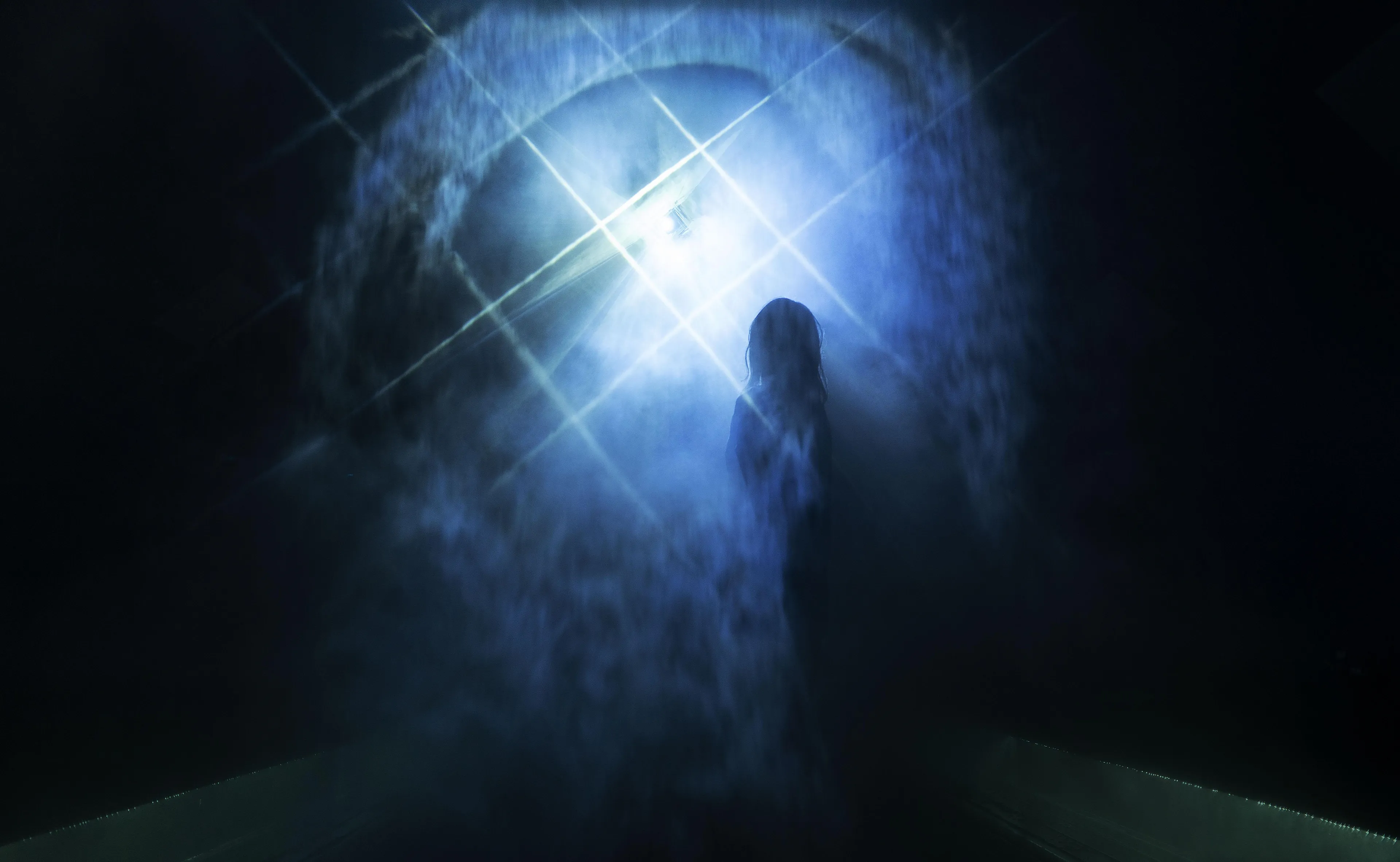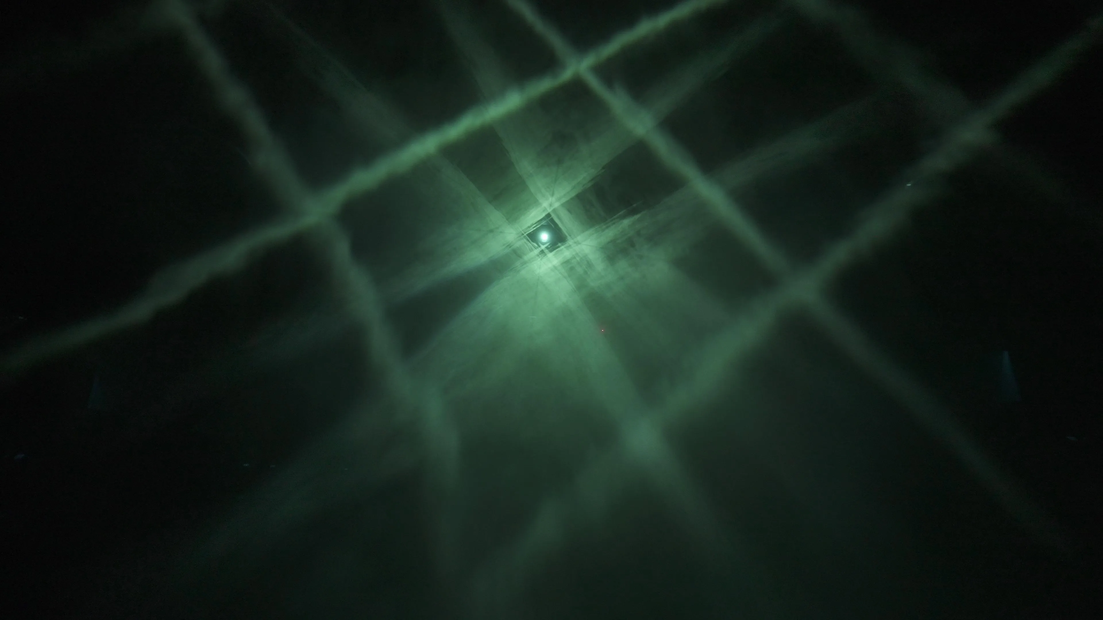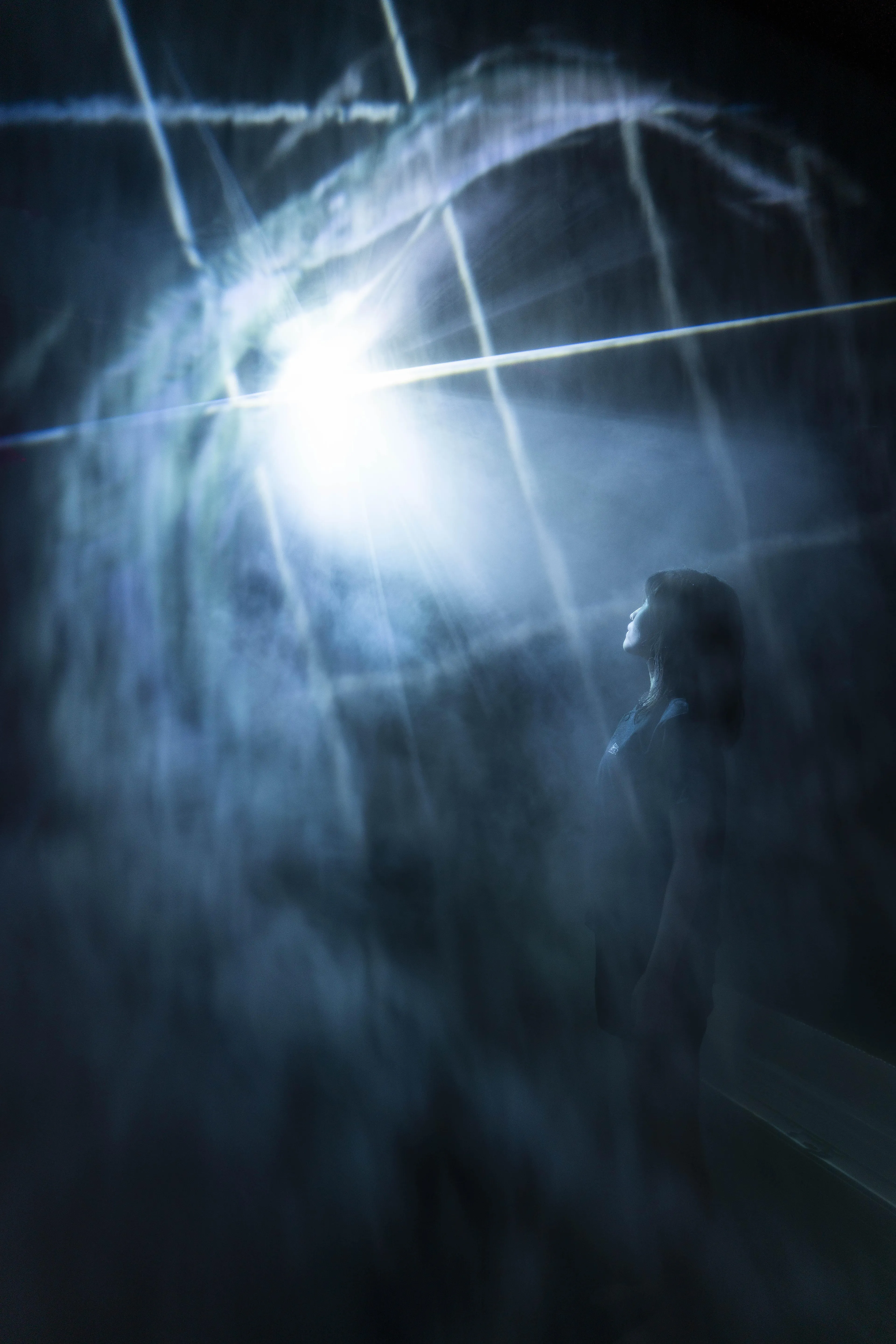 空間には、円が描かれたり、群蝶が飛んだりする。蝶に触ると、蝶は死んで落ちていく。その円や群蝶の中に入り込むと、中には全く別の世界が広がる。