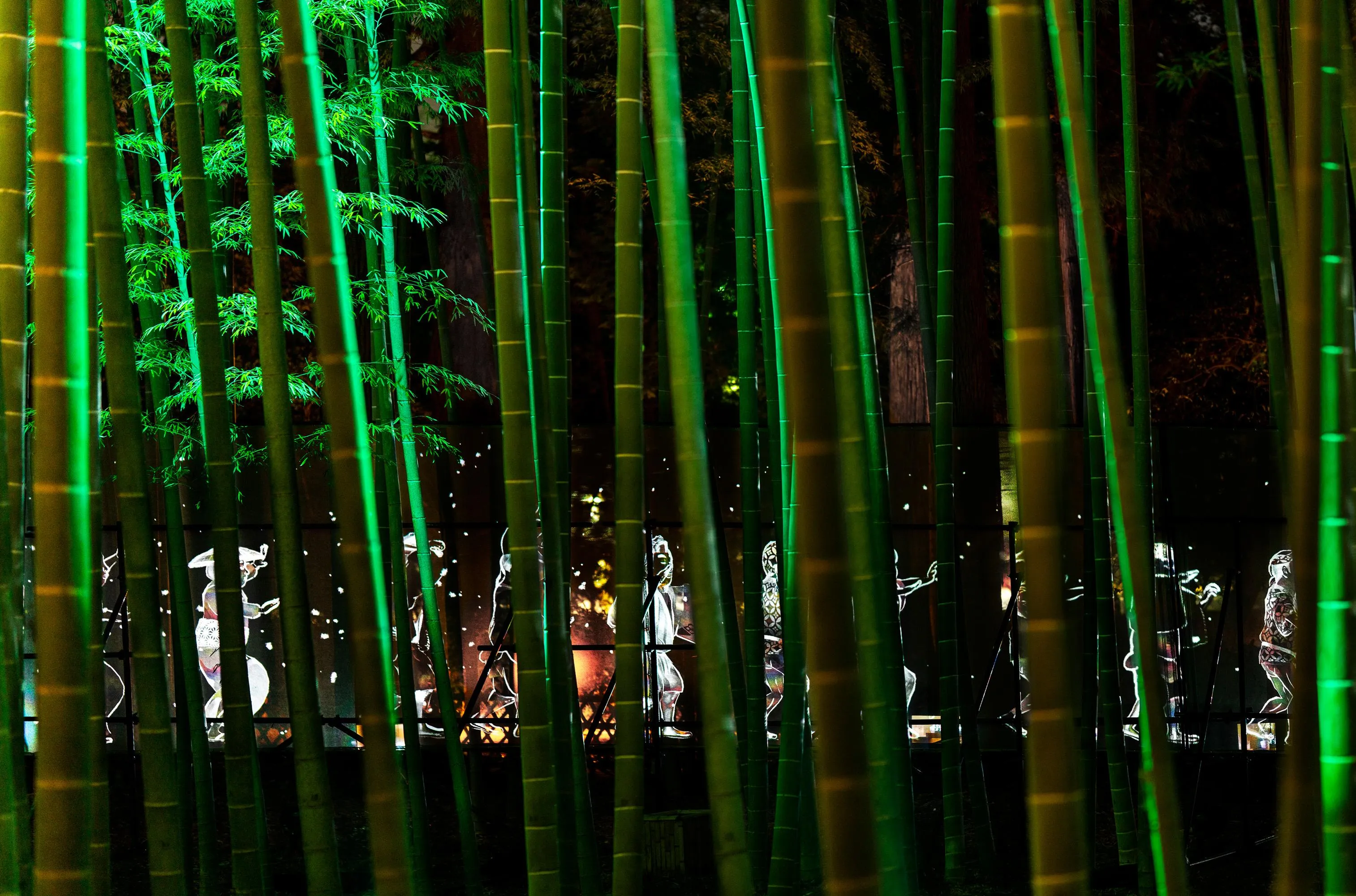 偕楽園の孟宗竹林(もうそうちくりん)沿いを、匿名で多様な肖像群が歩き続ける。