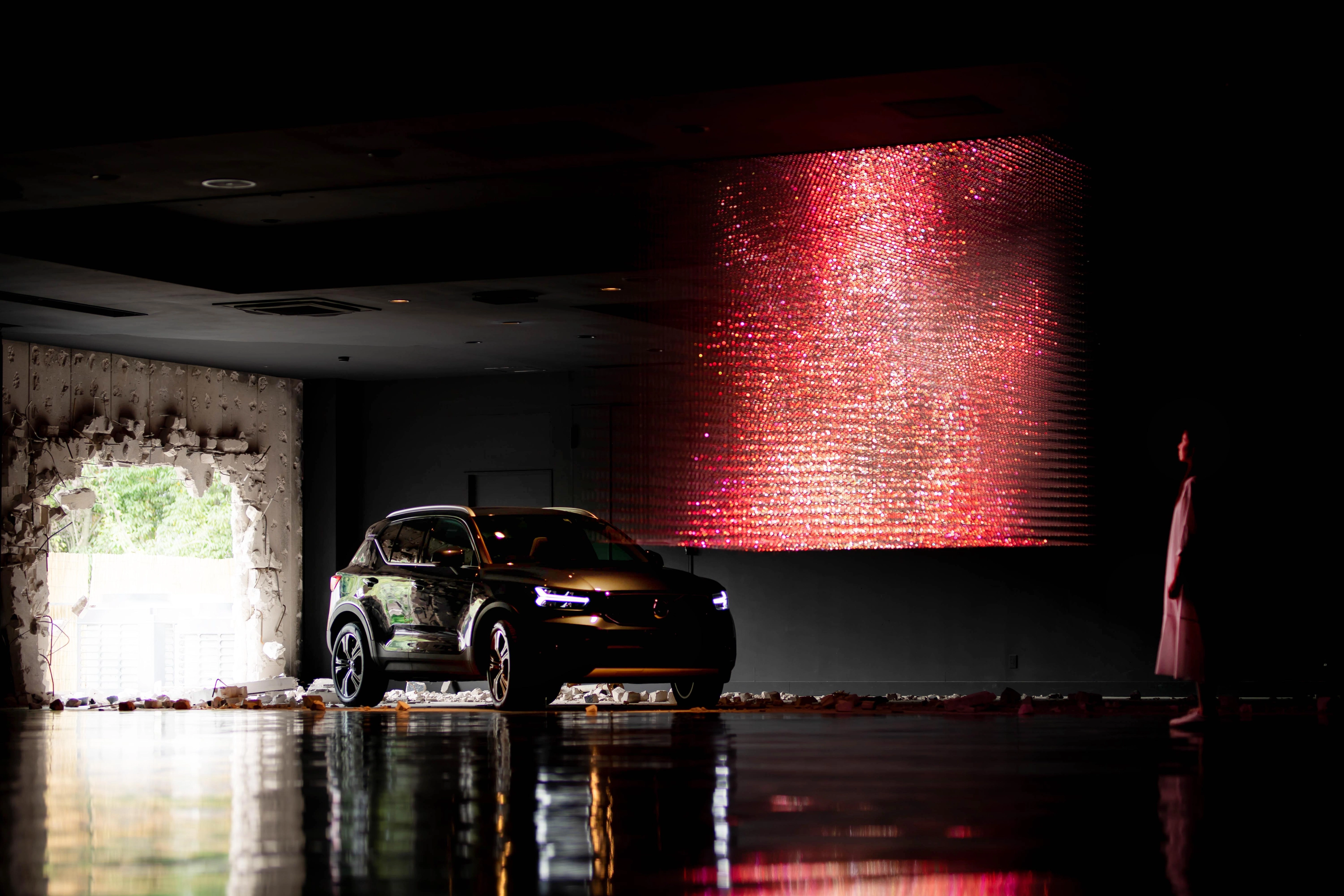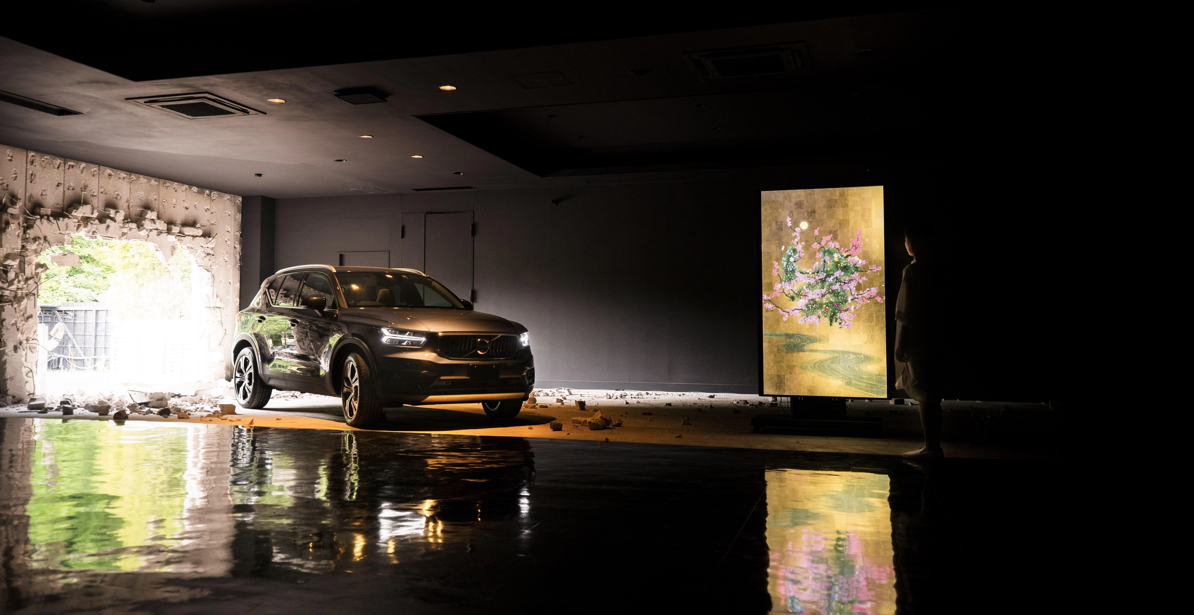 The space consists of a VOLVO XC40, a ruptured wall, and teamLab's new work Life Survives by the Power of Life II. This space was built during the years of steep economic growth, but after a short period, it was abandoned, becoming a space-time where time had stopped completely. The forest, rocks, and caves of Mifuneyama Rakuen have formed over a long time, and people in every era have sought meaning in them over the millennia. It is the ongoing, continuous relationship between nature and humans that has made the border between the forest and garden ambiguous, keeping this cultural heritage beautiful and pleasing. By breaking through the walls that have divided this continuity, VOLVO XC40 reconnects the space to the continuity of the world and time, creating a place where various space-times intersect and overlap.
