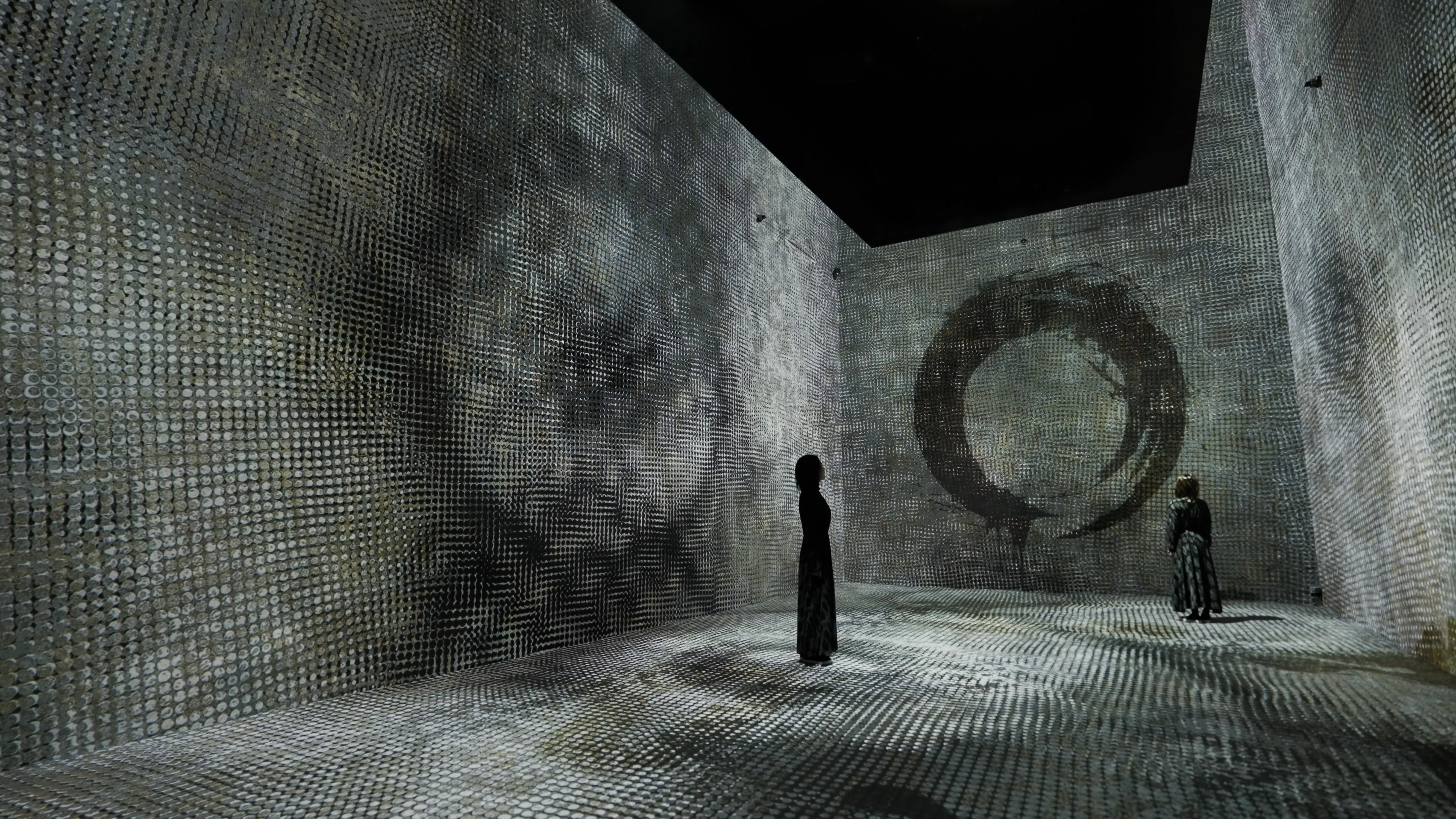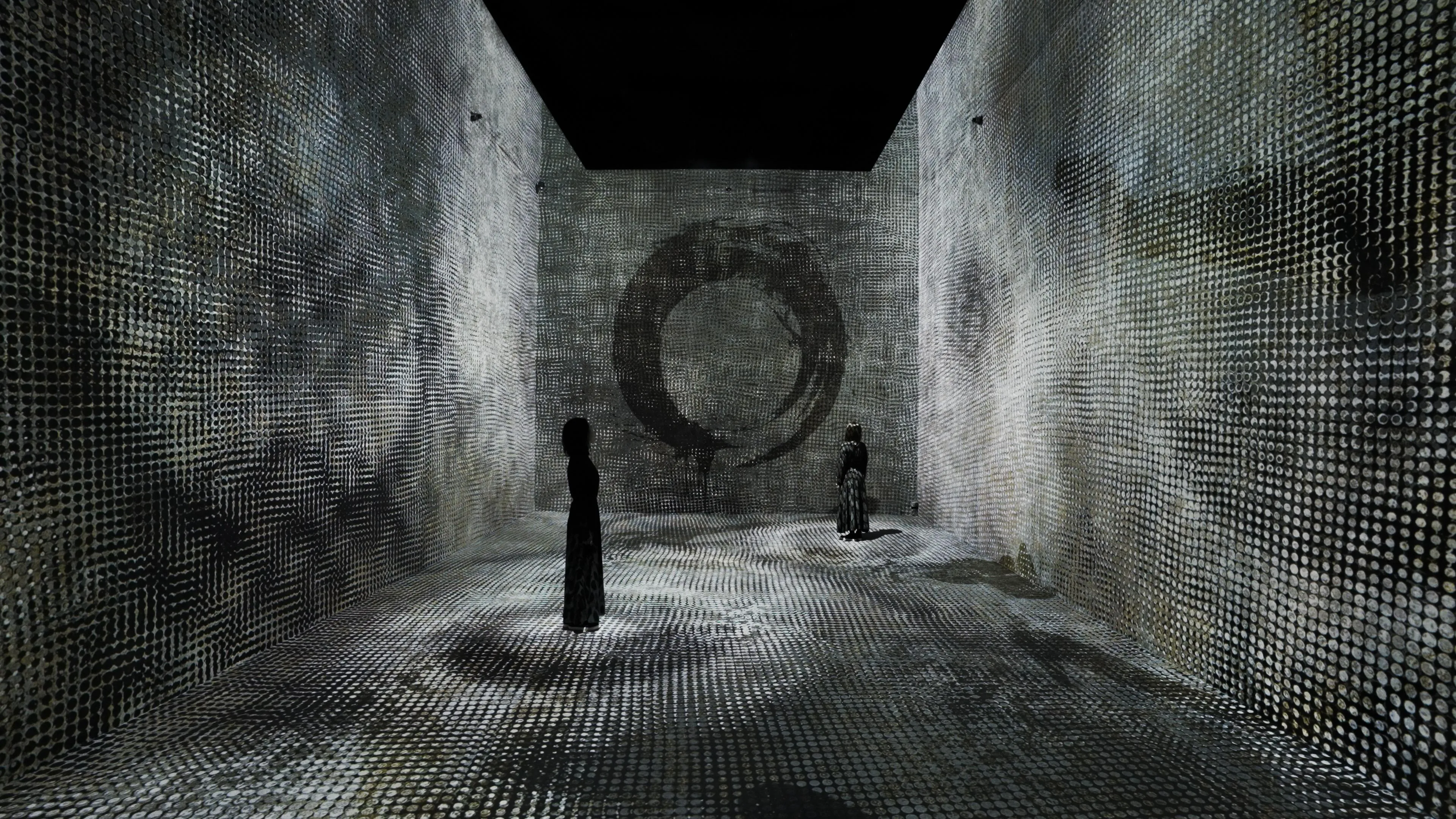 Enso is the Zen practice of drawing a circle with a single brush stroke. This artwork depicts an Enso drawn as Spatial Calligraphy. The brush stroke is suspended in space but the viewpoint changes to reveal the circle Enso. teamLab has been working on Spatial Calligraphy since the collective formed. A new interpretation of traditional calligraphy, Spatial Calligraphy reconstructs calligraphy in three-dimensional space and expresses the depth, speed and power of the brush stroke.