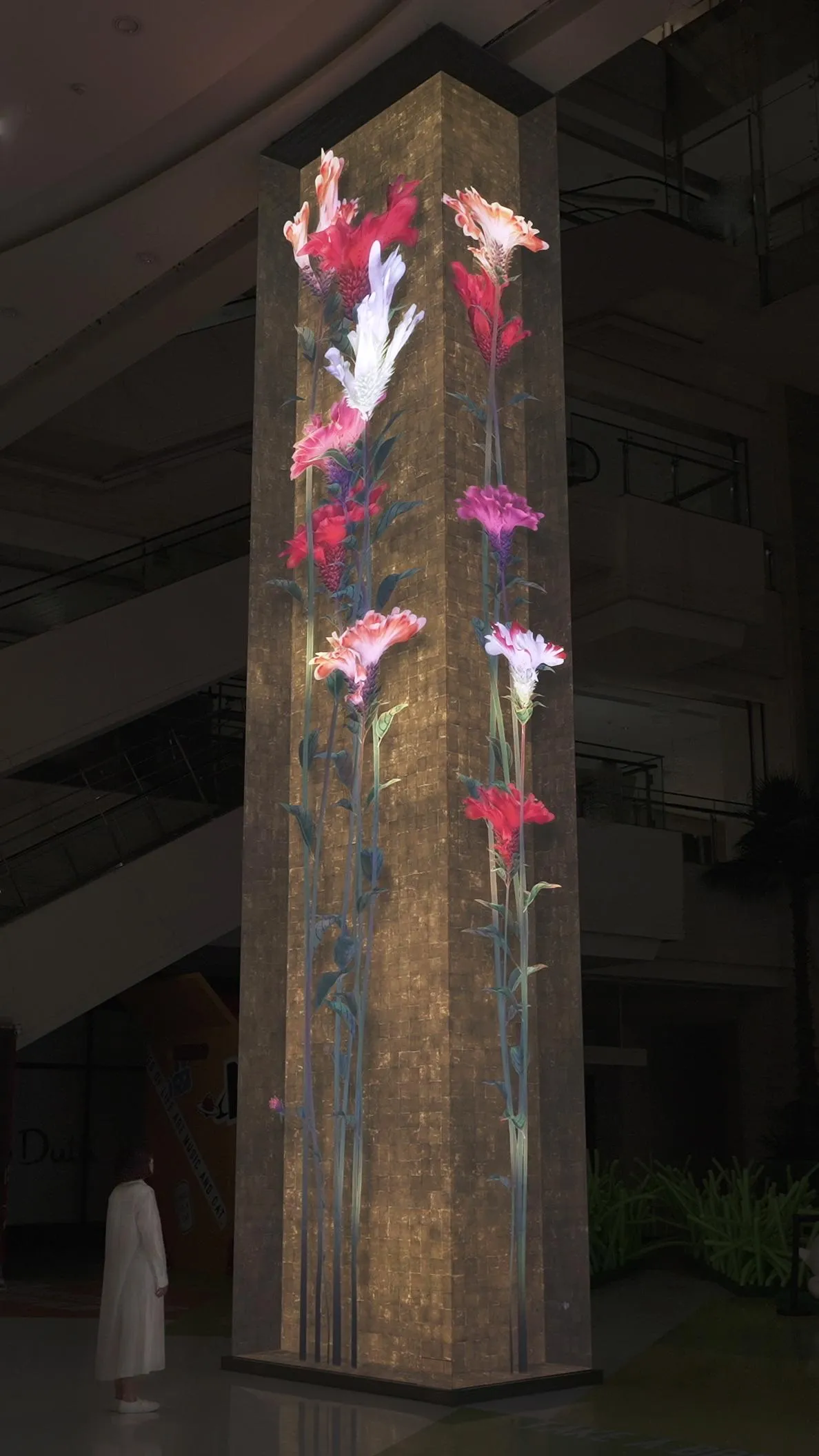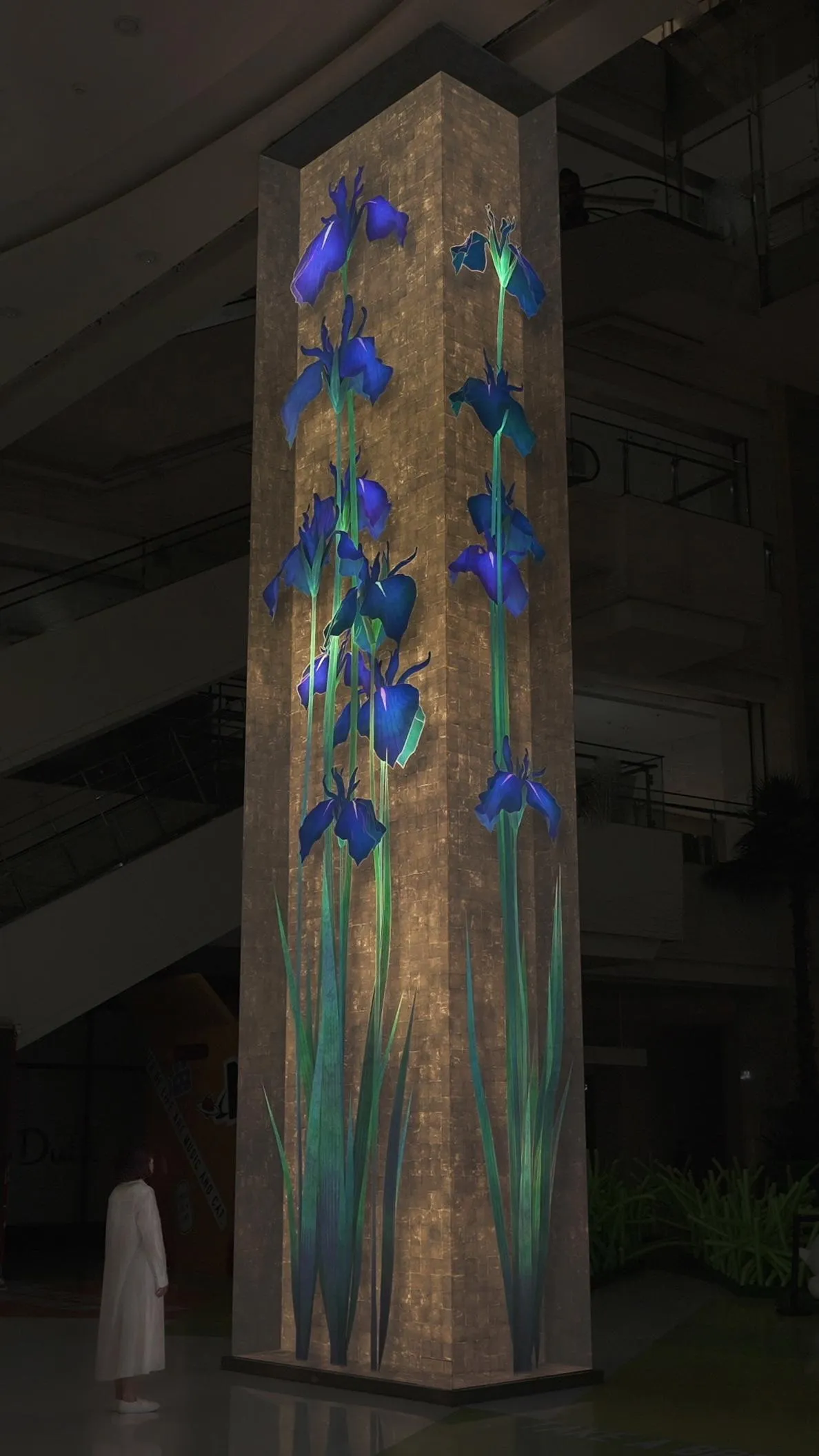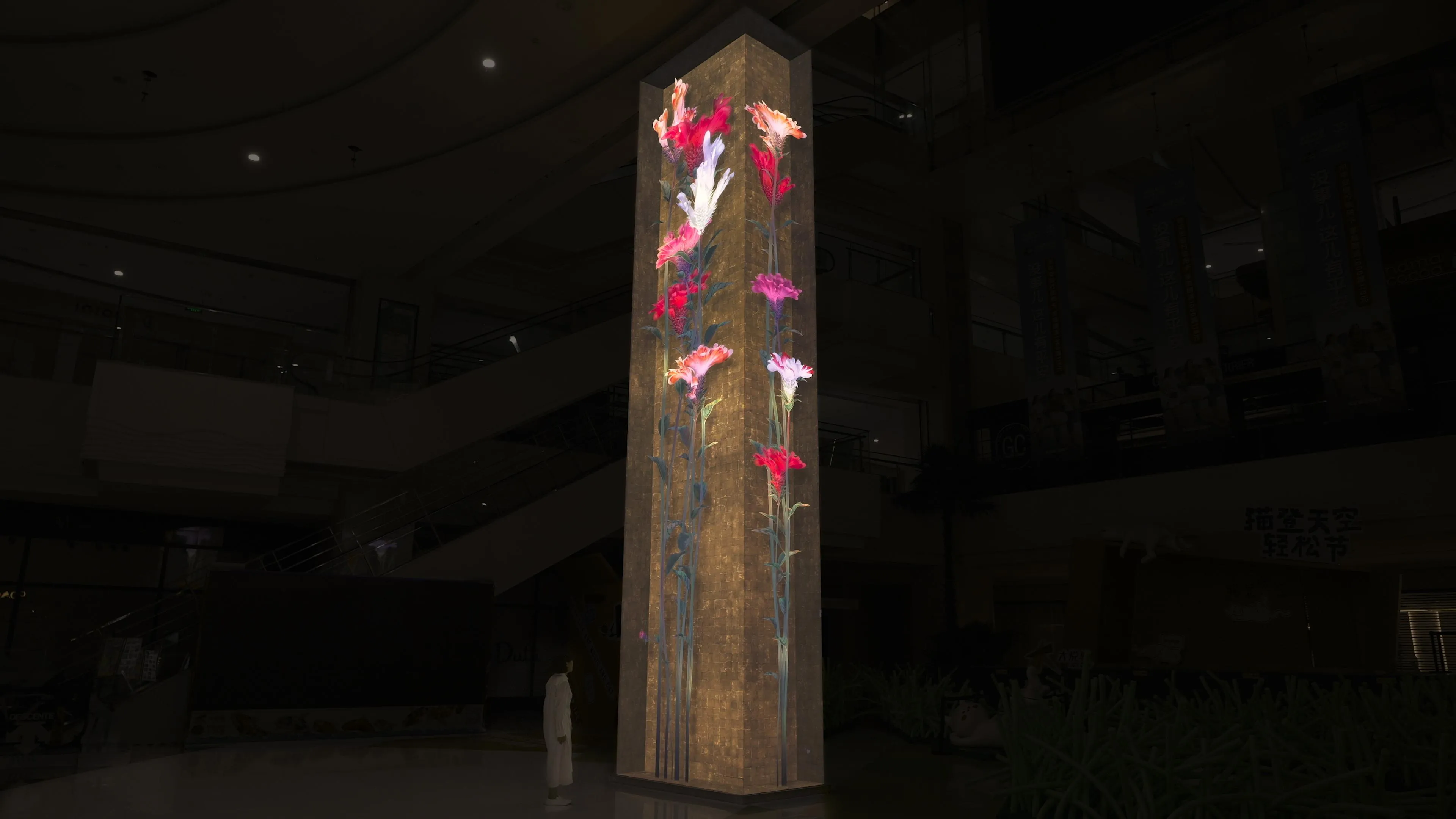 The space of the flowers is created with what teamLab refers to as Ultrasubjective Space. In contrast to spaces that are created through, or in other words framed by, lenses and perspective, Ultrasubjective Space does not fix the viewer’s viewpoint and in turn frees the body. The screens that the flowers are seen on do not become a boundary between the viewer and the artwork, and the artwork space of the flowers is continuous with the space of the viewer’s body.