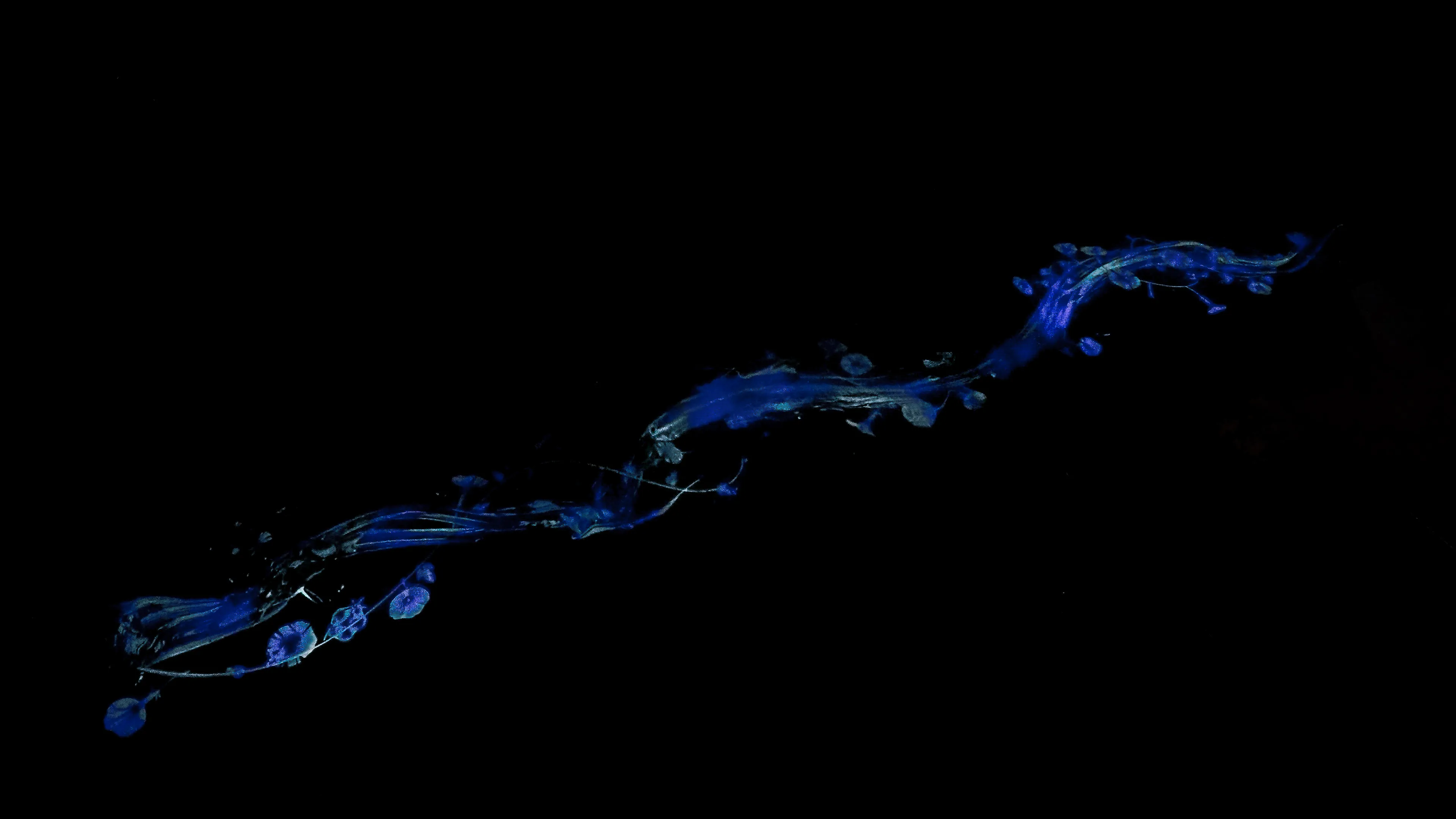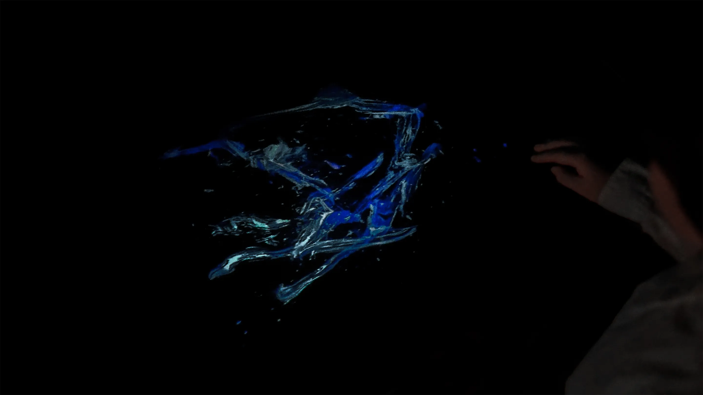 앉으면, 눈앞의 검정색 속에 궤적이 그려지기 시작한다. 궤적은 사라지지만, 계속해서 이어져 존재를 유지한다. 연속성과 존재가 주제다.