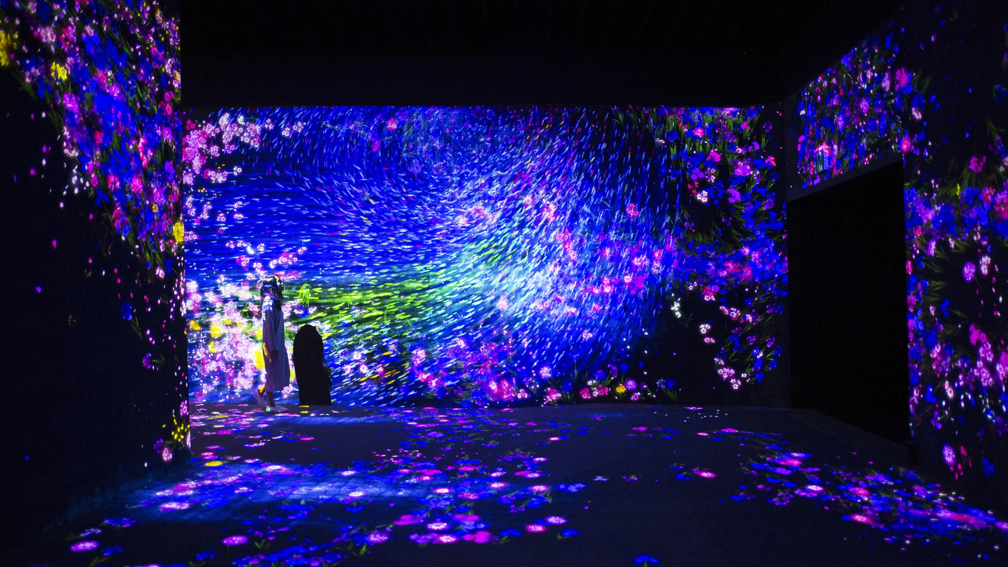 The movement of thousands of fish is beautiful and mysterious, appearing like a single giant life form. The physiological mechanism of the movement of the shoal is shrouded in mystery, but the fact that it feels like a living organism intuitively suggests that there is a high level of order in space and time. teamLab would like to search for a new spatio-temporal form that can have a strong existence and a sense of life even if the constituent elements are temporally and spatially distant from each other. teamLab believes that we can seek a new form that can be felt as the same existence as long as the same order is maintained, even though spatially the same form will never be the same again, and even though the size of the object varies greatly over time.