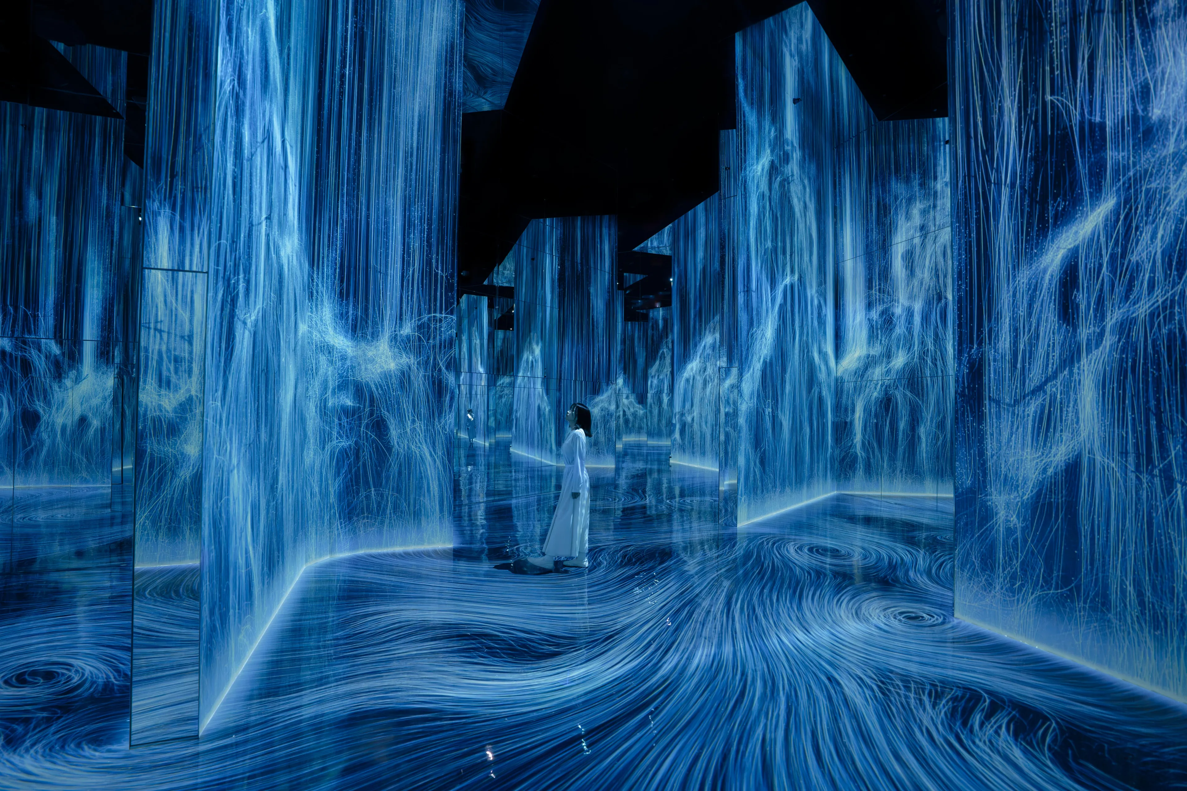 teamLab, 2025, from the series of Universe of Water Particles, 2013-, interactive installation