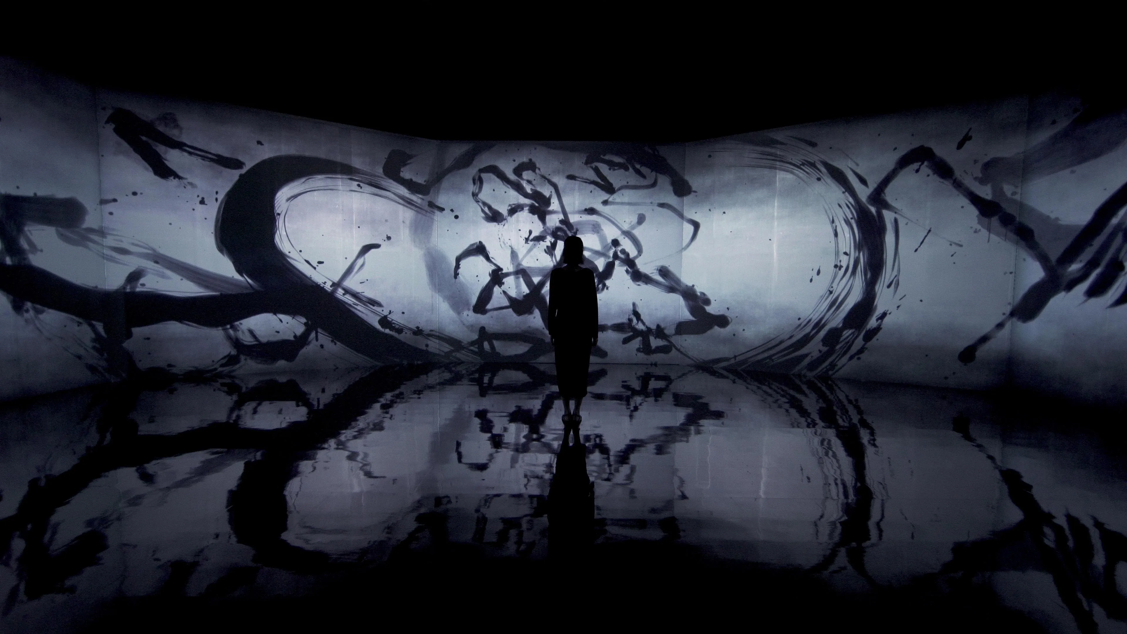 Spatial Calligraphy is calligraphy drawn in space. The artwork reconstructs calligraphy in three dimensional space to express the depth, speed and power of the brush stroke, and that calligraphy is then flattened using the logical structure of space that teamLab calls Ultrasubjective Space. The calligraphy shifts between two and three dimensions.