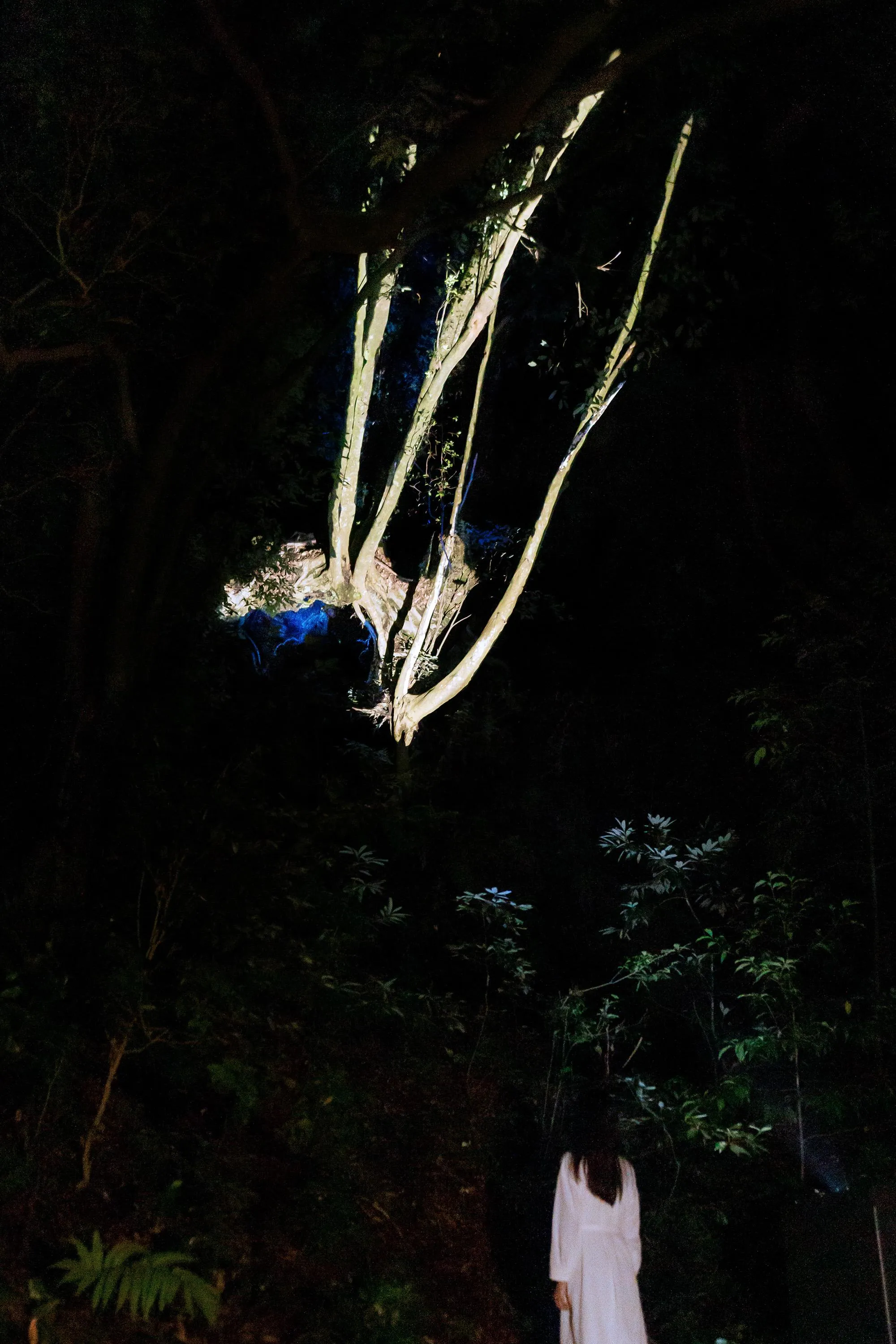 In the late Edo Period, when the garden was created (1845 C.E.), it was hypothesized that a path from the garden to the sacred tree existed inside the forest of Mifuneyama Rakuen. A road made of stones was discovered, only the entrance was maintained. The Floating Tree exists near this entrance to the path to the sacred tree.