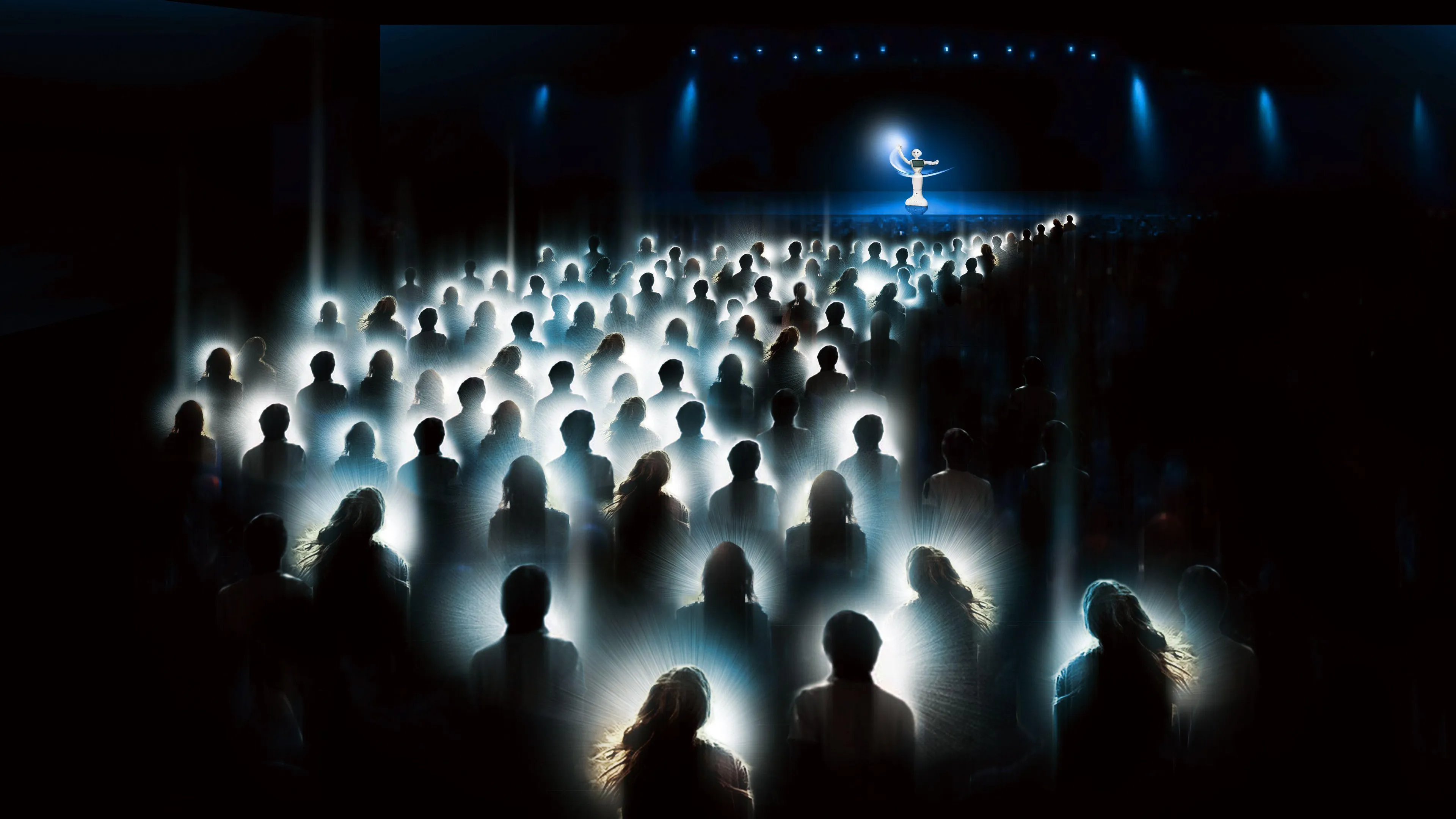 A special app exclusive to the event venue controls the flashlight illumination and sound from the smartphones; the phones blink on and off and emit sound as directed by Pepper's baton. The phones resemble dots of light—and with them, Pepper draws scintillating pictures and conducts a symphony of light and sound.
