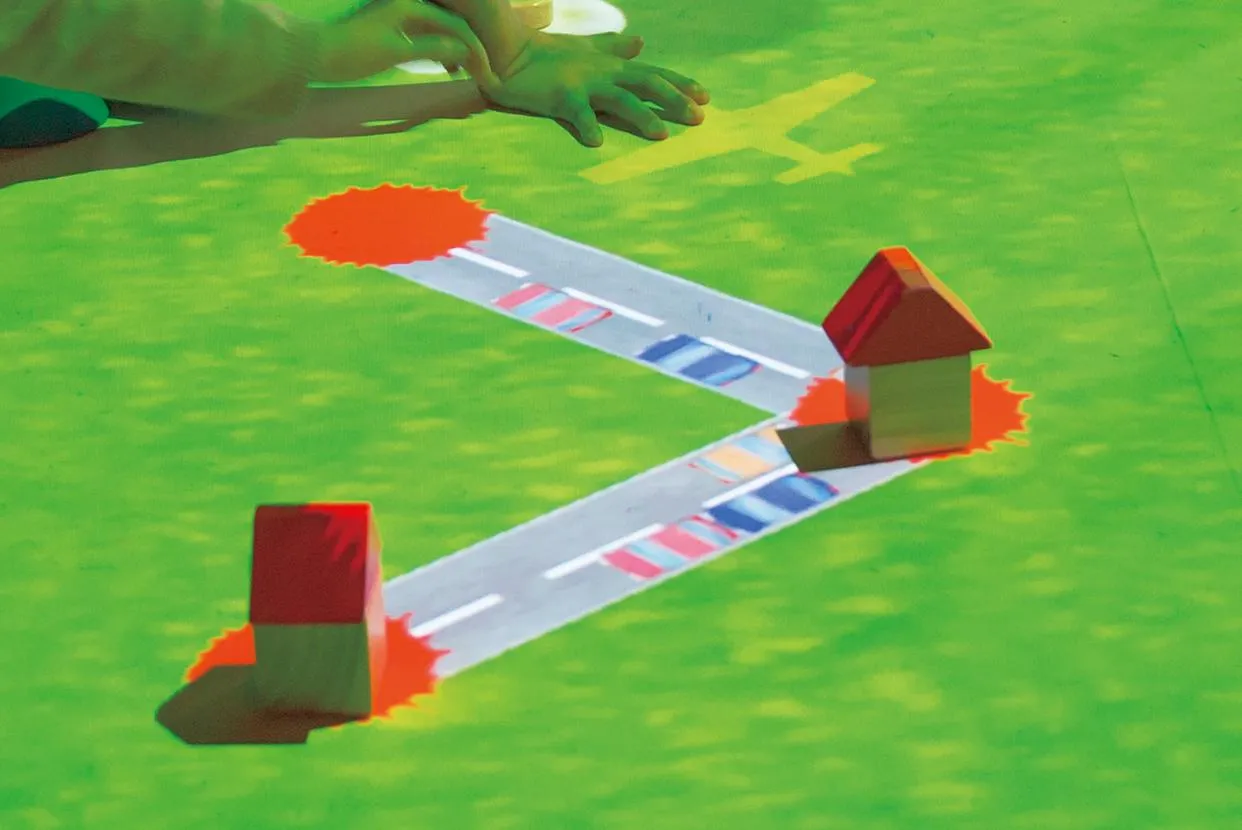 摆放积木,创造出有火车、车辆、船舶和飞机行驶的城镇。
