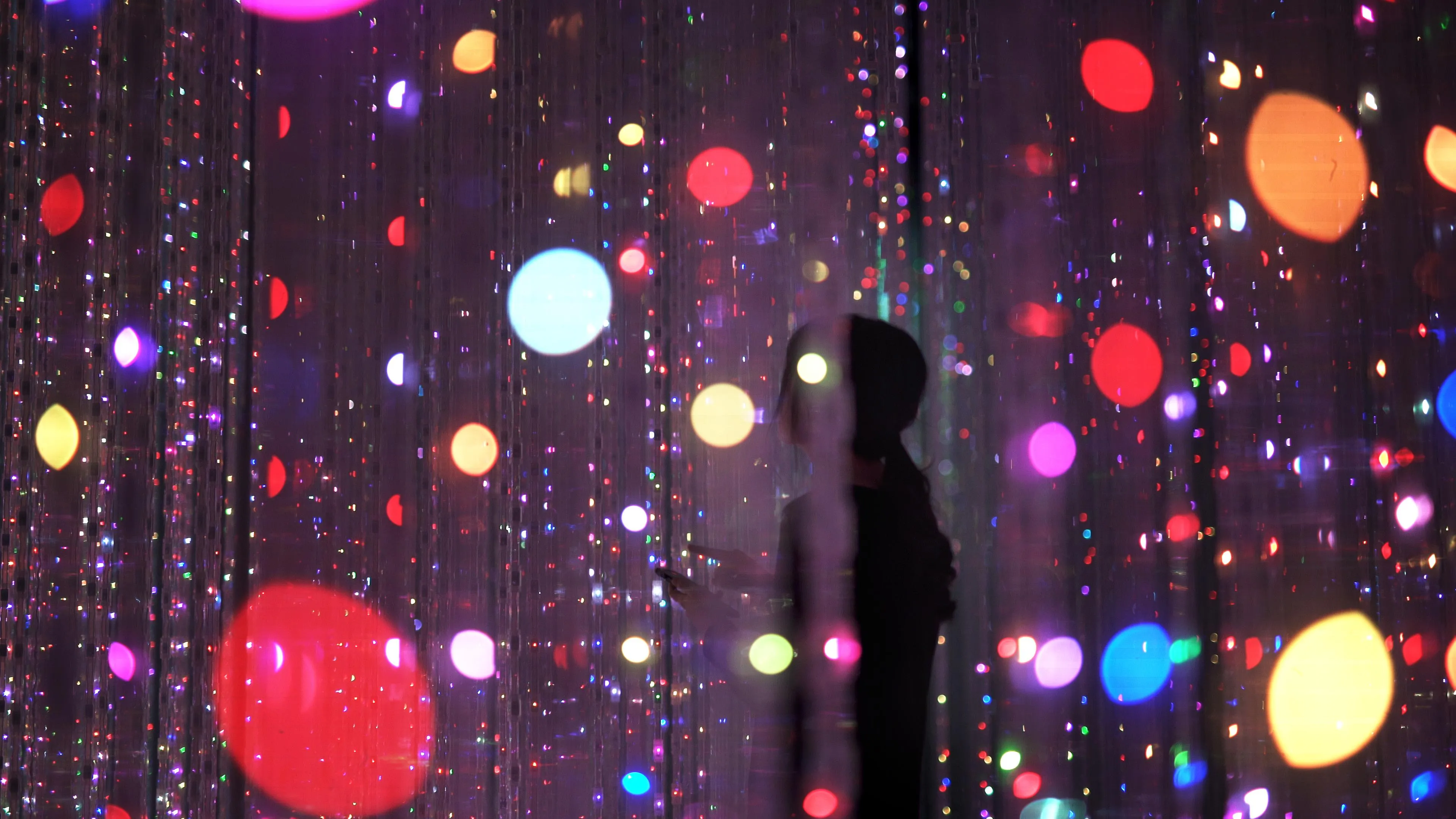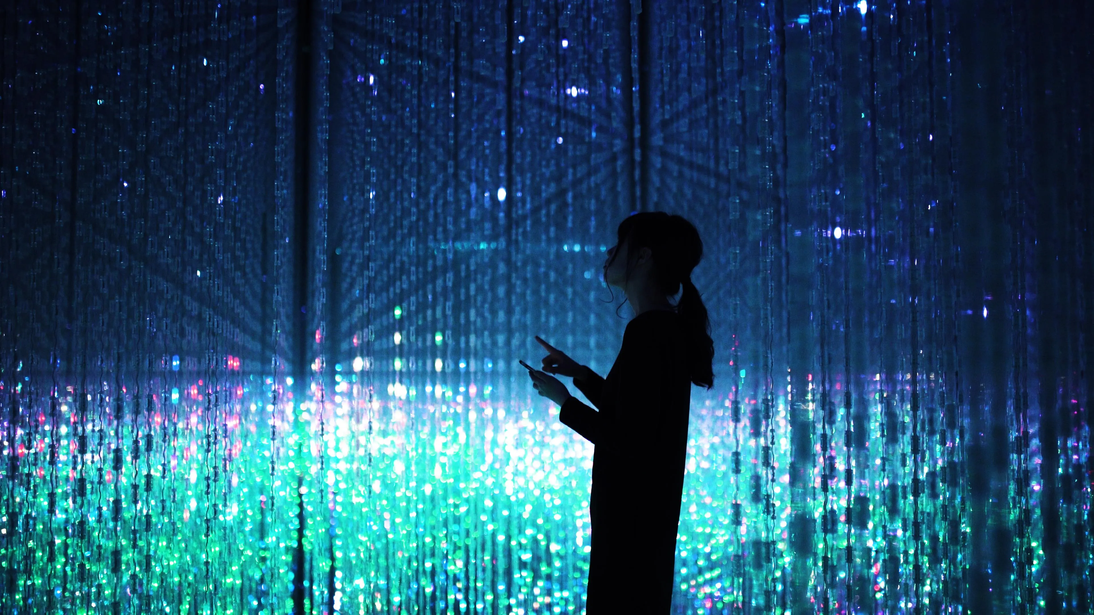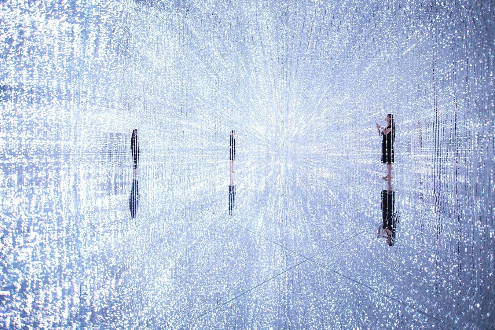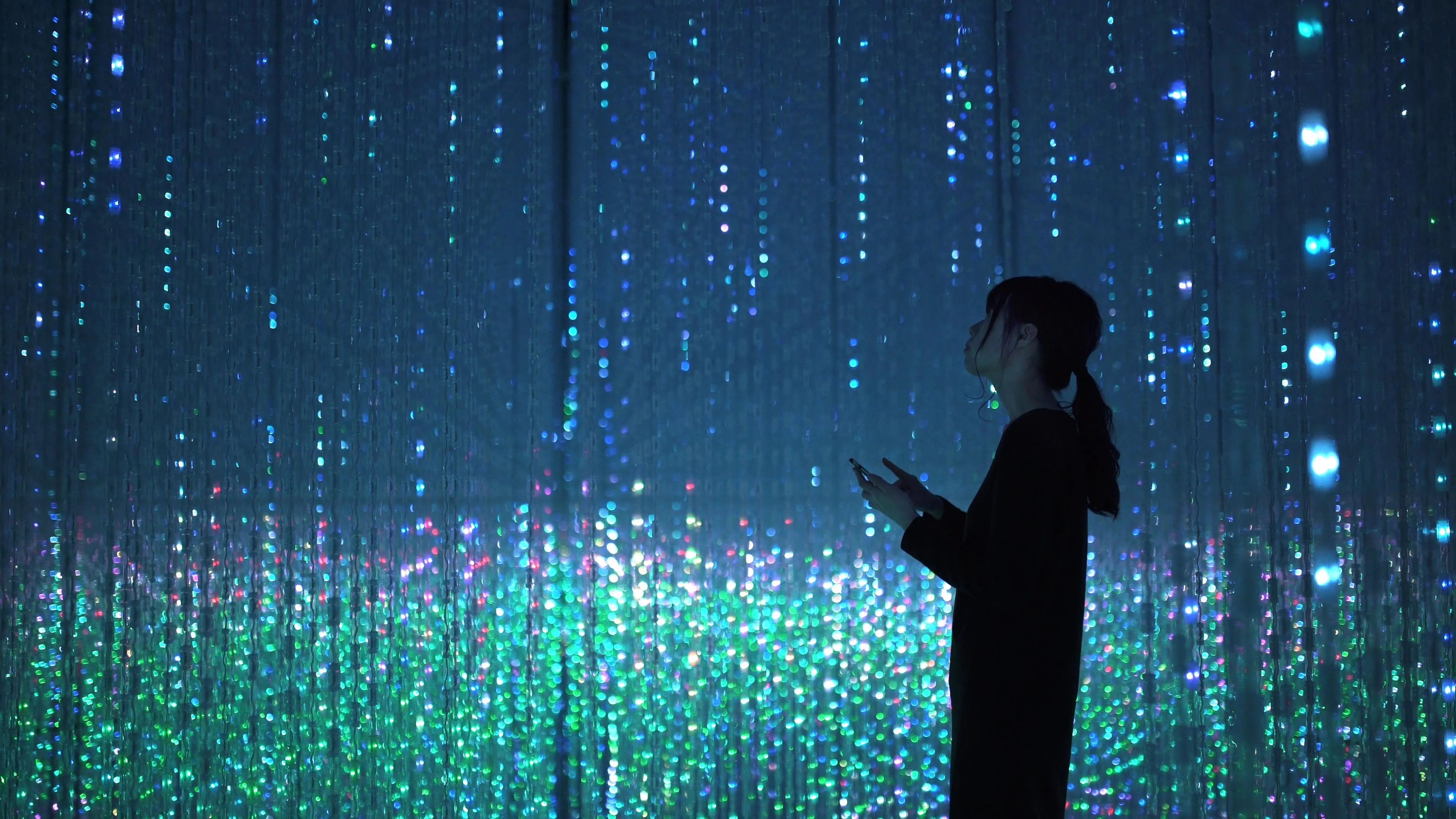 而且当teamLab Borderless其他作品进入到这个空间时,也会转化为由发光的点聚集而成的三维物体。