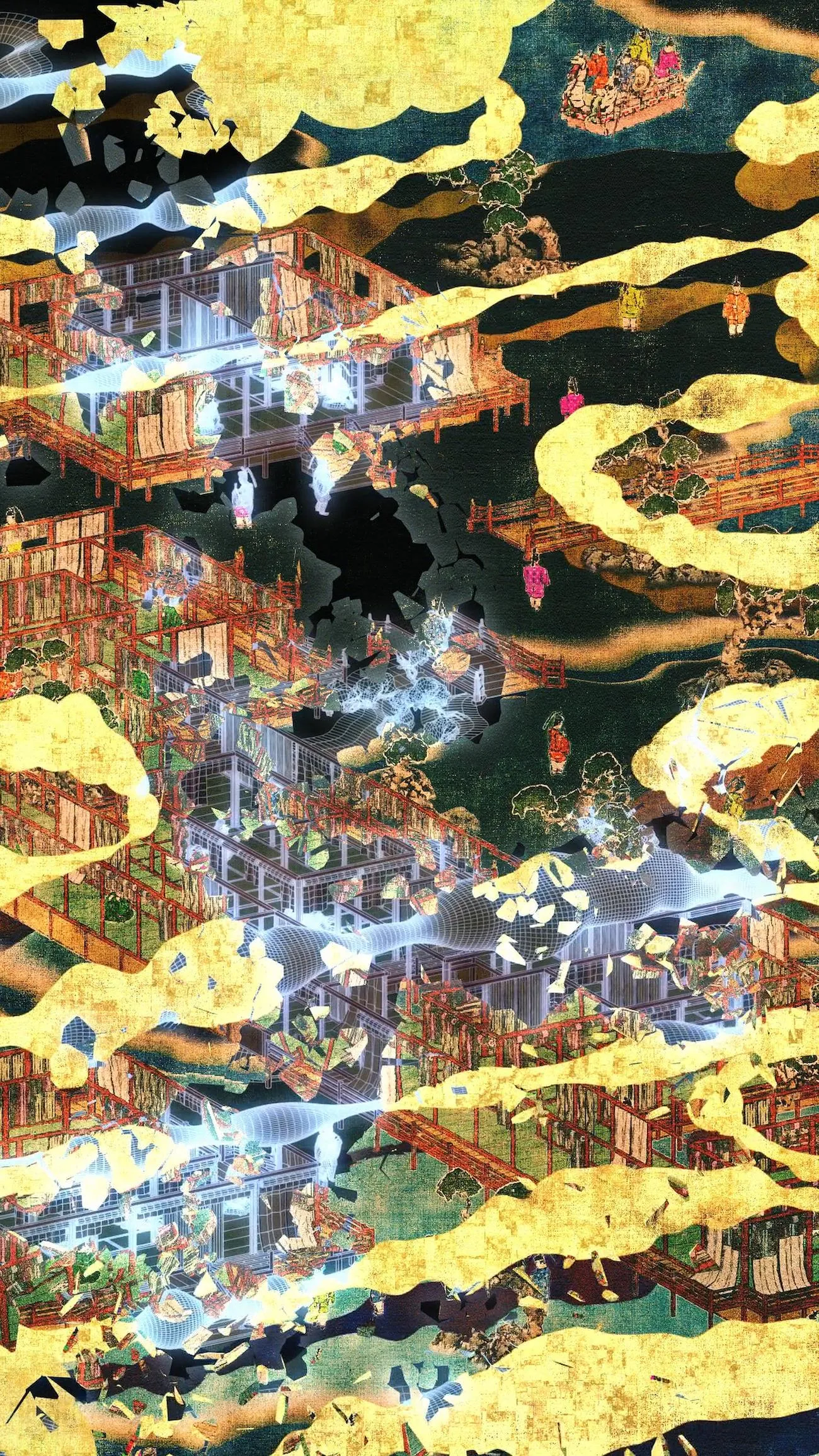 由12个画面所组成,以「自然与文明的冲突丶循环丶共生」为主题的故事性绘画。