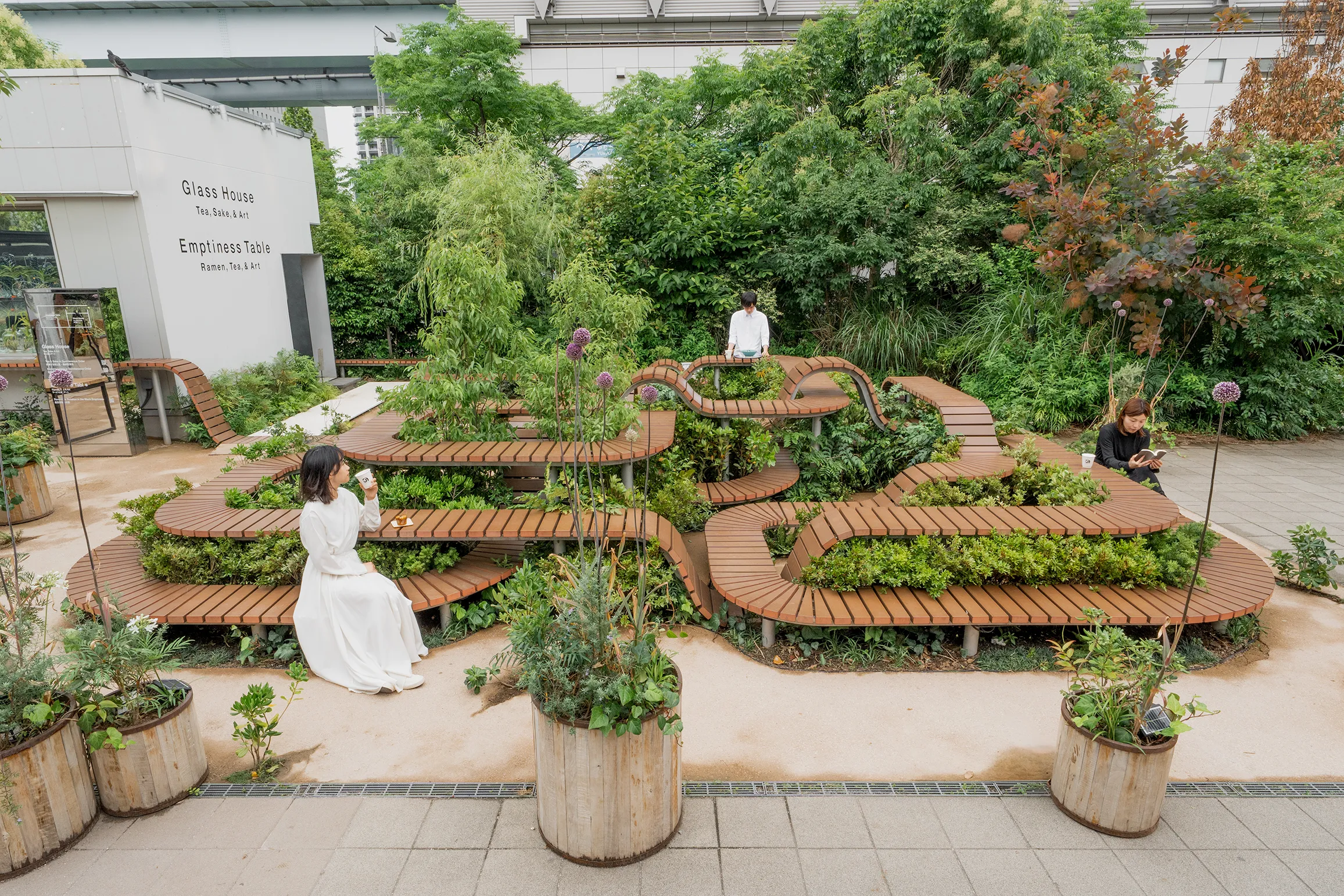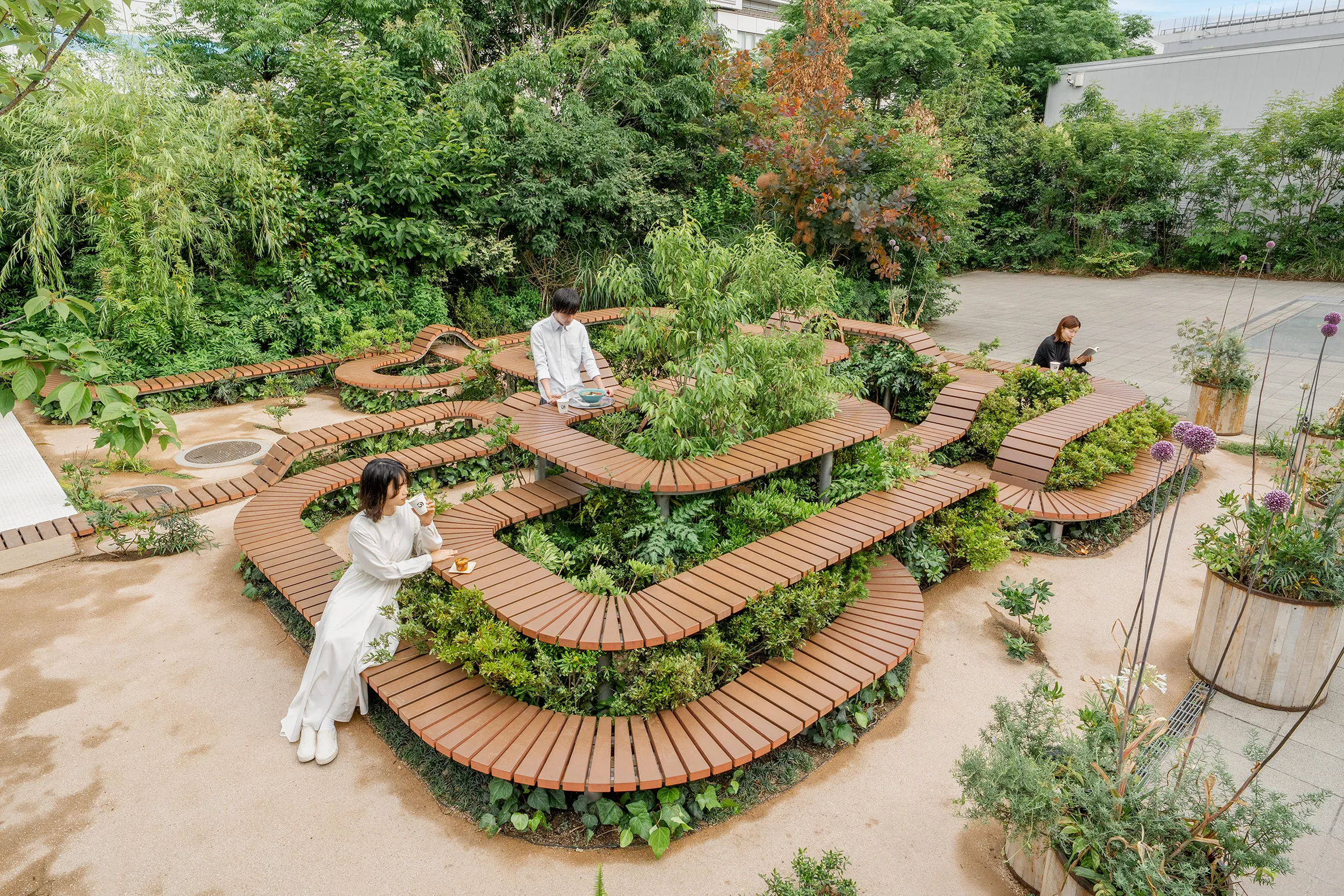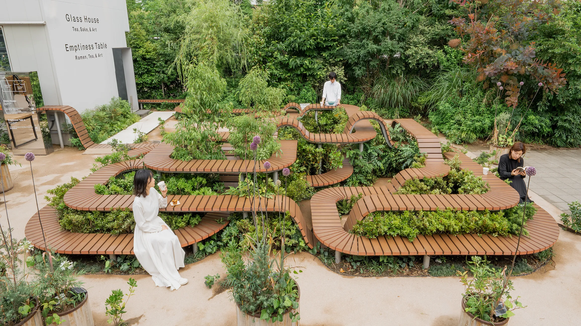 一线相连的长椅环绕着建筑成为了建筑的前台,也使建筑本身与长椅无缝相连,营造出有机且具有连续性的景观。