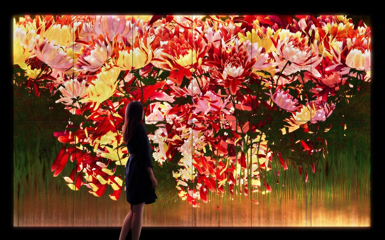 teamLab, 2023, Interactive Digital Work, 12 channels (6 channels x 2 rows), Sound: Hideaki Takahashi