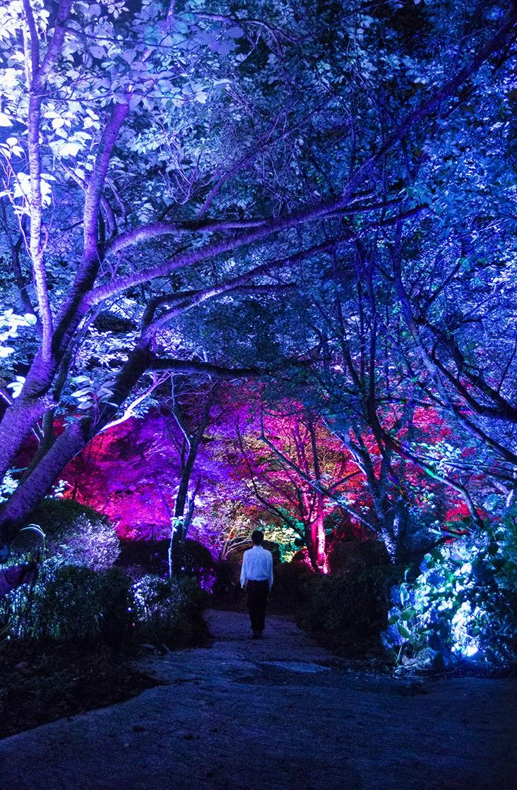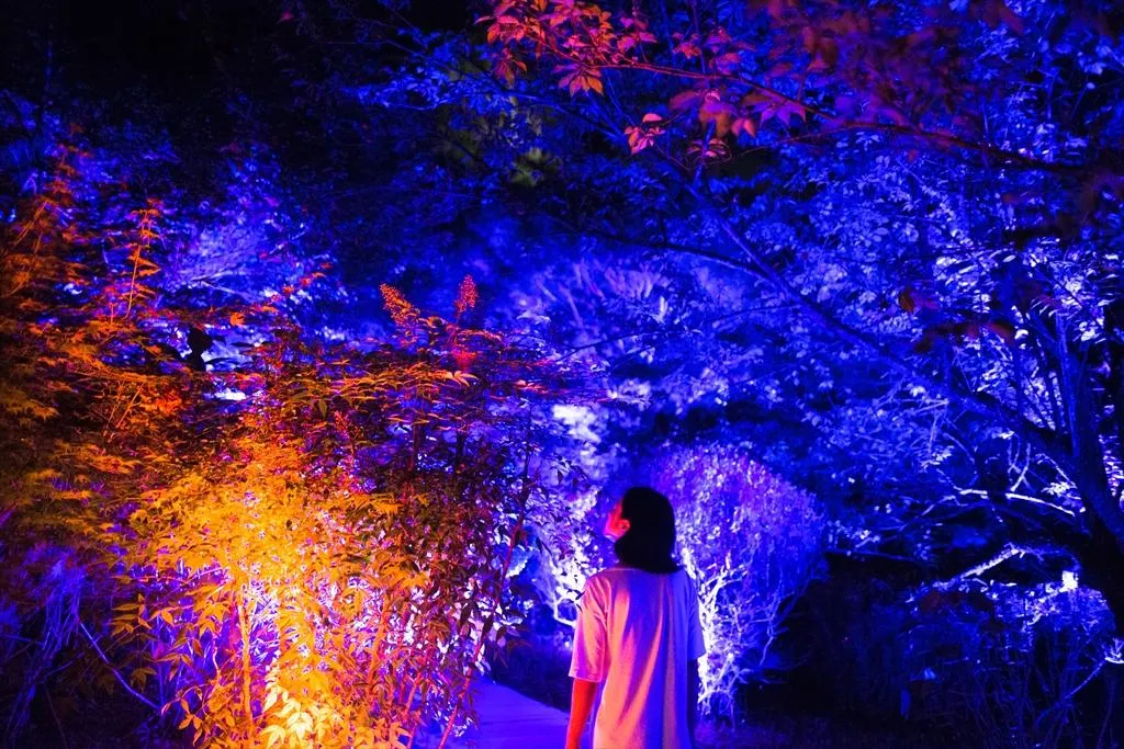 每棵树上的光会个别自我行动,像是在呼吸一样一下发出强烈光芒丶一下变得灰暗。