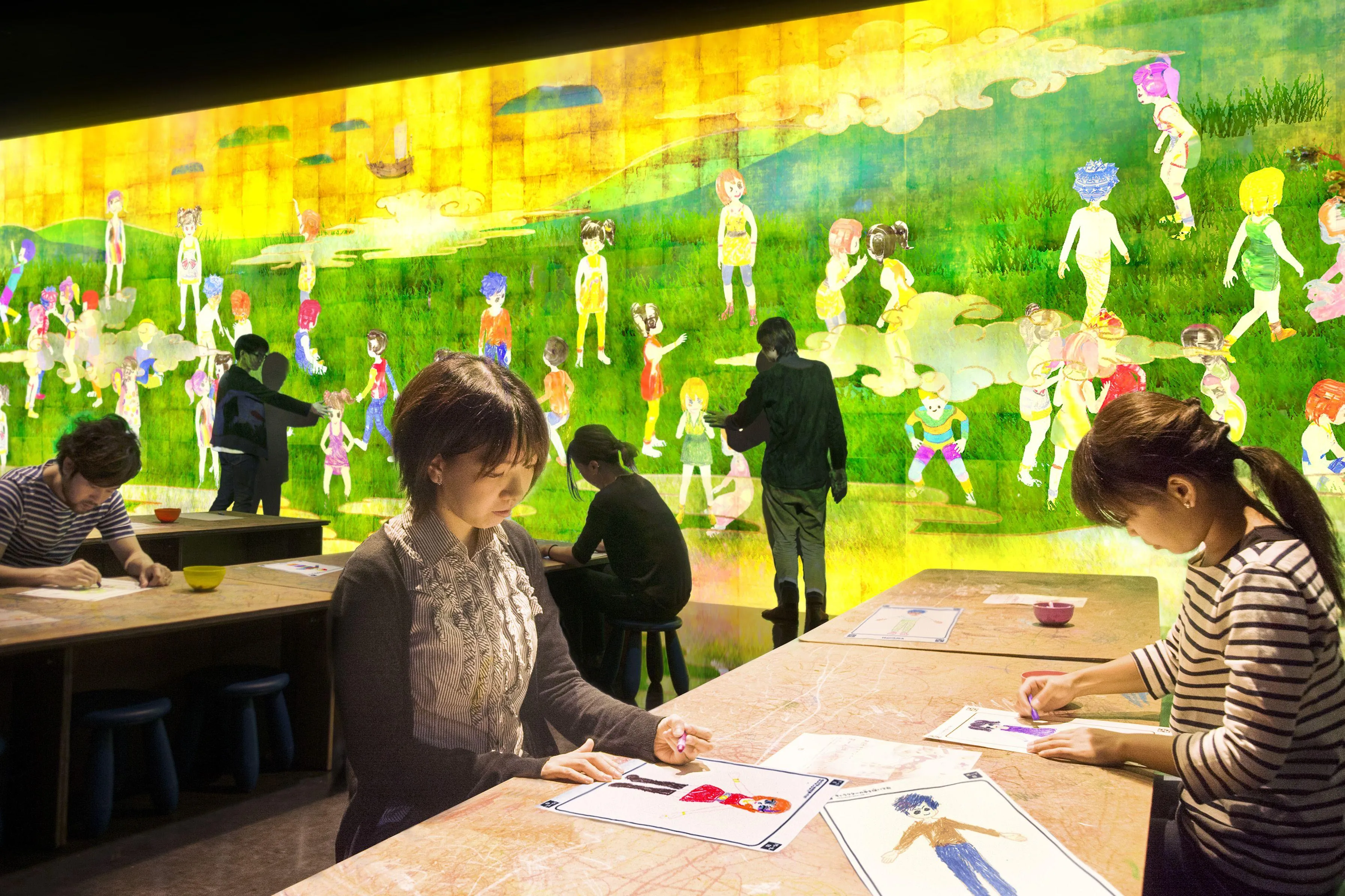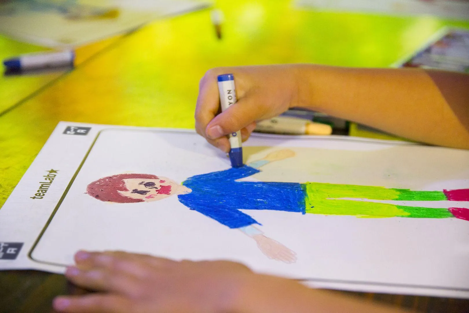 大阪芸術大学で「チームラボ お絵かきピープル」の常設展示が9月11日からスタート。同大学の11号館で、来場者が紙に描いた男の子や女の子などの、ピープルが集まる広場を表現した作品を展示している。(Excerpt from the text)